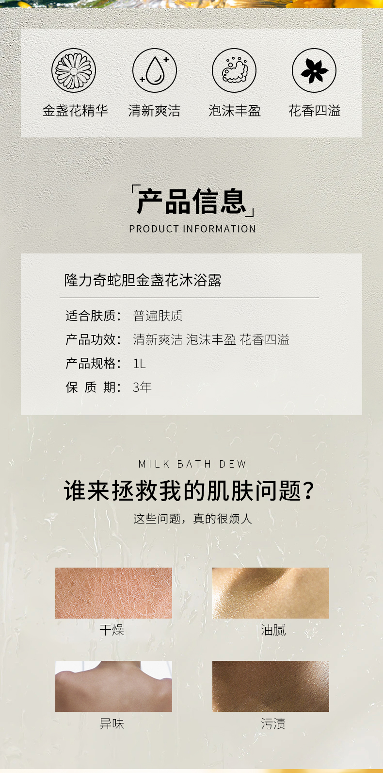 隆力奇蛇胆金盏花沐浴露1L