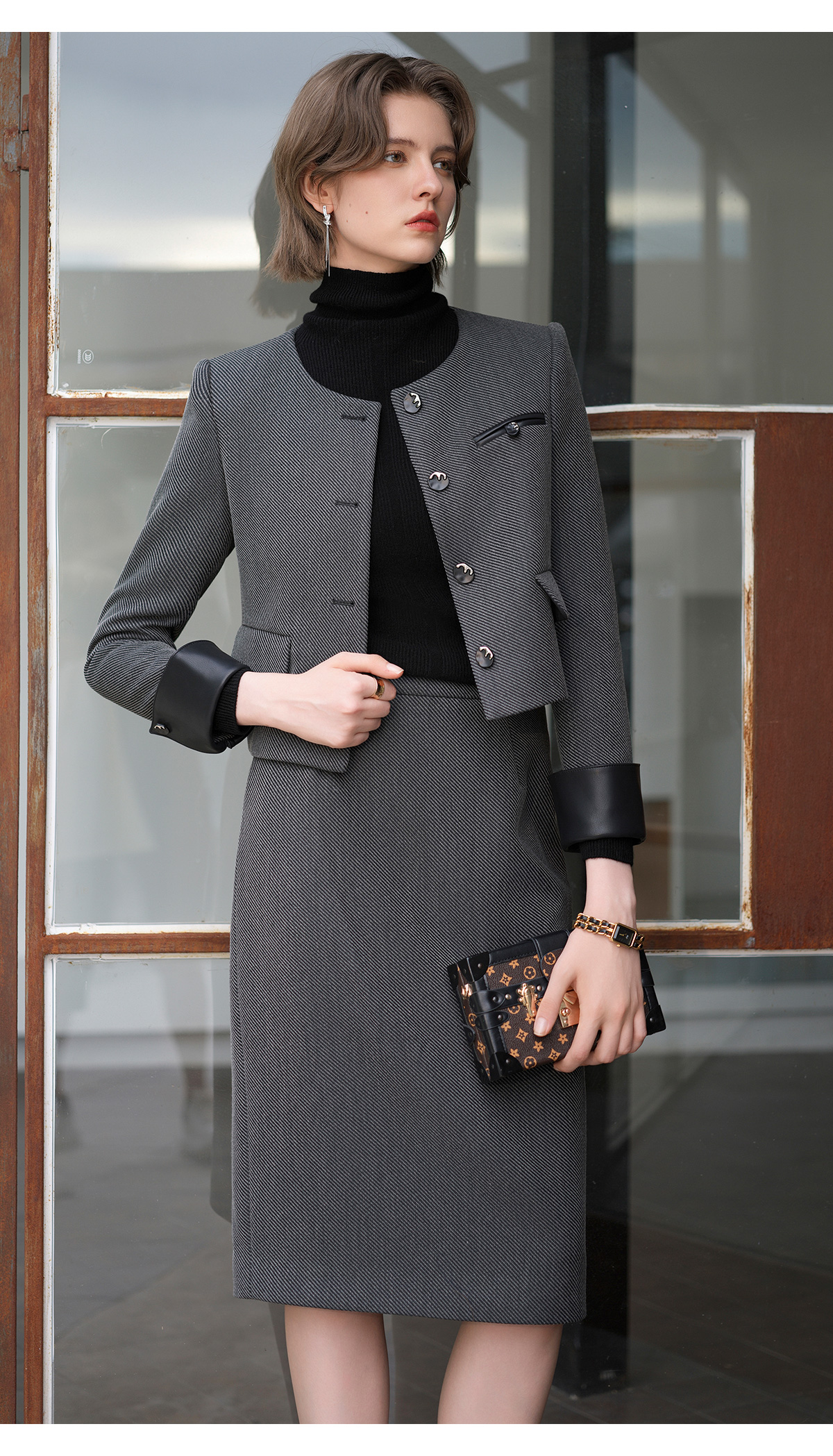 AD入秋小香风套装女知性圆领短外套2024新款斜纹羊毛呢子两件套