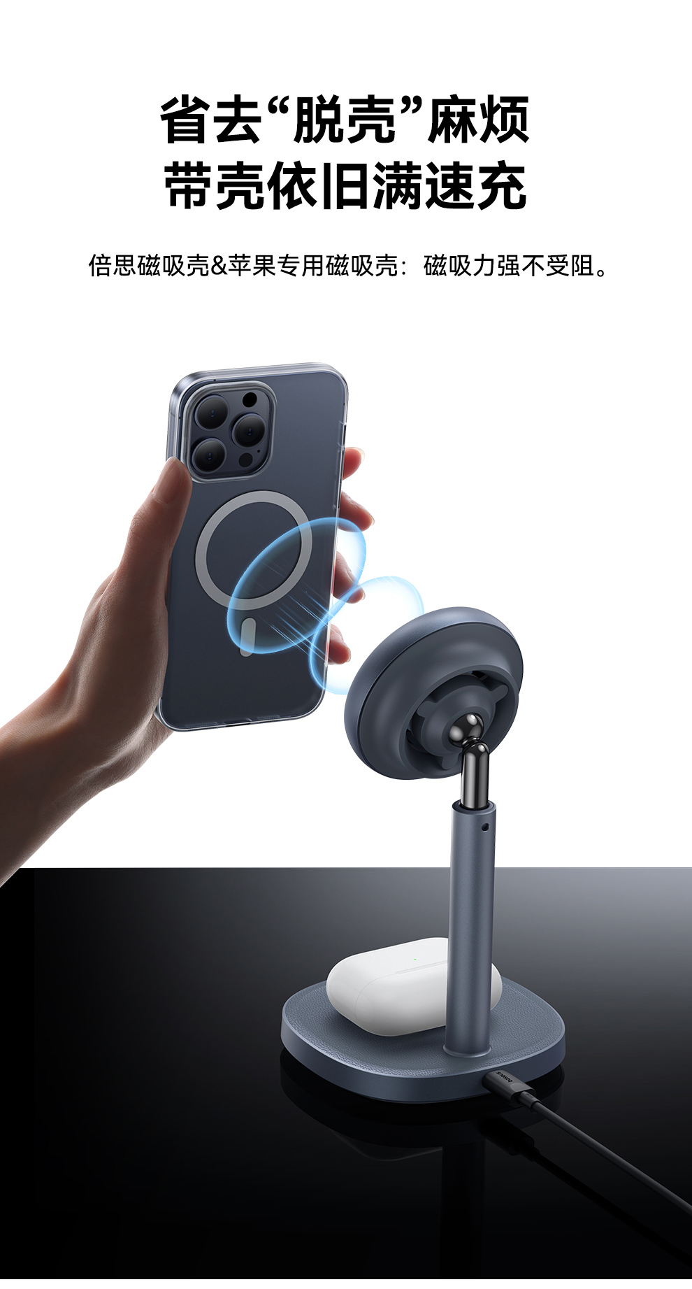 倍思 天鹅2 Pro 风冷二合一磁吸无线充电支架 Qi2 20W