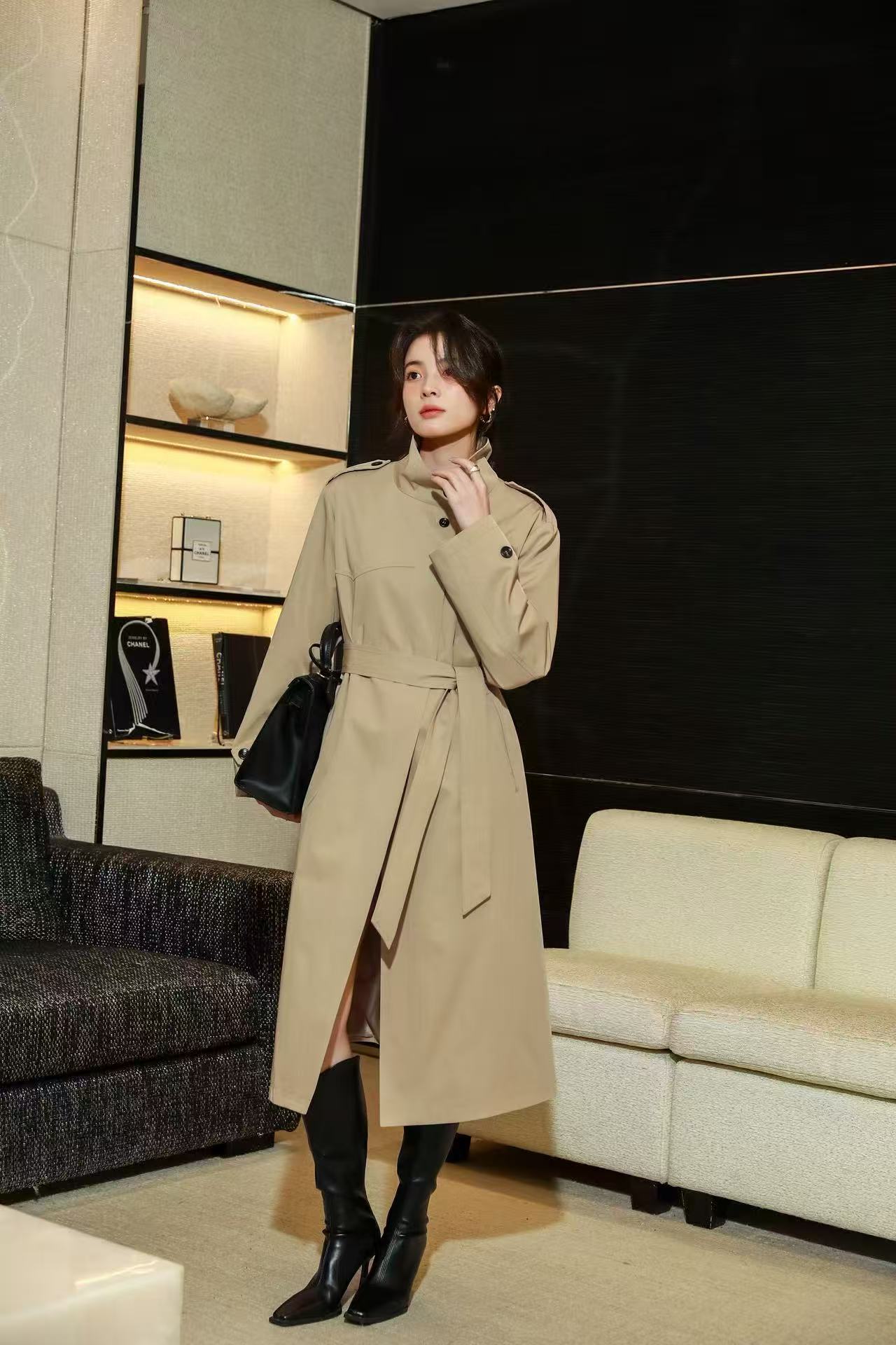 SZ3D51_卡其色_风衣_秋季_立领收腰中长款宽松显瘦通勤气质_高级女装_BERNIEELEN 伯妮斯茵