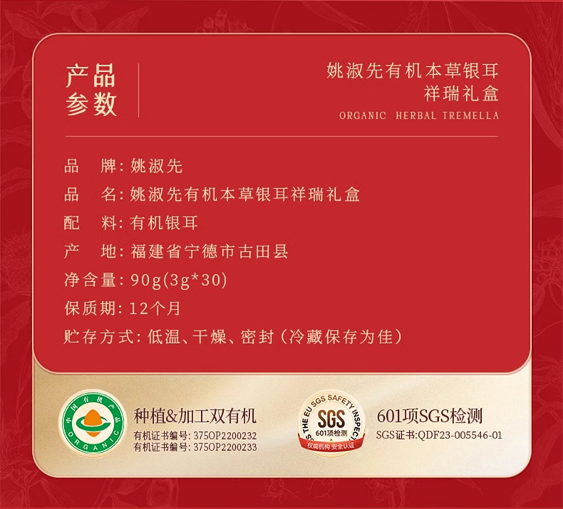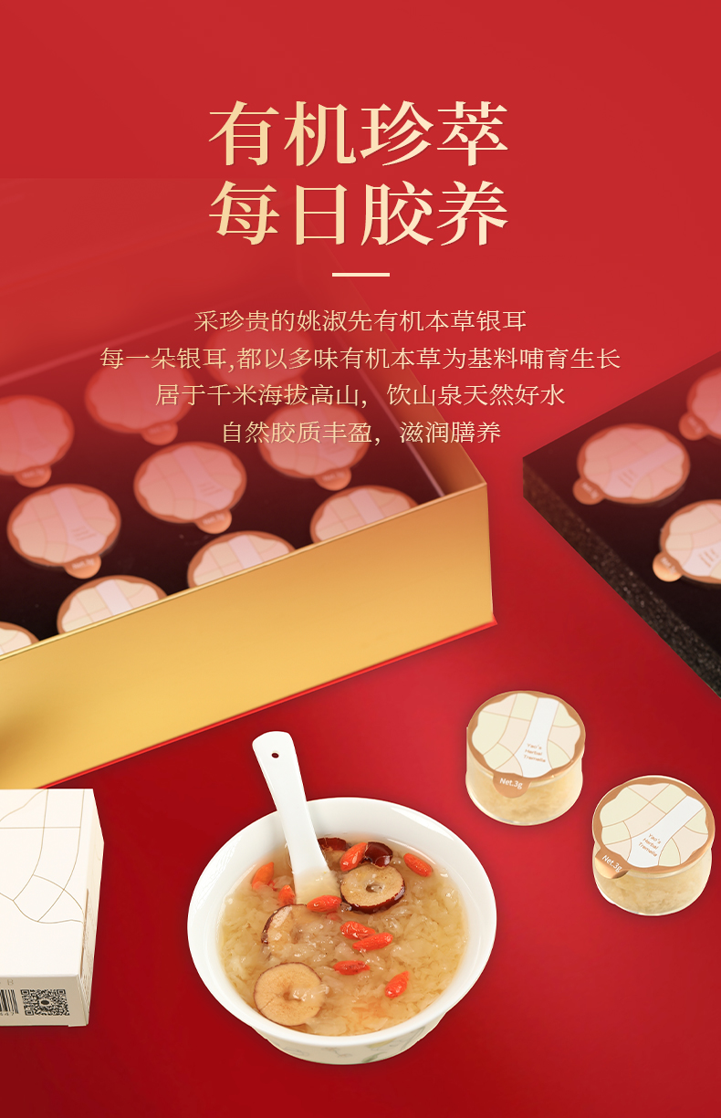 姚淑先有机本草银耳祥瑞新年礼盒3g*30罐冲泡焖即食