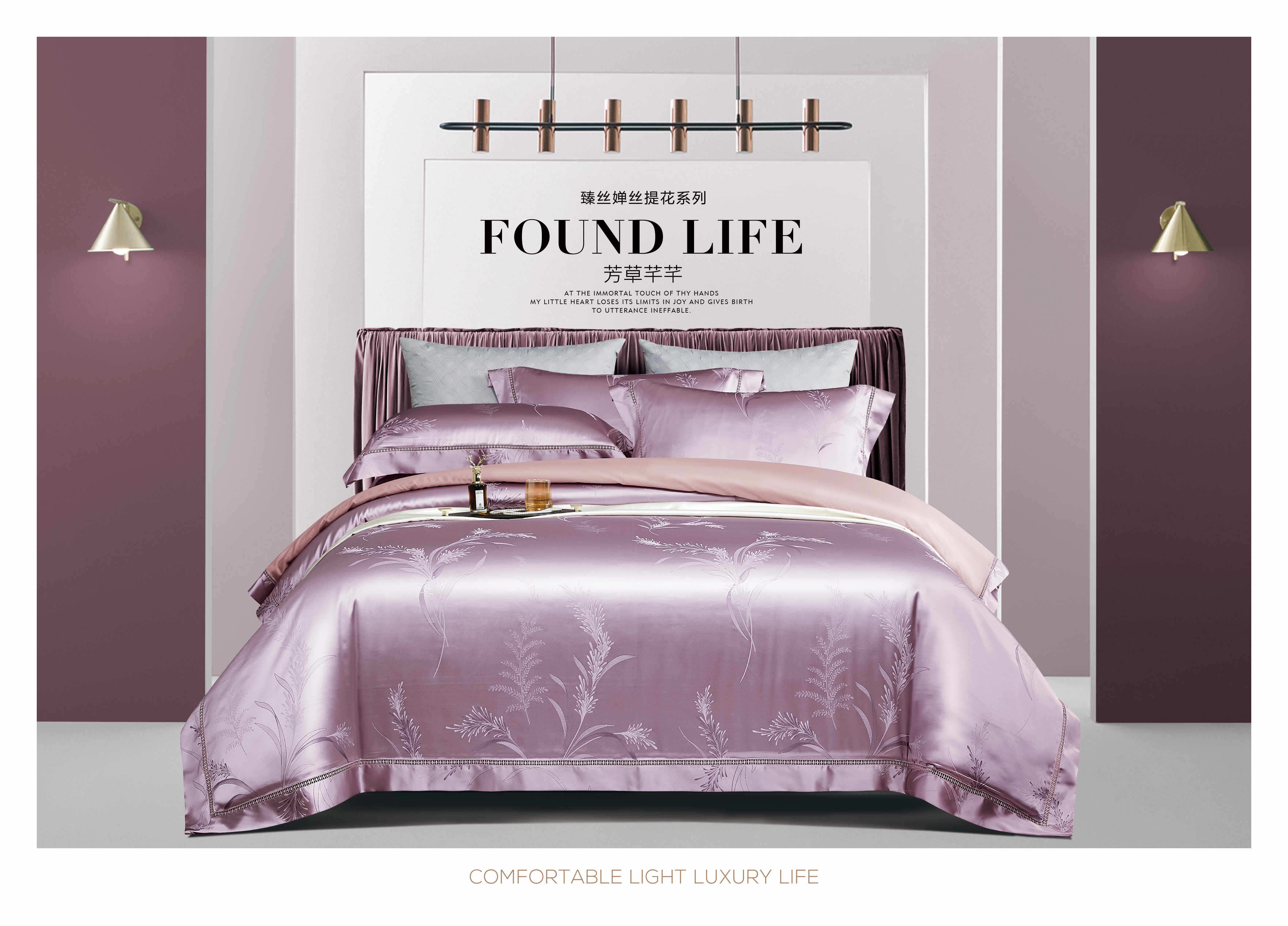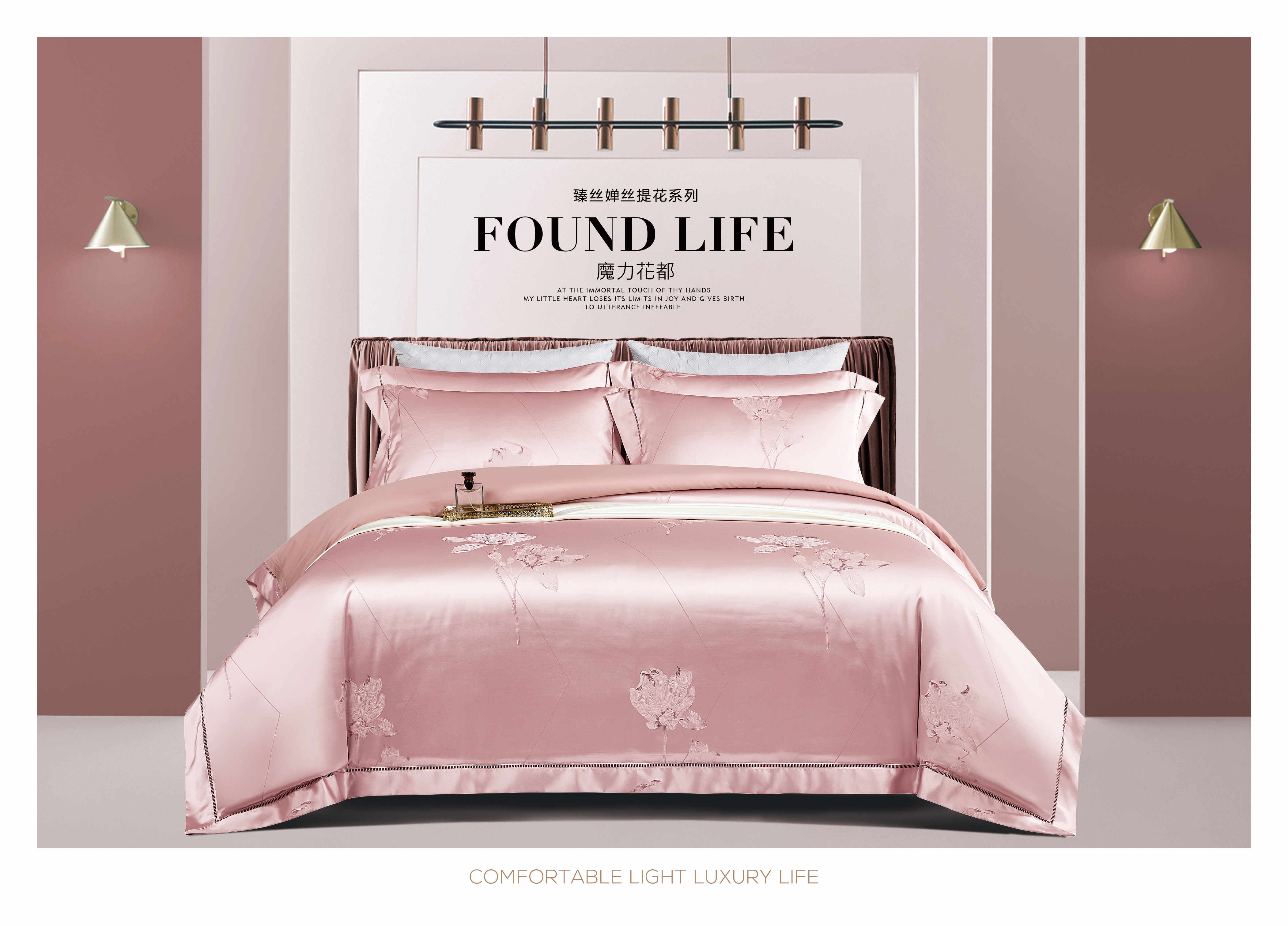 AB双版,柔滑触感,光泽靓丽,整个床品高级感十足。
