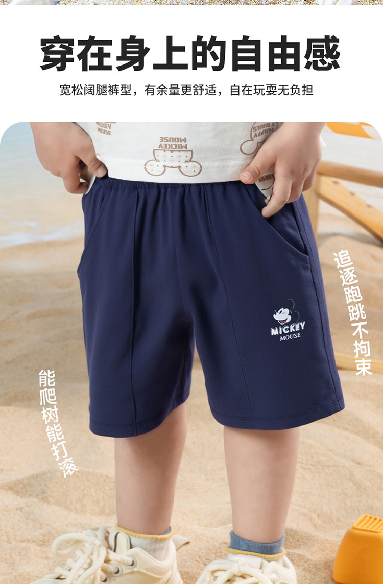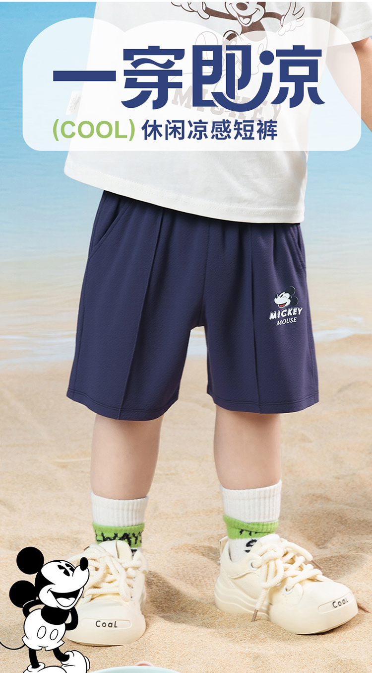 迪士尼2025夏季新款男童冰感短裤轻薄透气休闲运动短裤卡通米奇短裤ZD2EK017
