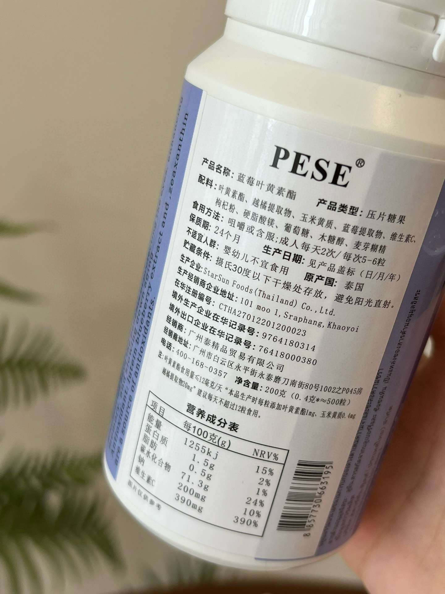 泰国原装进口 PESE蓝莓叶黄素酯片/益生菌咀嚼片/维生素C片
