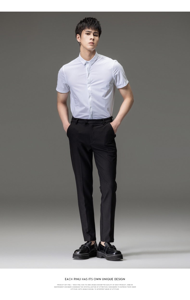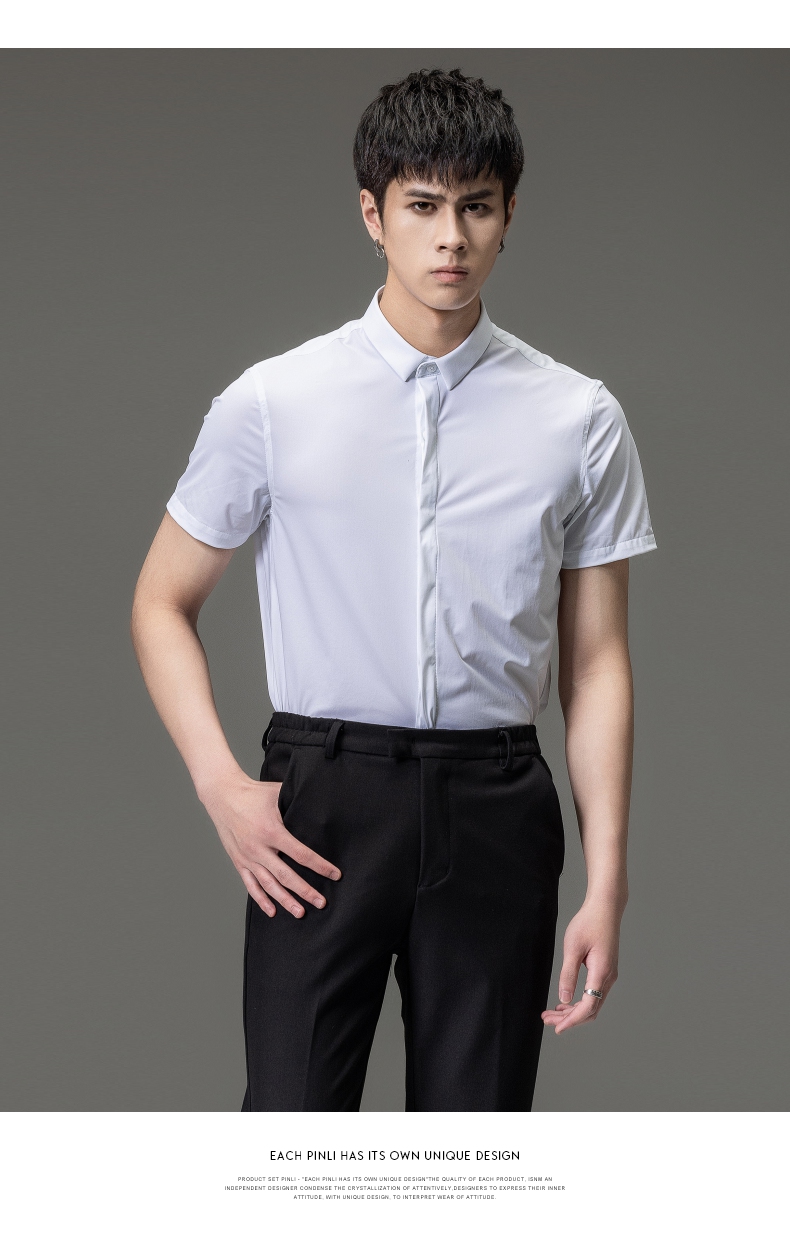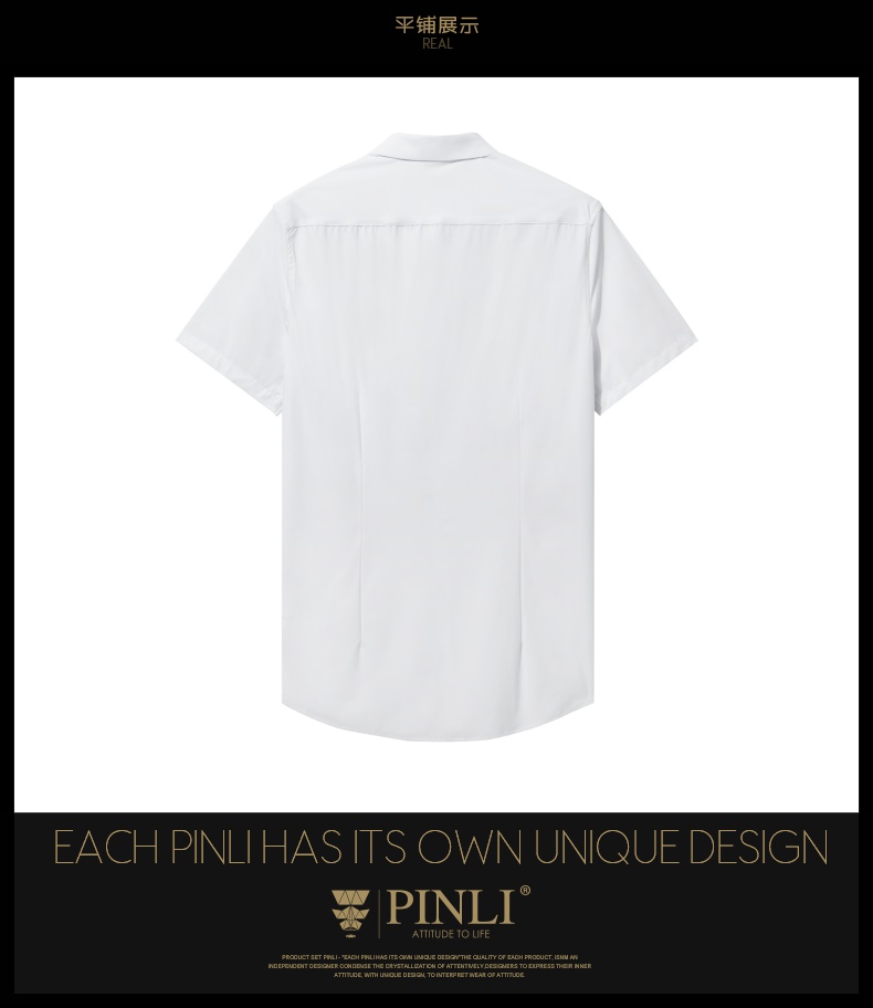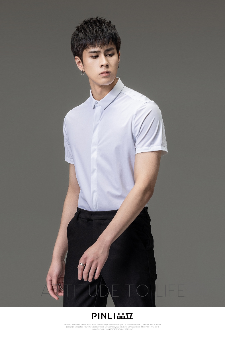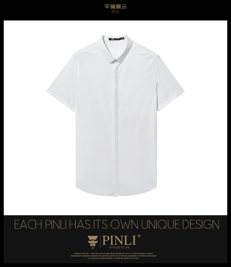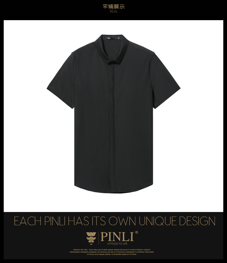 PINLI品立夏季新款男装修身纯色商务衬衫休闲短袖衬衣内搭上衣潮B202713318