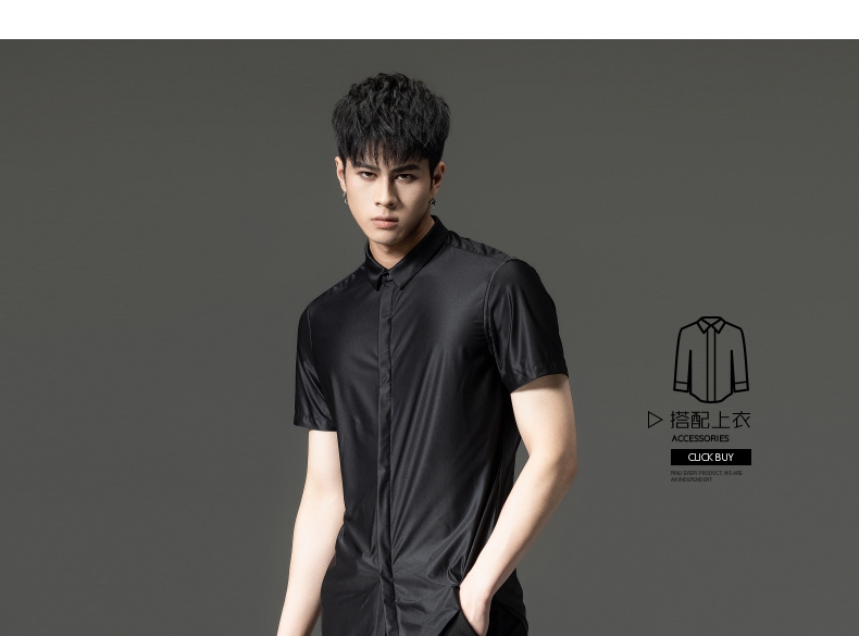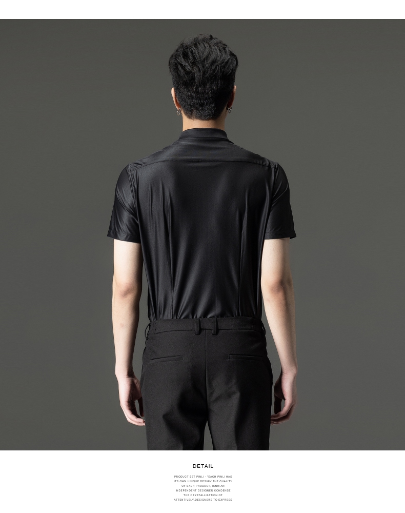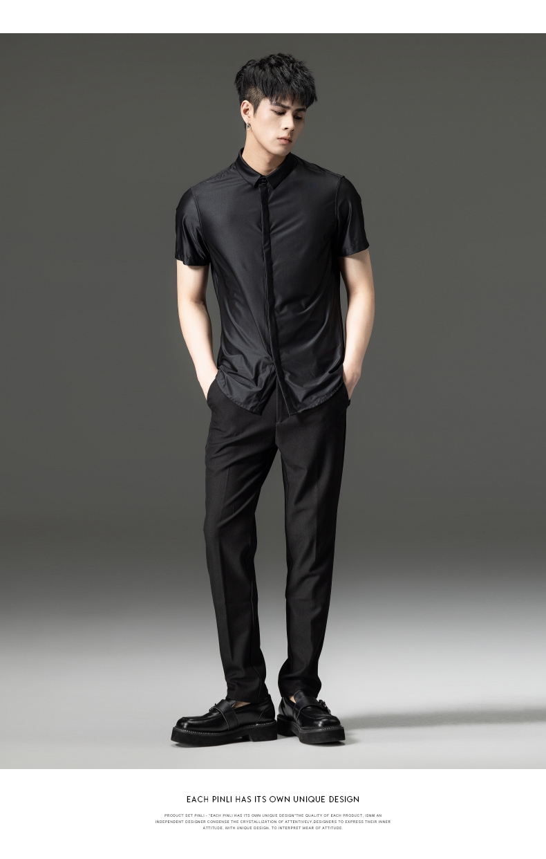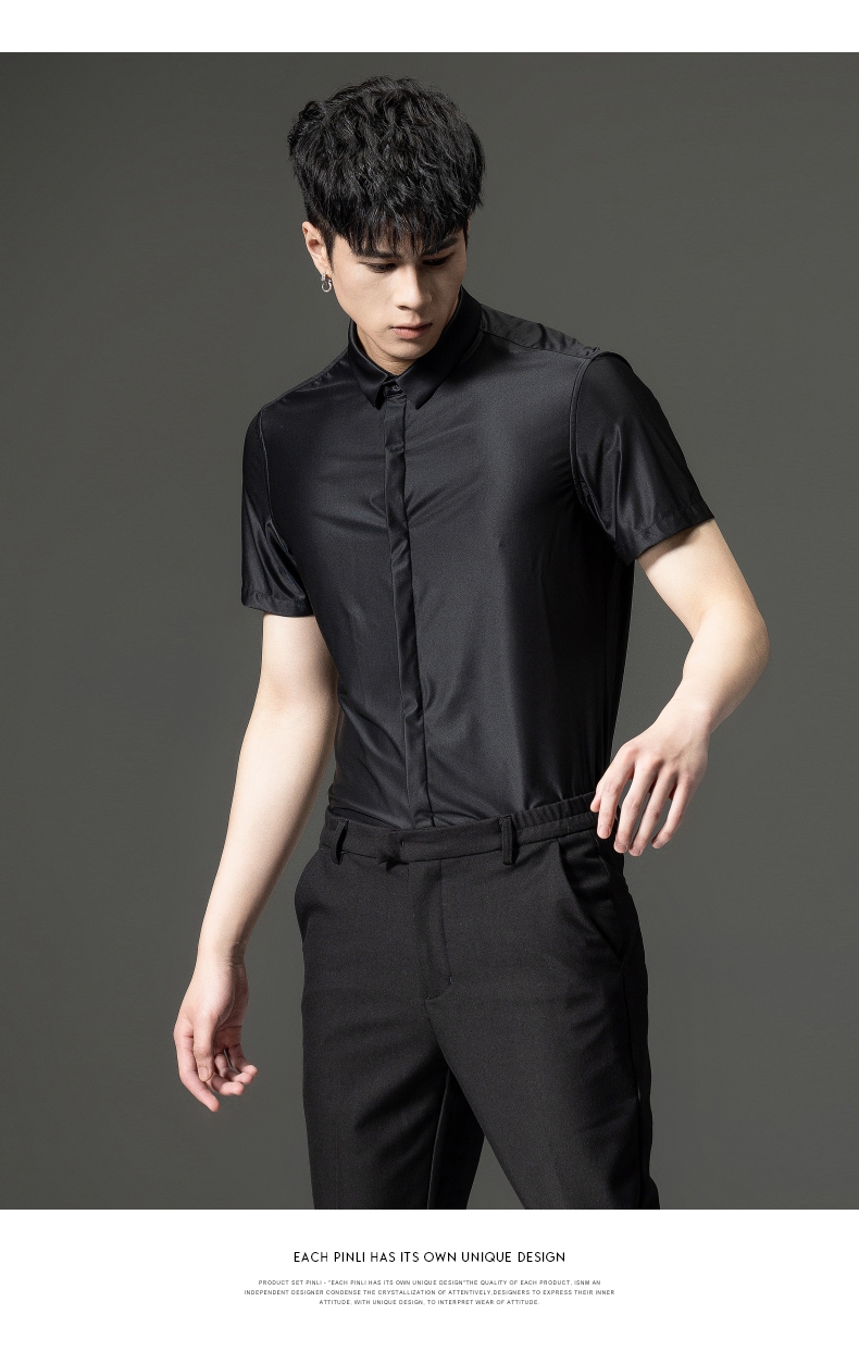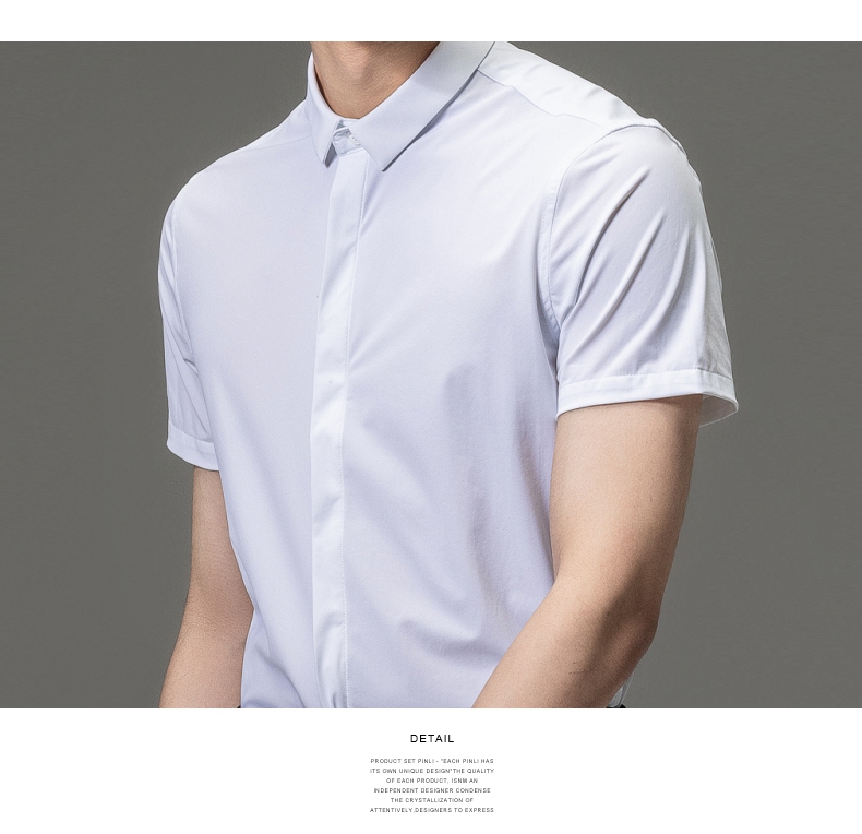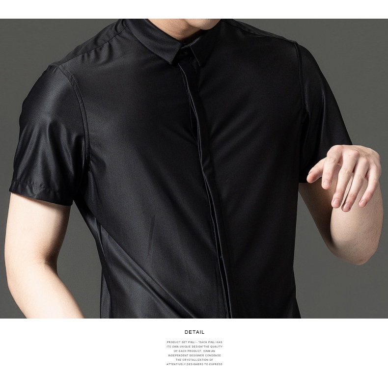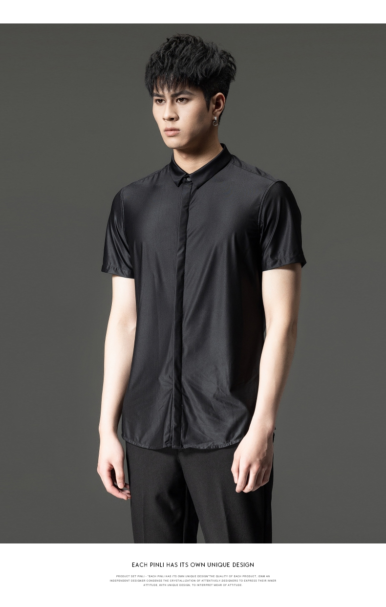 PINLI品立夏季新款男装修身纯色商务衬衫休闲短袖衬衣内搭上衣潮B202713318