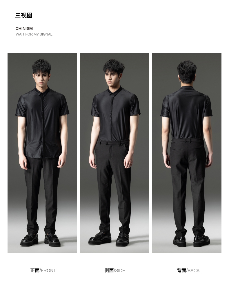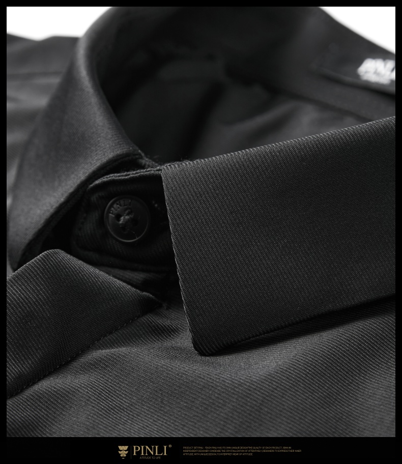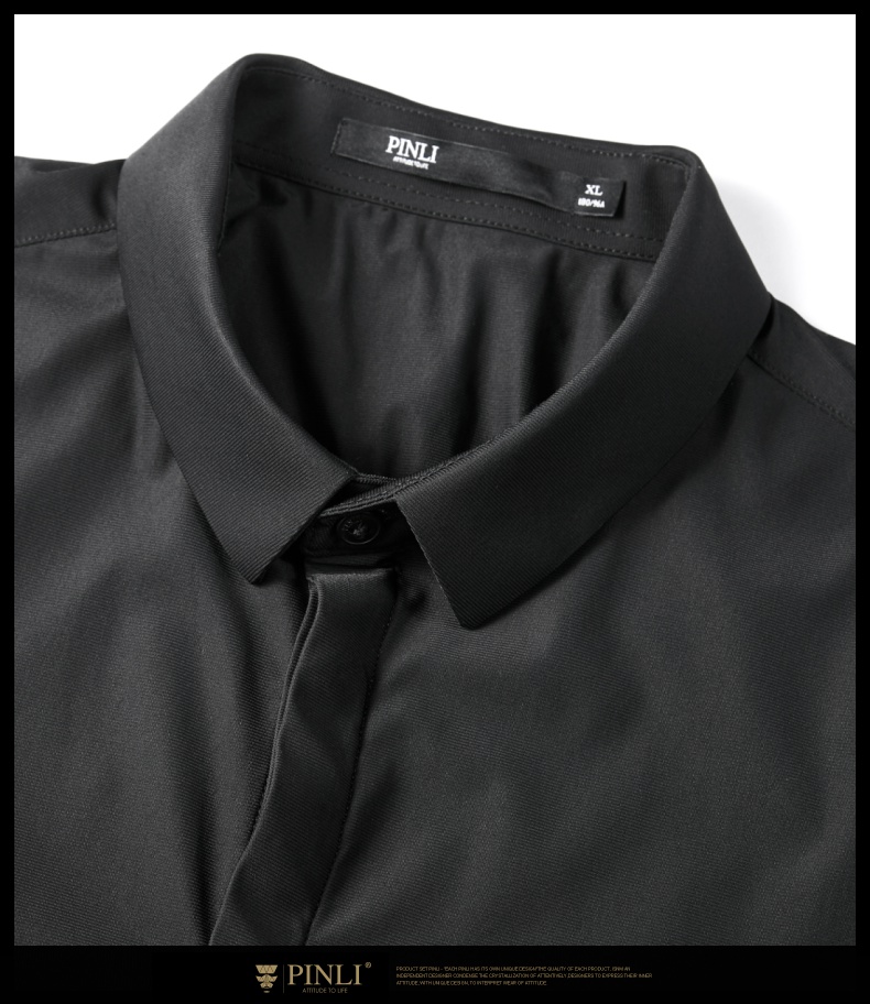 PINLI品立秋季新款纯色立领中袖衬衫男士免烫休闲五分袖衬衣GD242213296