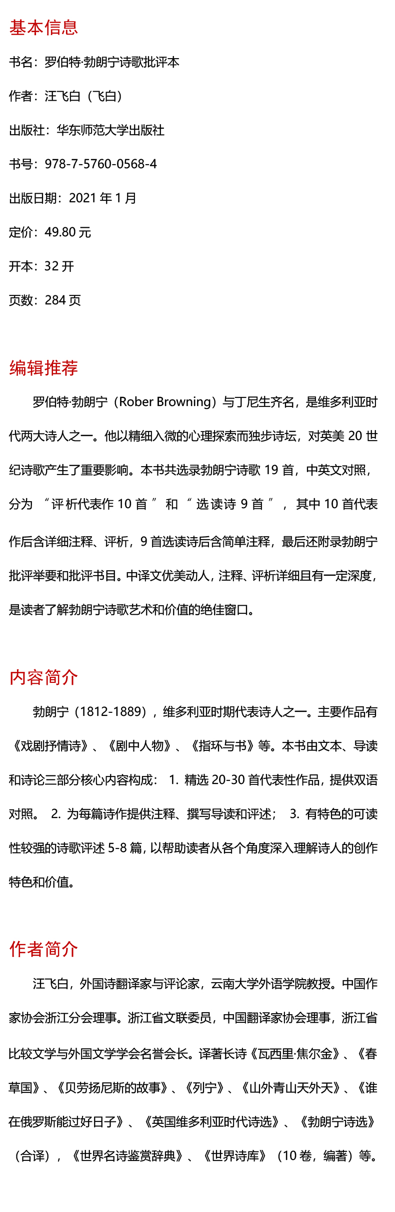 罗伯特·勃朗宁诗歌批评本 十九首世界诗歌批评本丛书 飞白著 文学评论