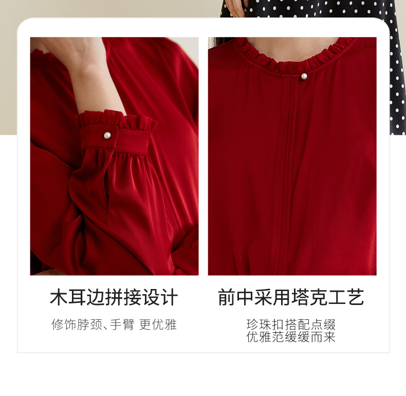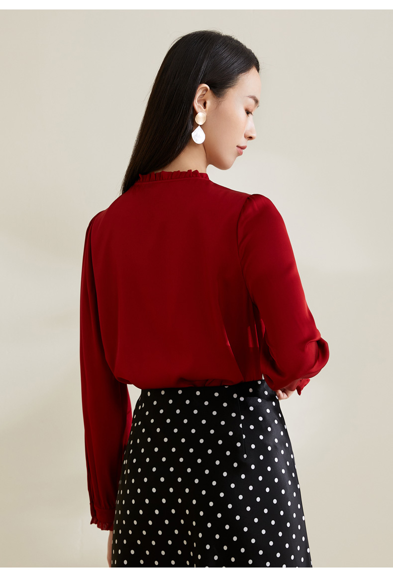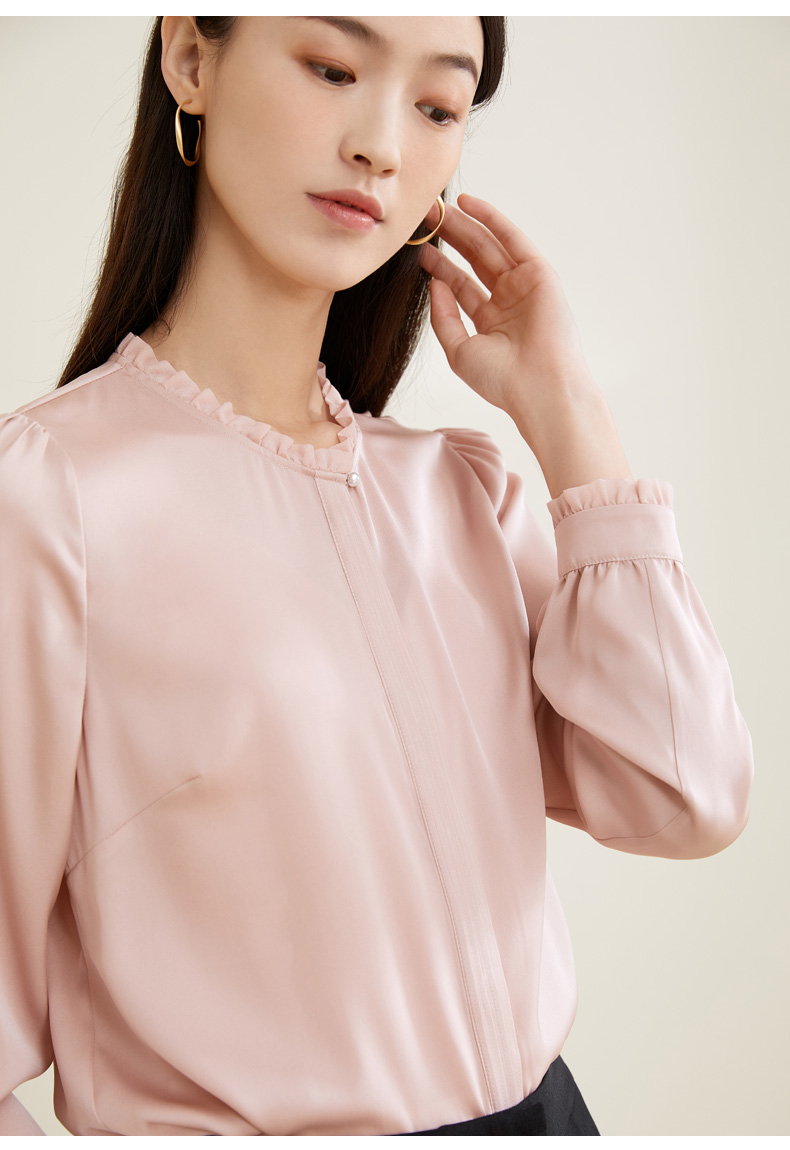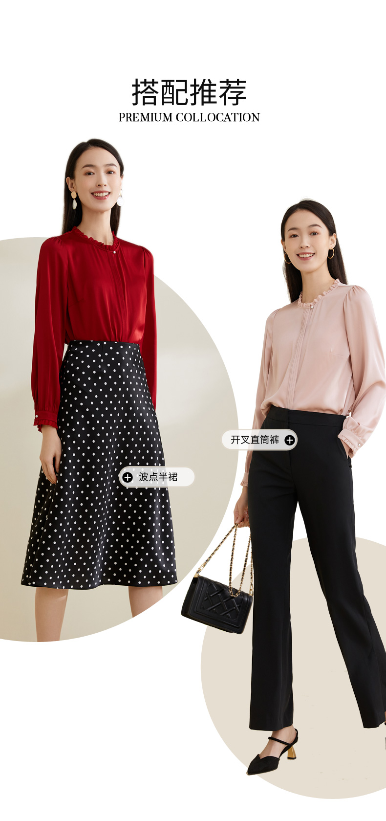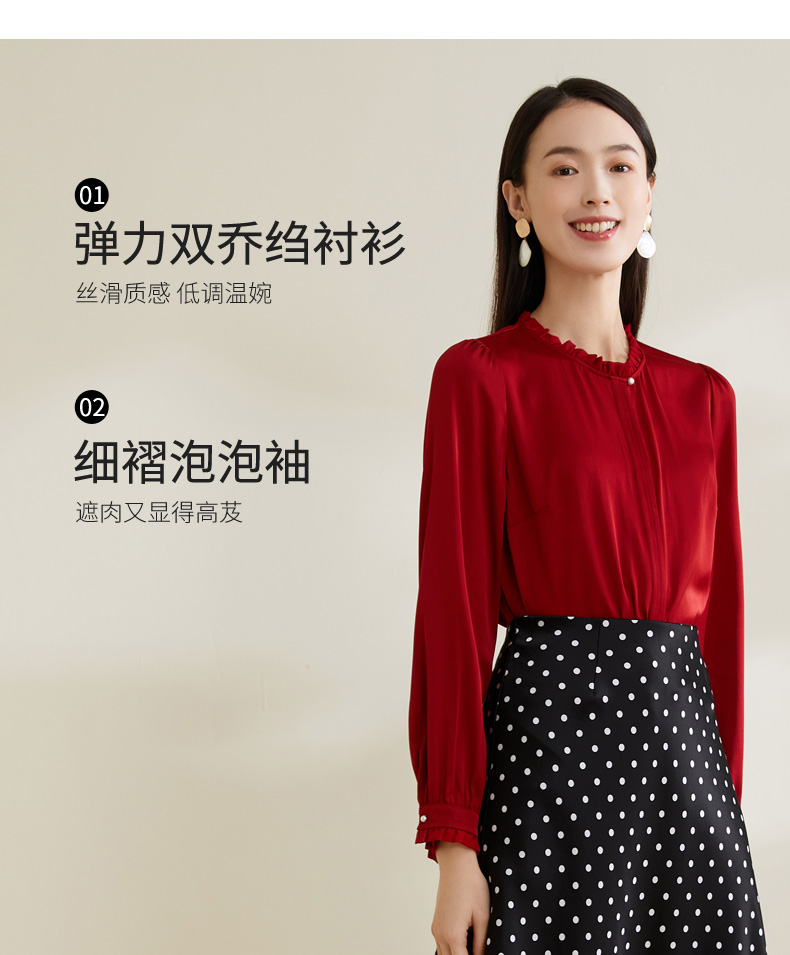 玳莎真丝衬衫19mm弹力双乔绉别致木耳边新品桑蚕丝上衣女 CA31303