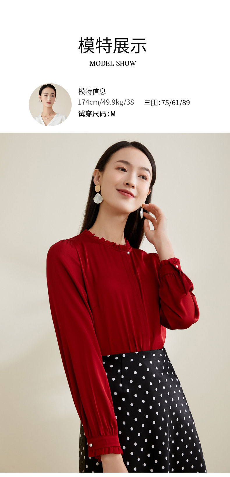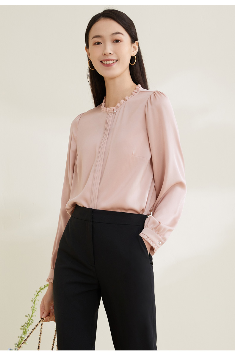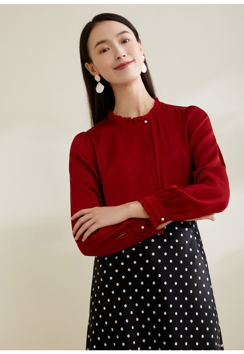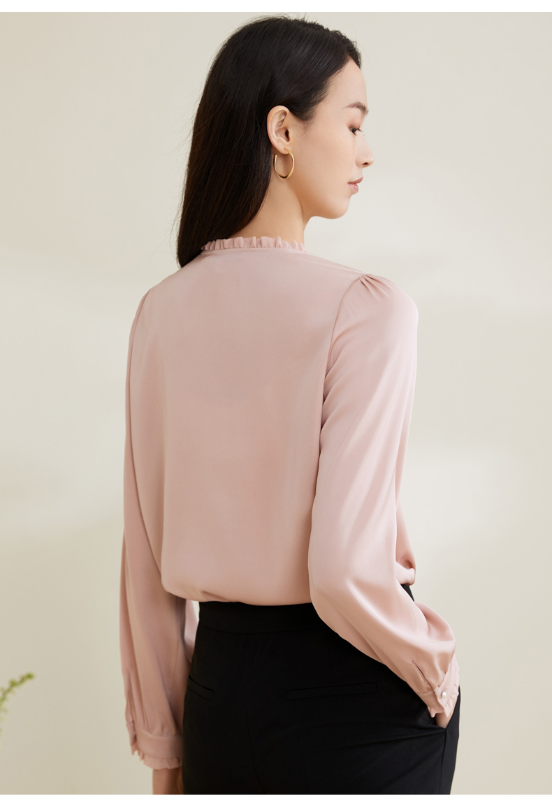 玳莎真丝衬衫19mm弹力双乔绉别致木耳边新品桑蚕丝上衣女 CA31303
