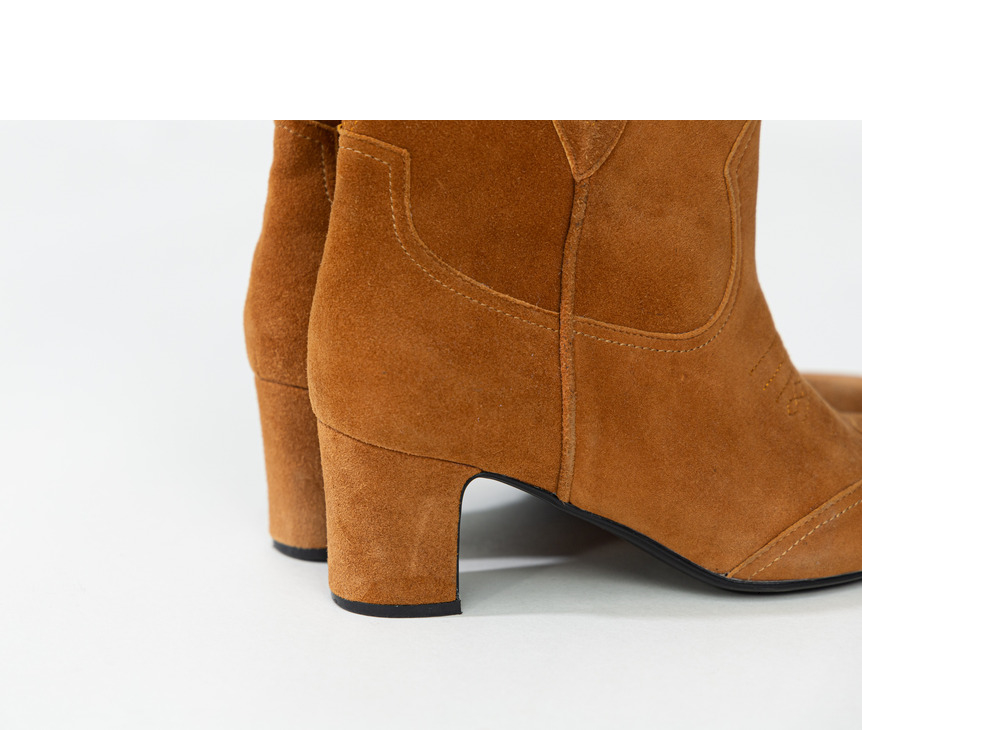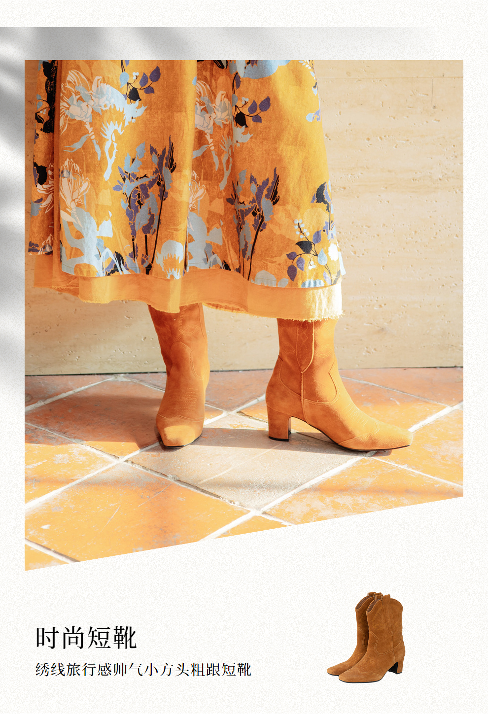 绽放旅行女装JS129朵/秋冬绒感绣线旅行感帅气小方头粗跟短靴子