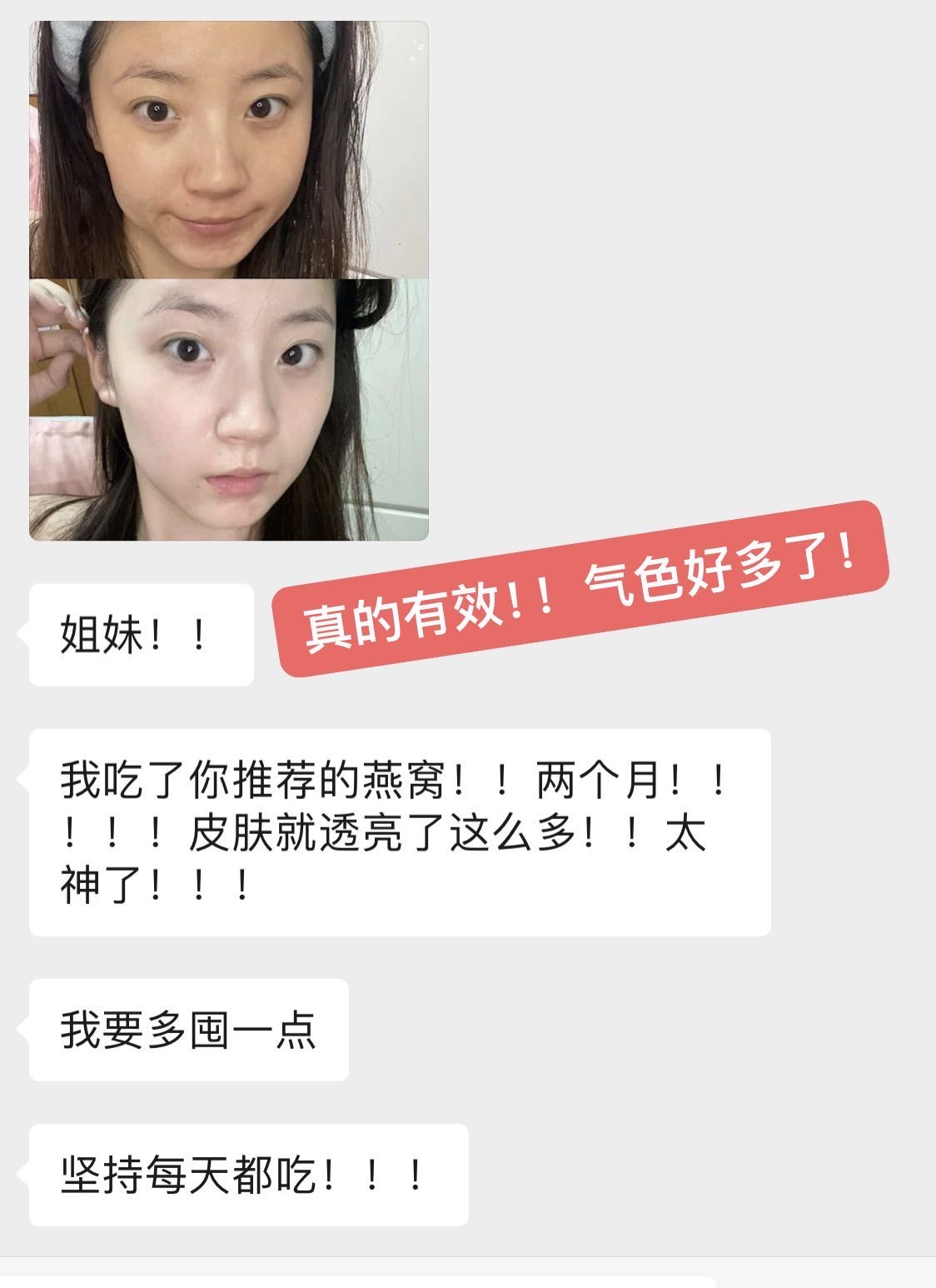 坚持吃2个月皮肤光泽度气色状态好了
