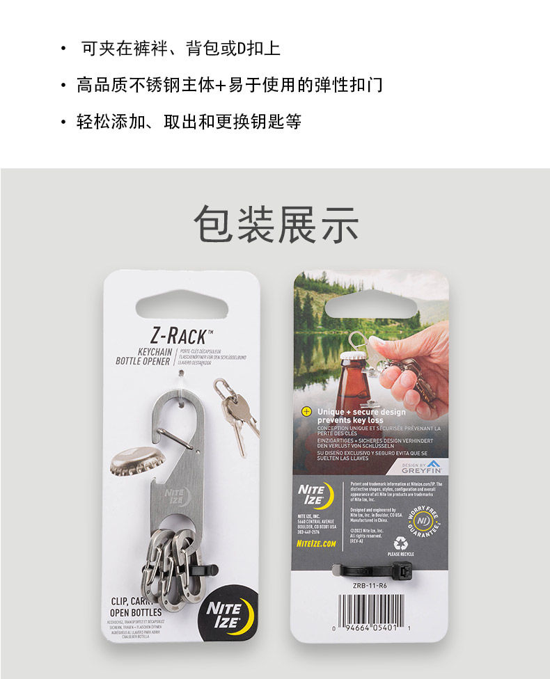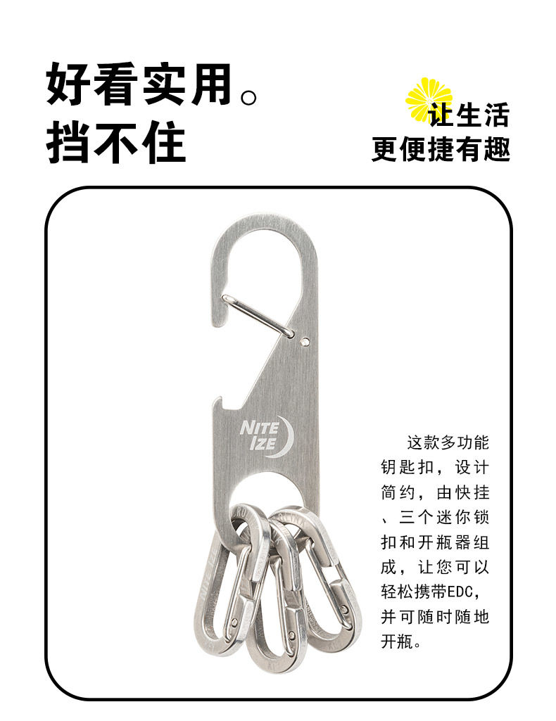 美国奈爱形开瓶钥匙扣不锈钢便携EDC多功能户外创意挂扣