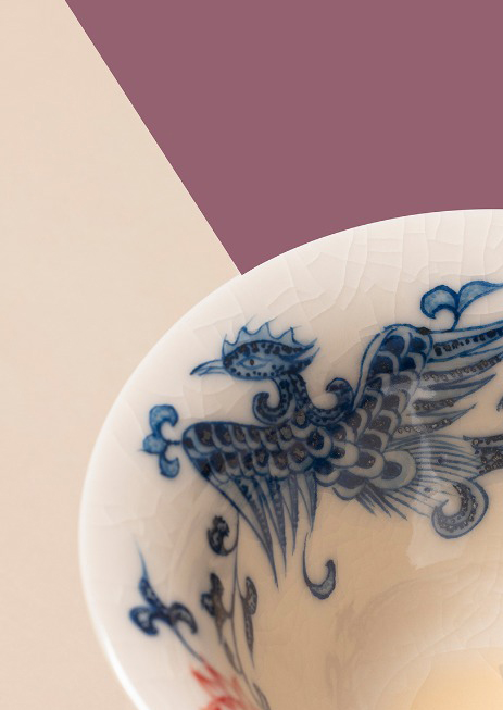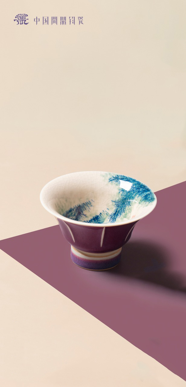 问鼎钧瓷鹅黄青花绪风杯(鱼藻歌)