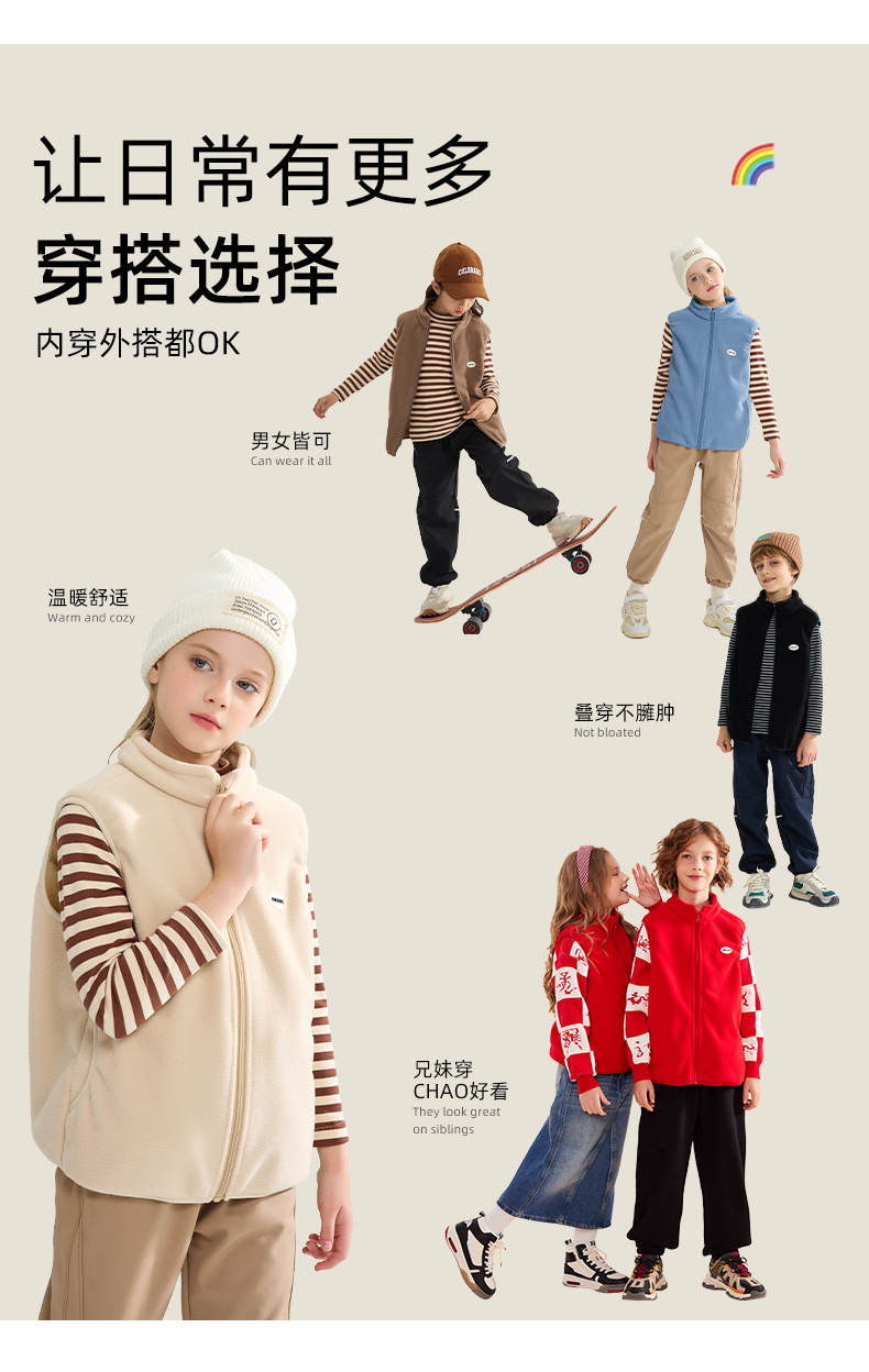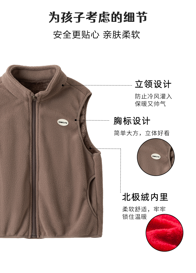【2025反季特价清仓】龙之涵 亲子款“小暖炉”加厚复合双面绒马甲 秋冬新款中大童加绒保暖马甲 婴幼儿A类标准