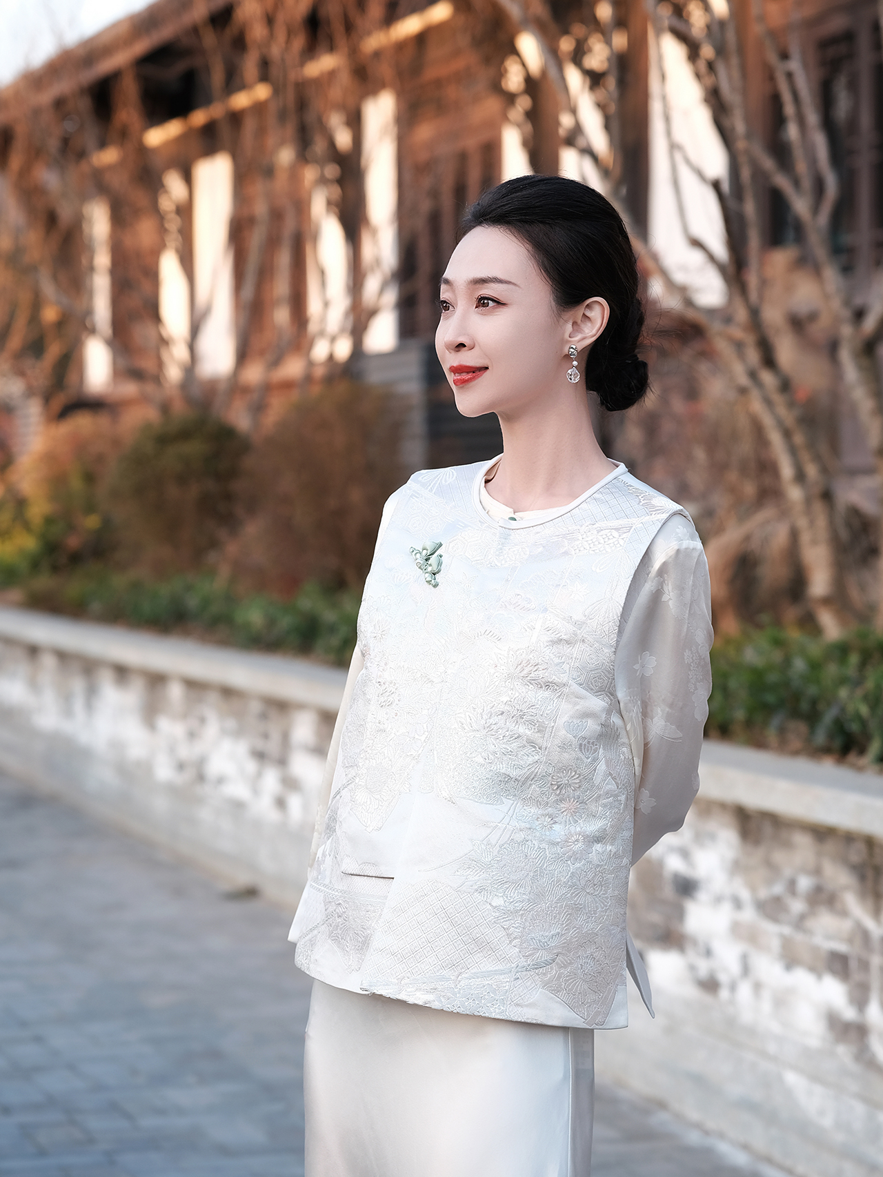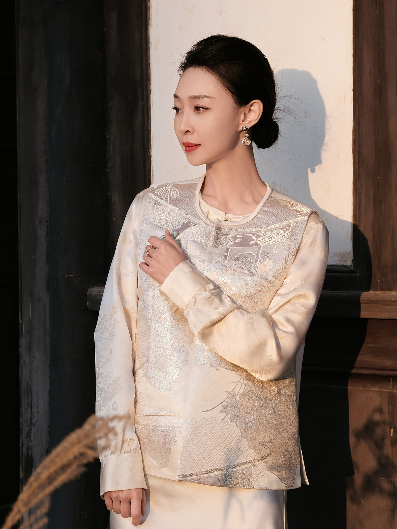 盛唐牡丹 | 西阵织限量偏襟马甲-浅蓝