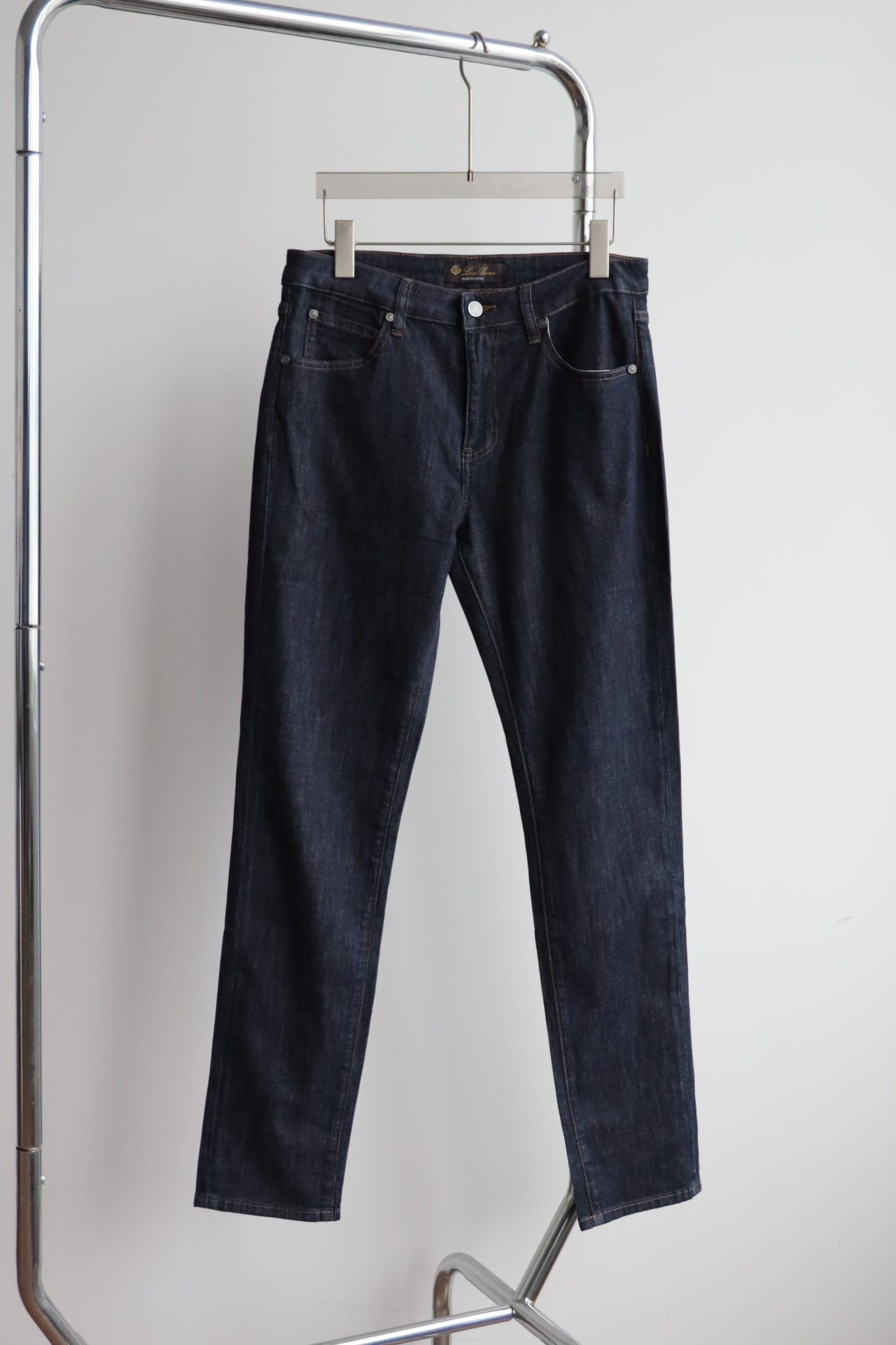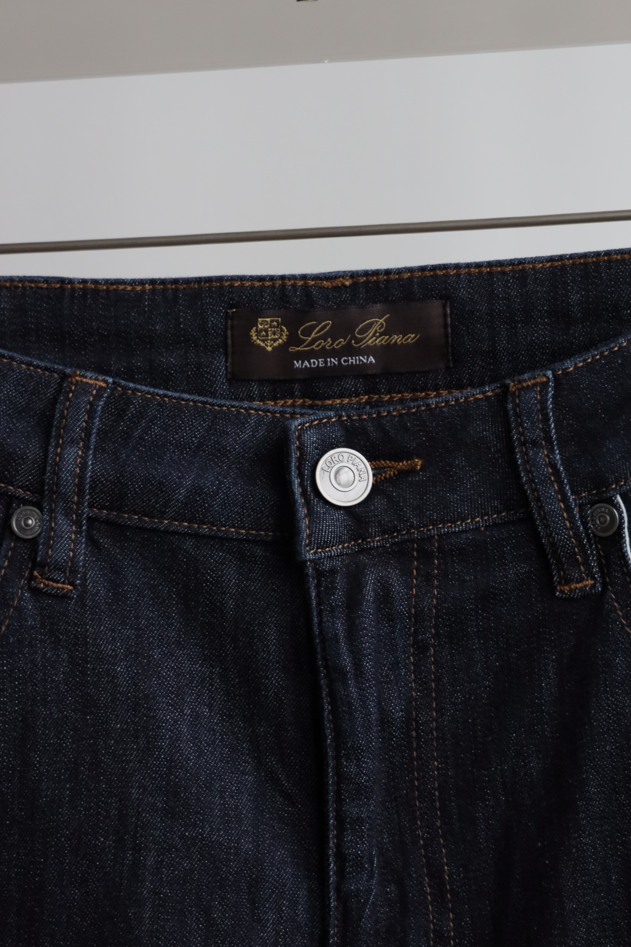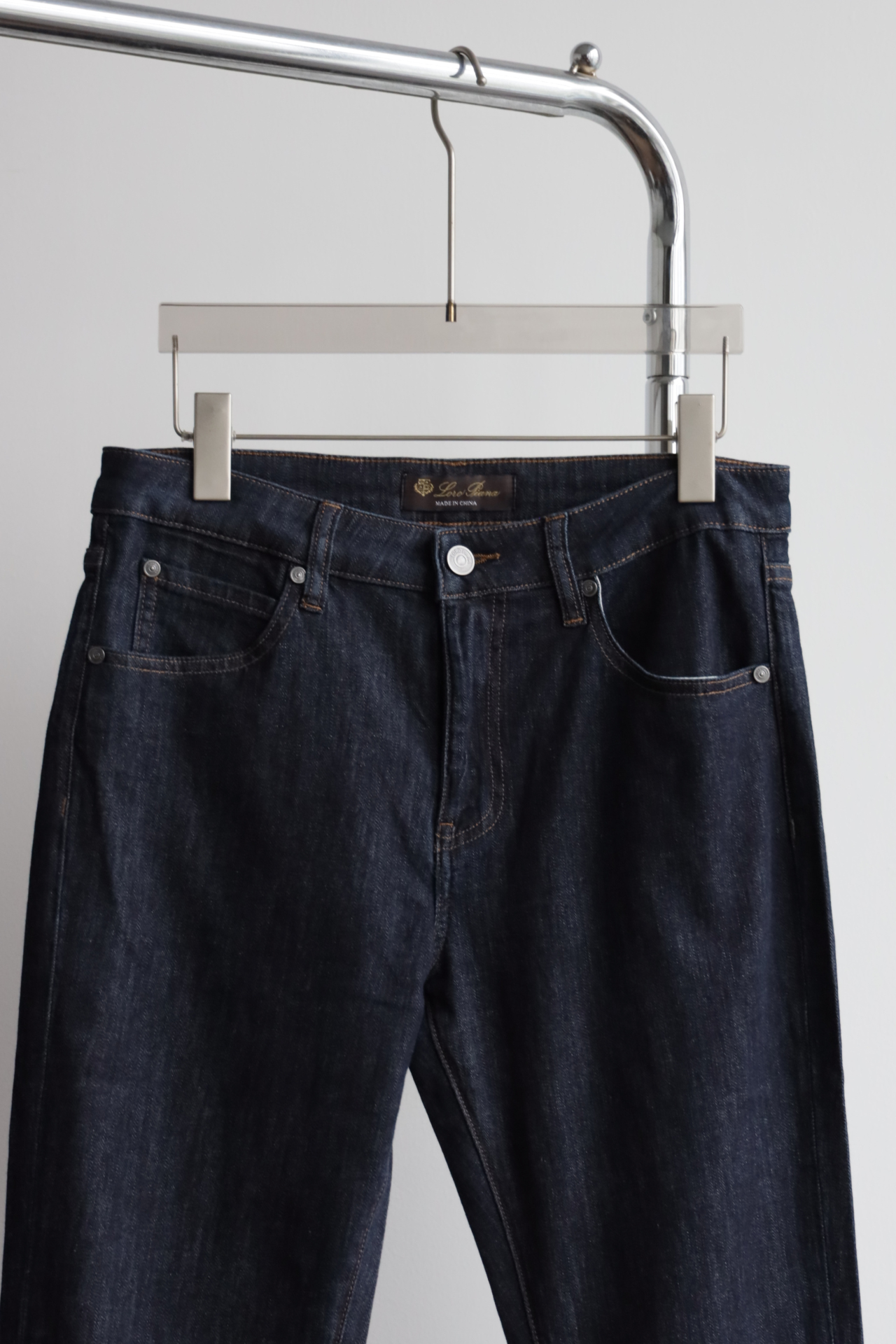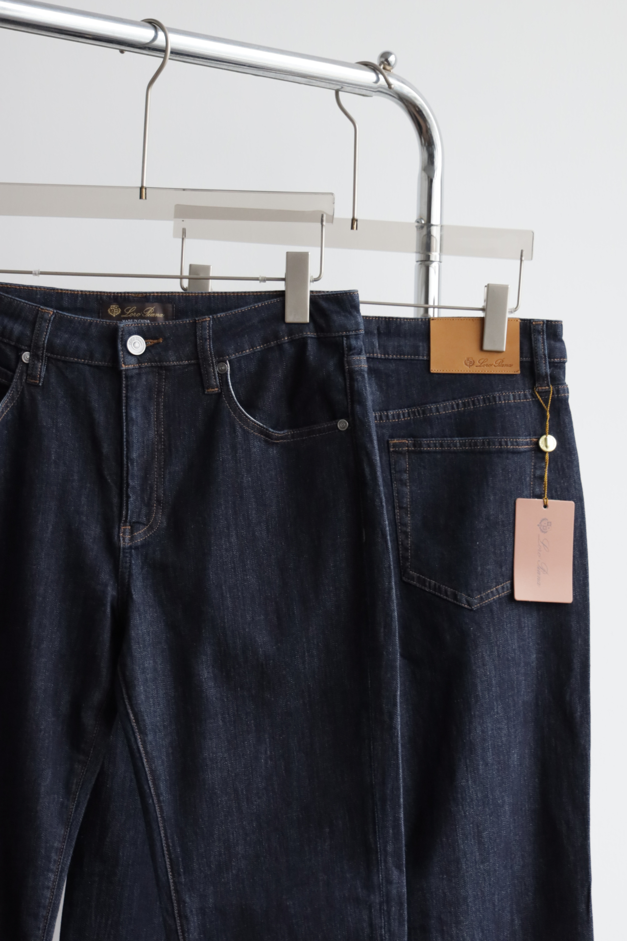 深蓝水洗,日产面料,98棉+2氨纶,五金配饰全部带字母刻印