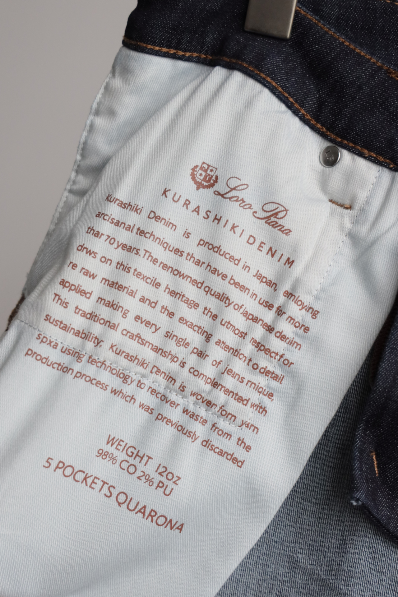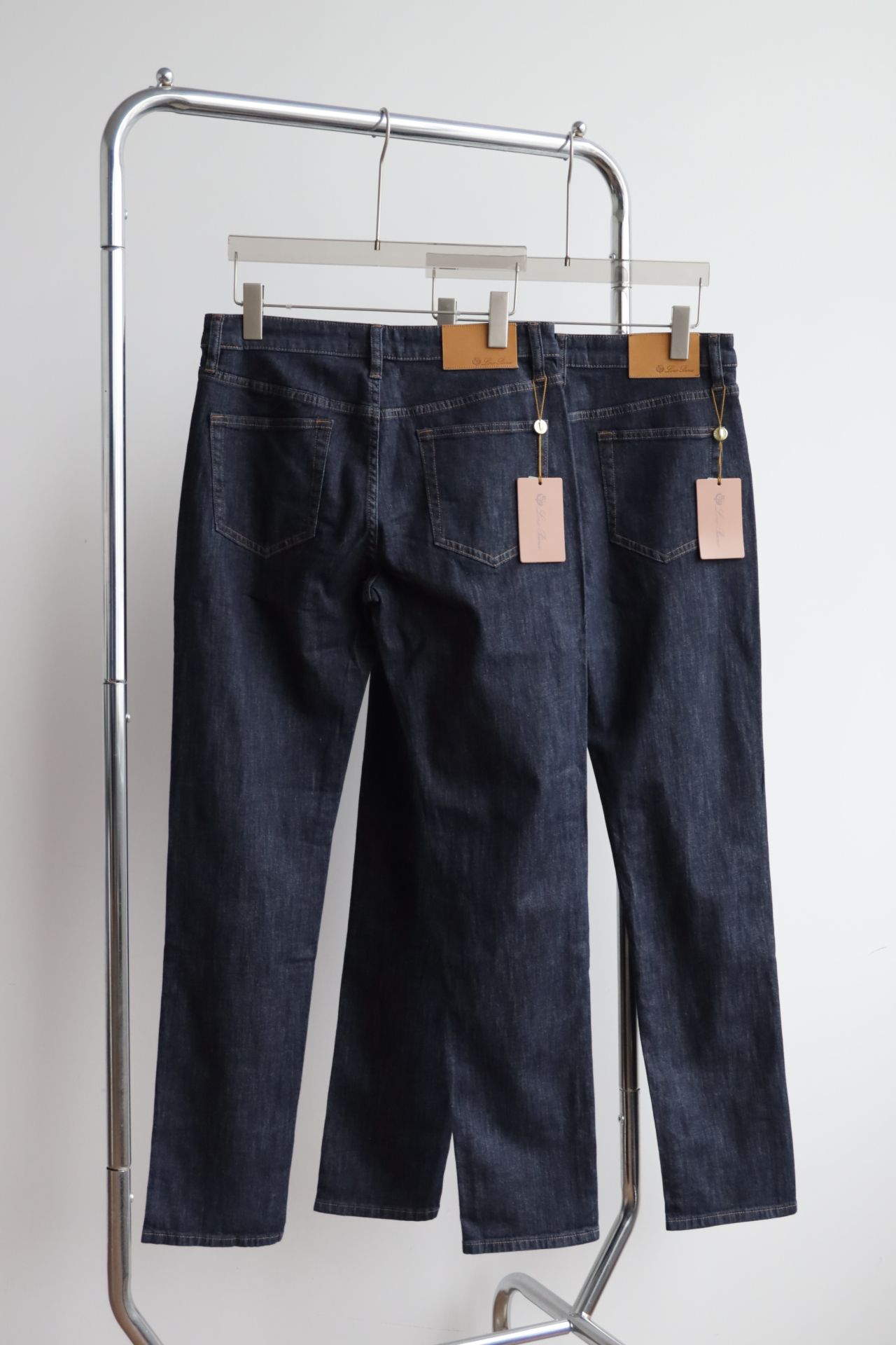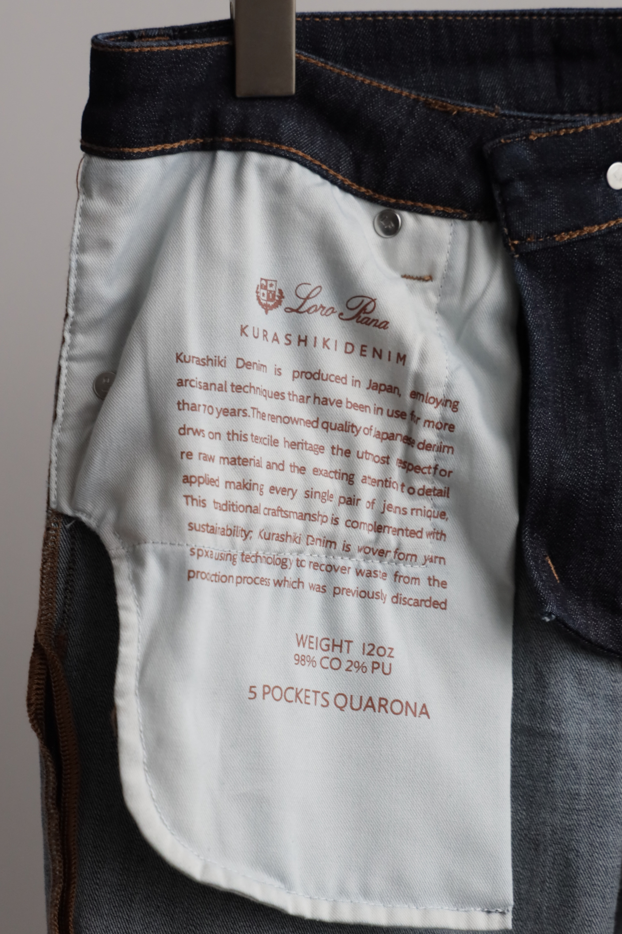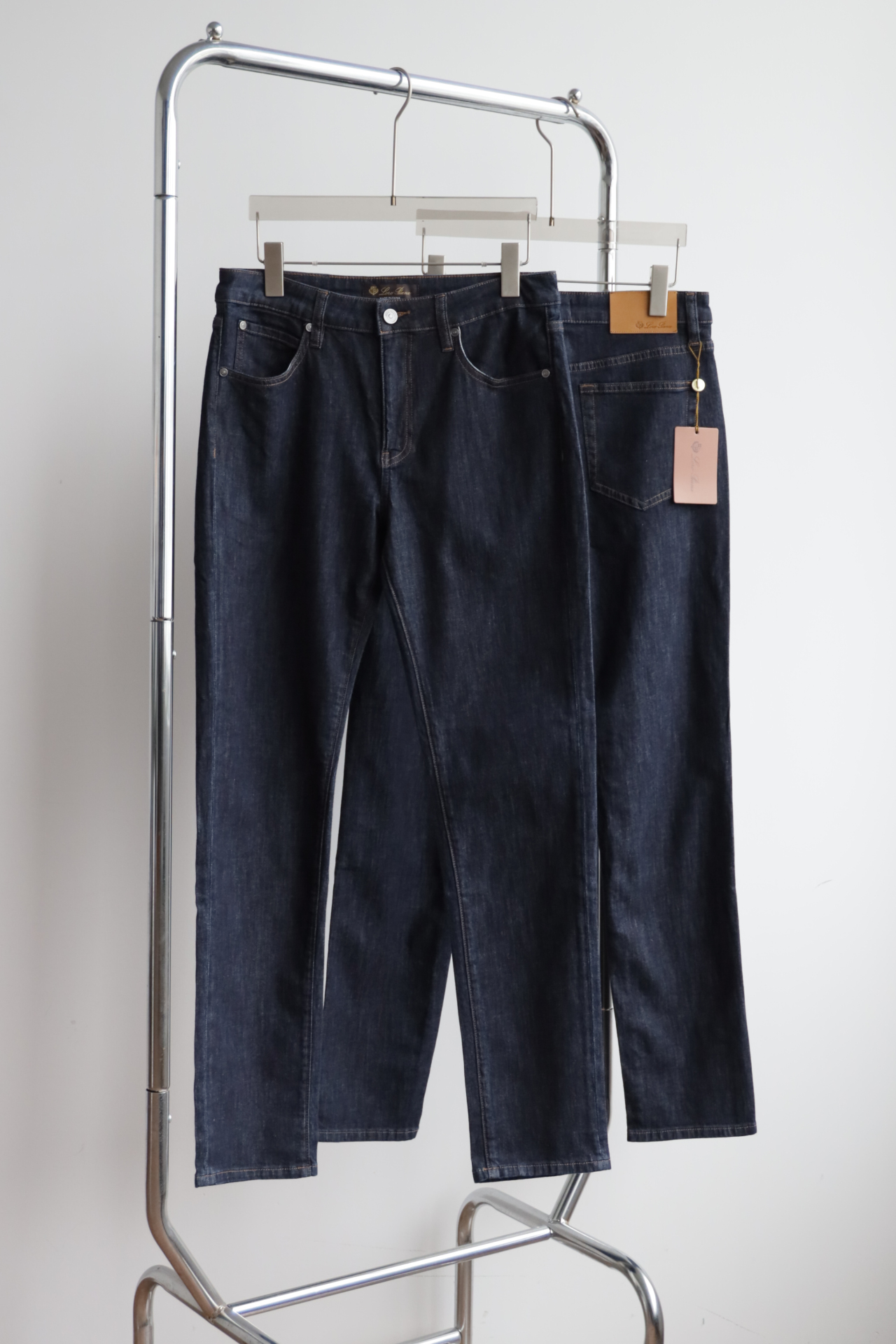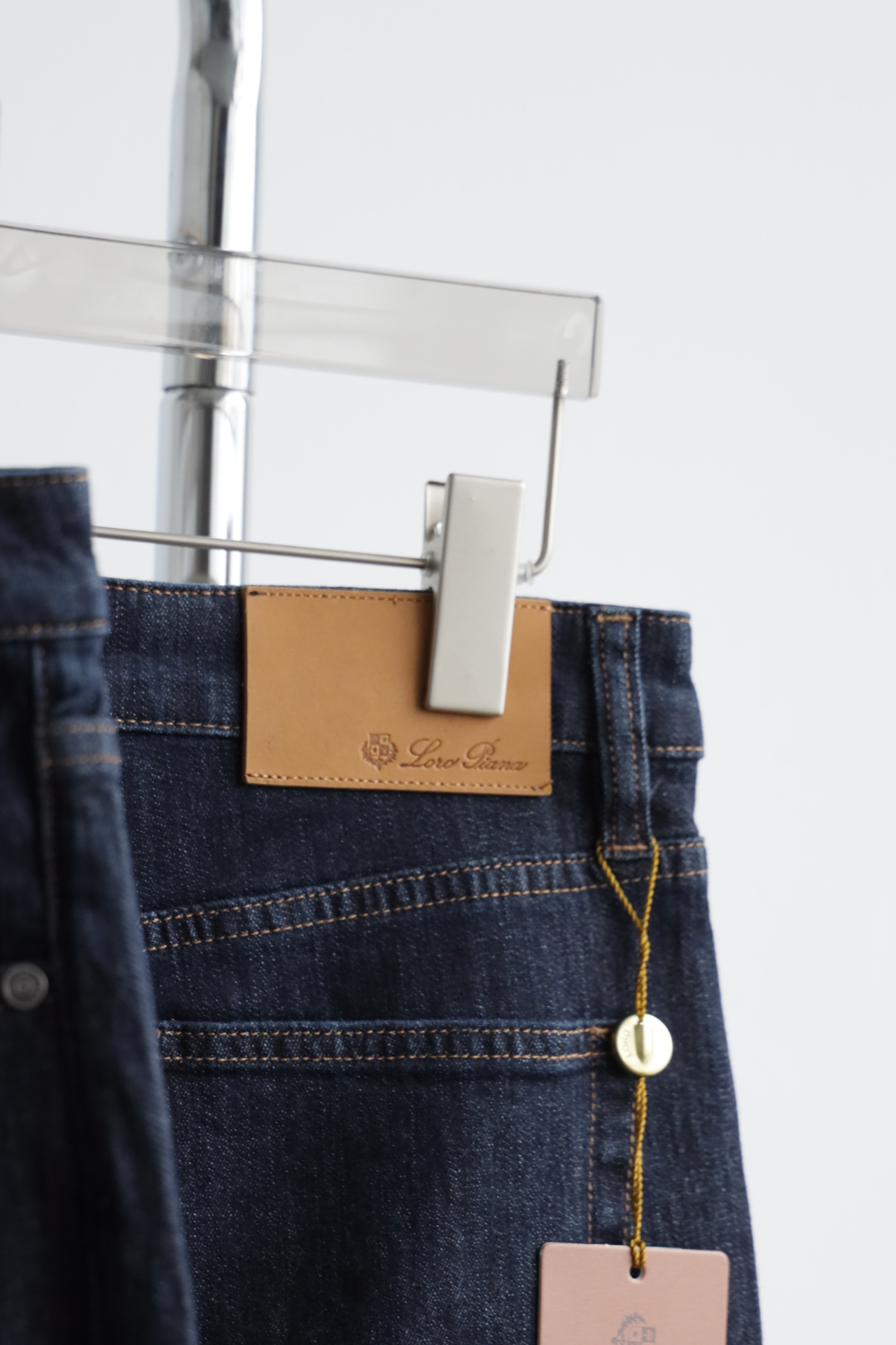 深蓝水洗,日产面料,98棉+2氨纶,五金配饰全部带字母刻印
