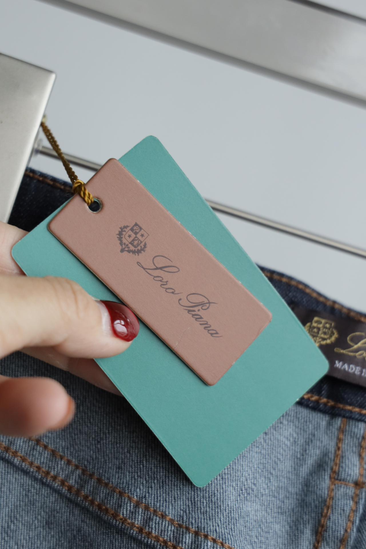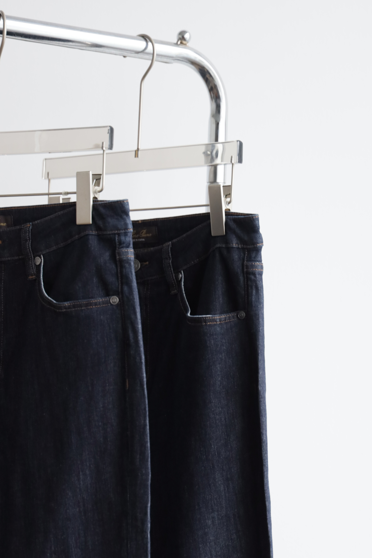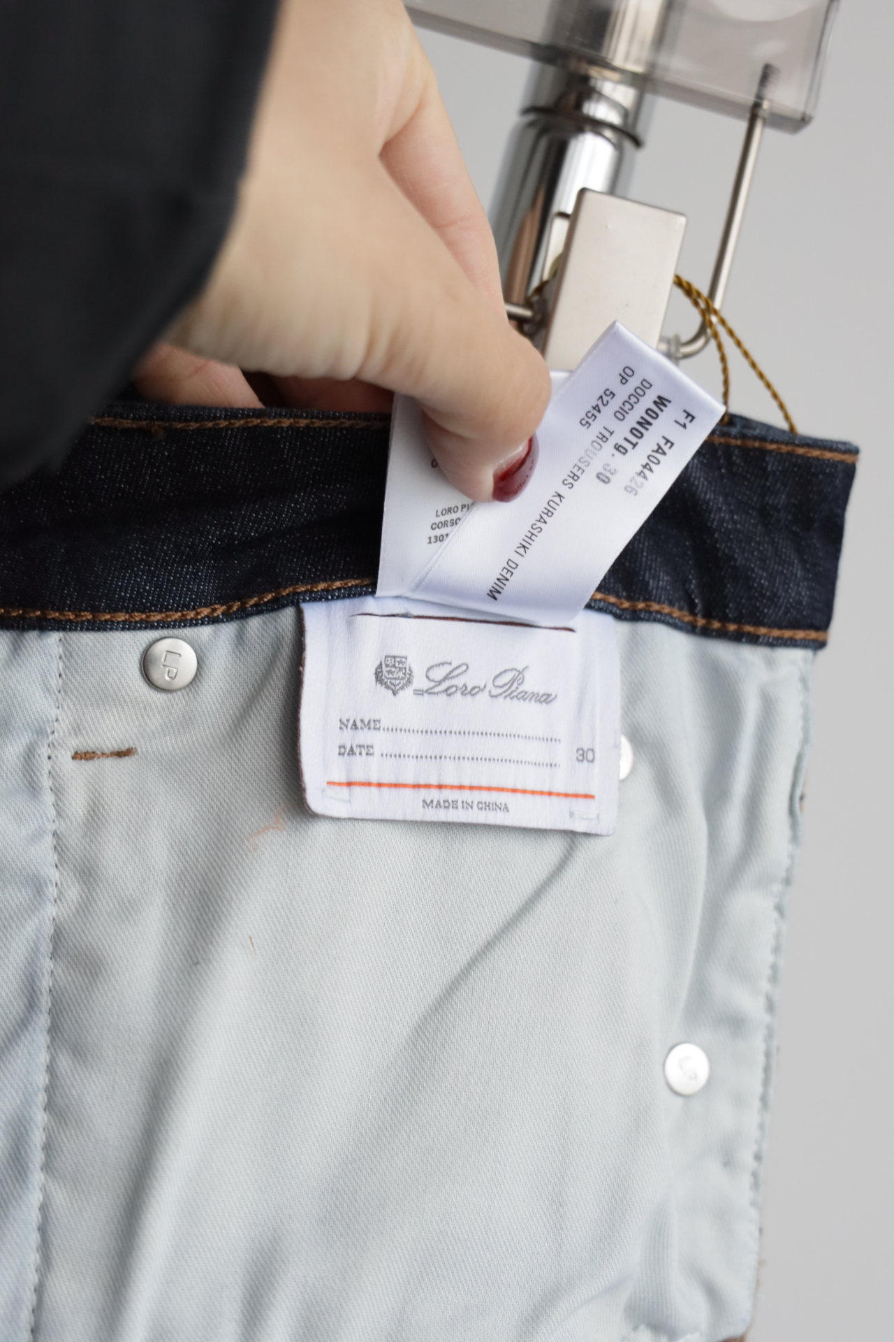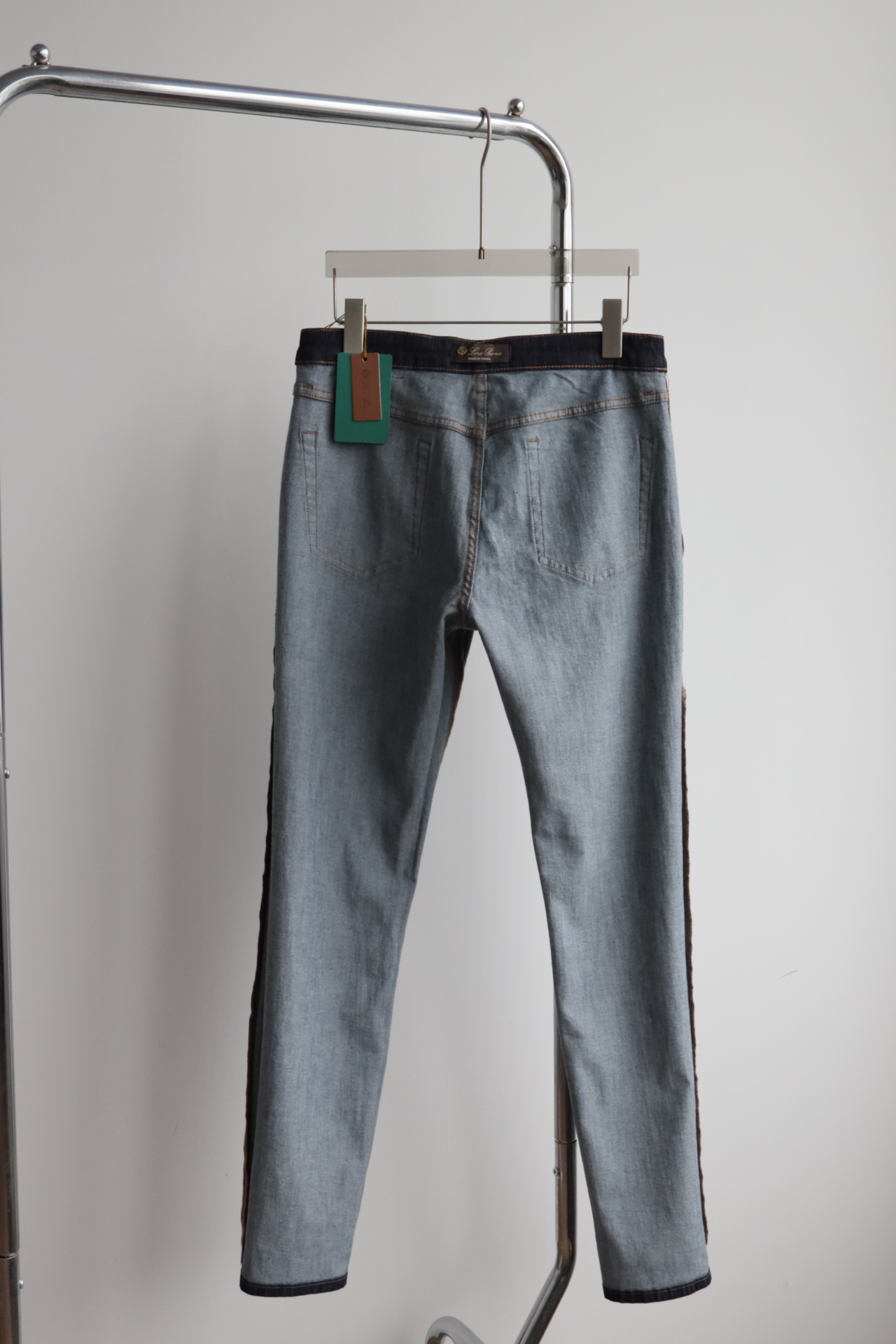 深蓝水洗,日产面料,98棉+2氨纶,五金配饰全部带字母刻印