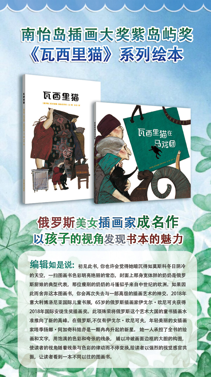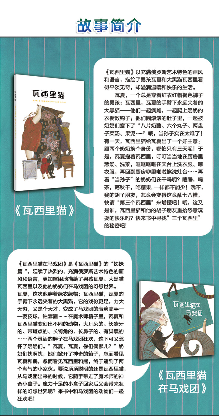 南怡岛插画大奖系列 瓦西里猫绘本 俄罗斯插画家成名作 友谊与爱的温情故事 培养想象力创造力 3-8岁小学生课外儿童读物(2册)