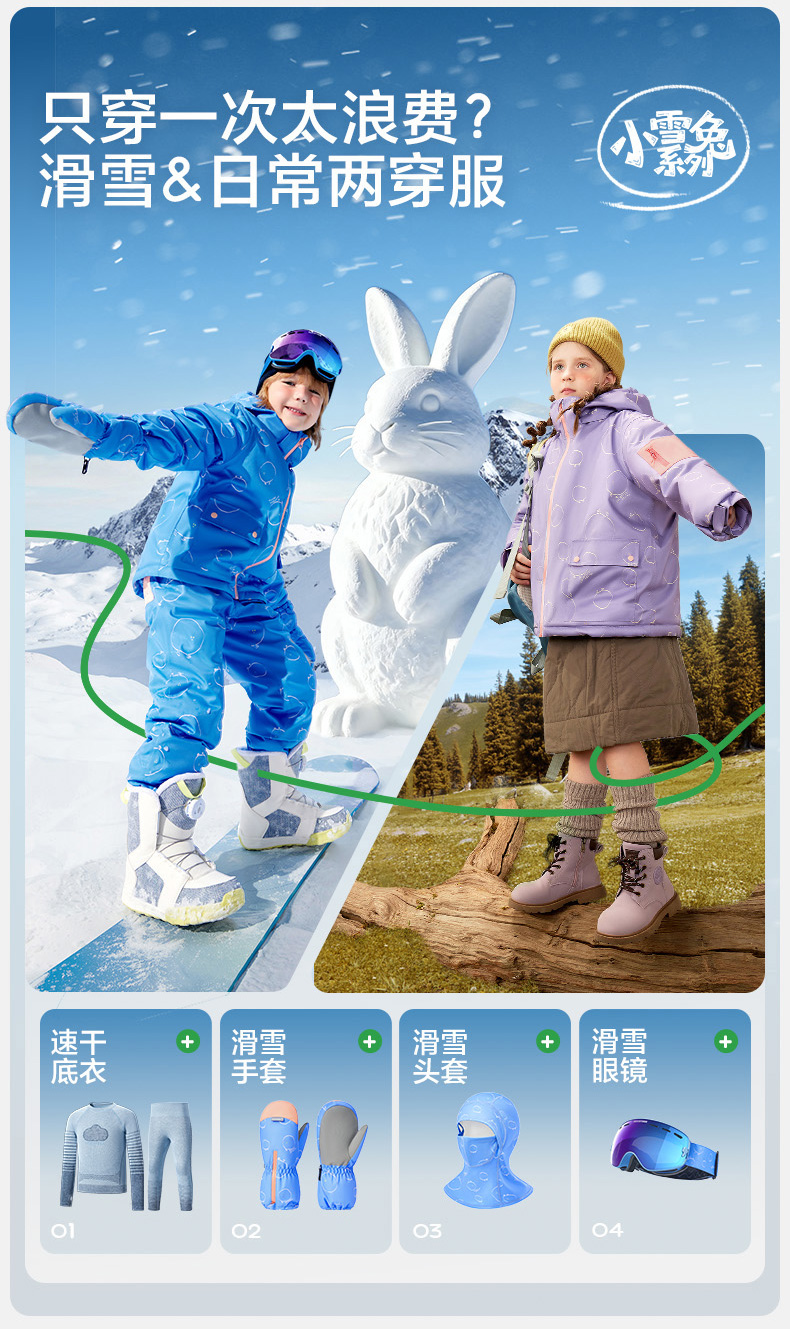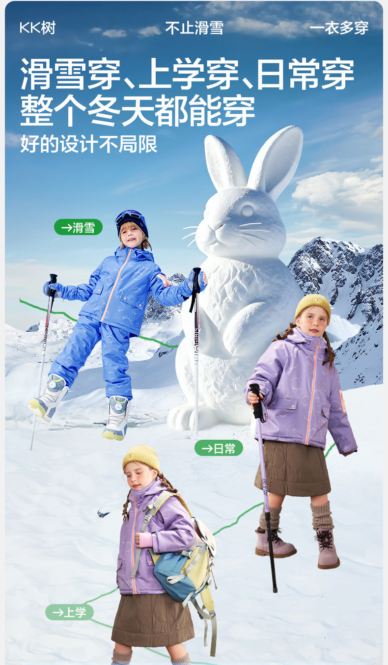【云上泰富】&KK树儿童滑雪服分体男童女孩保暖滑雪衣裤宝宝防水外套2025新款豆丁小雪兔滑雪服