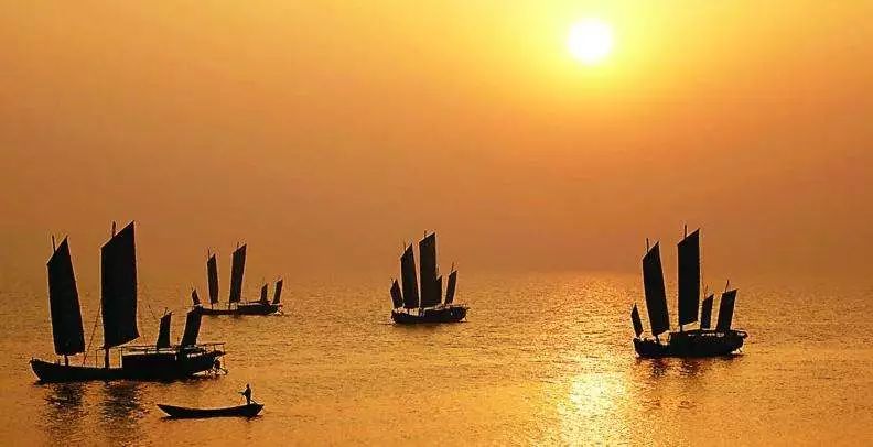 万顷湖光连天,渔帆鸥影点点。