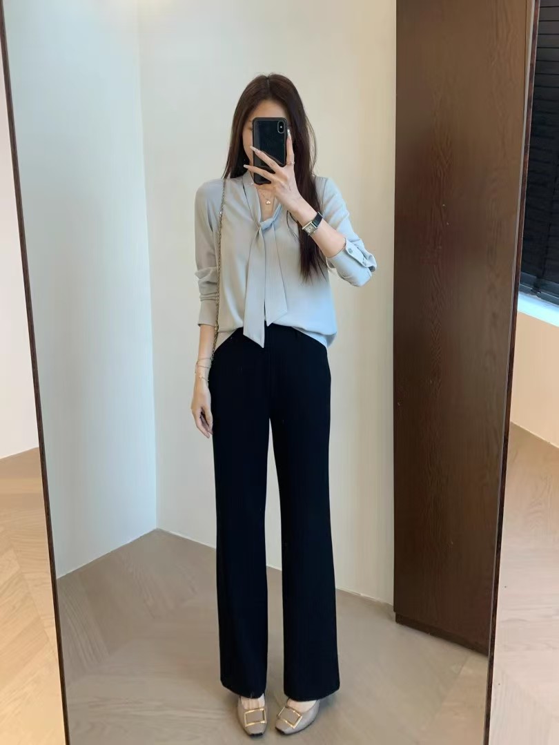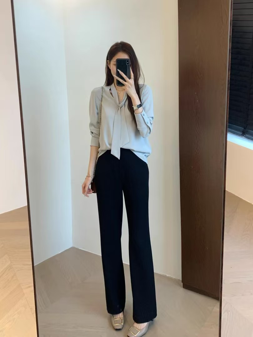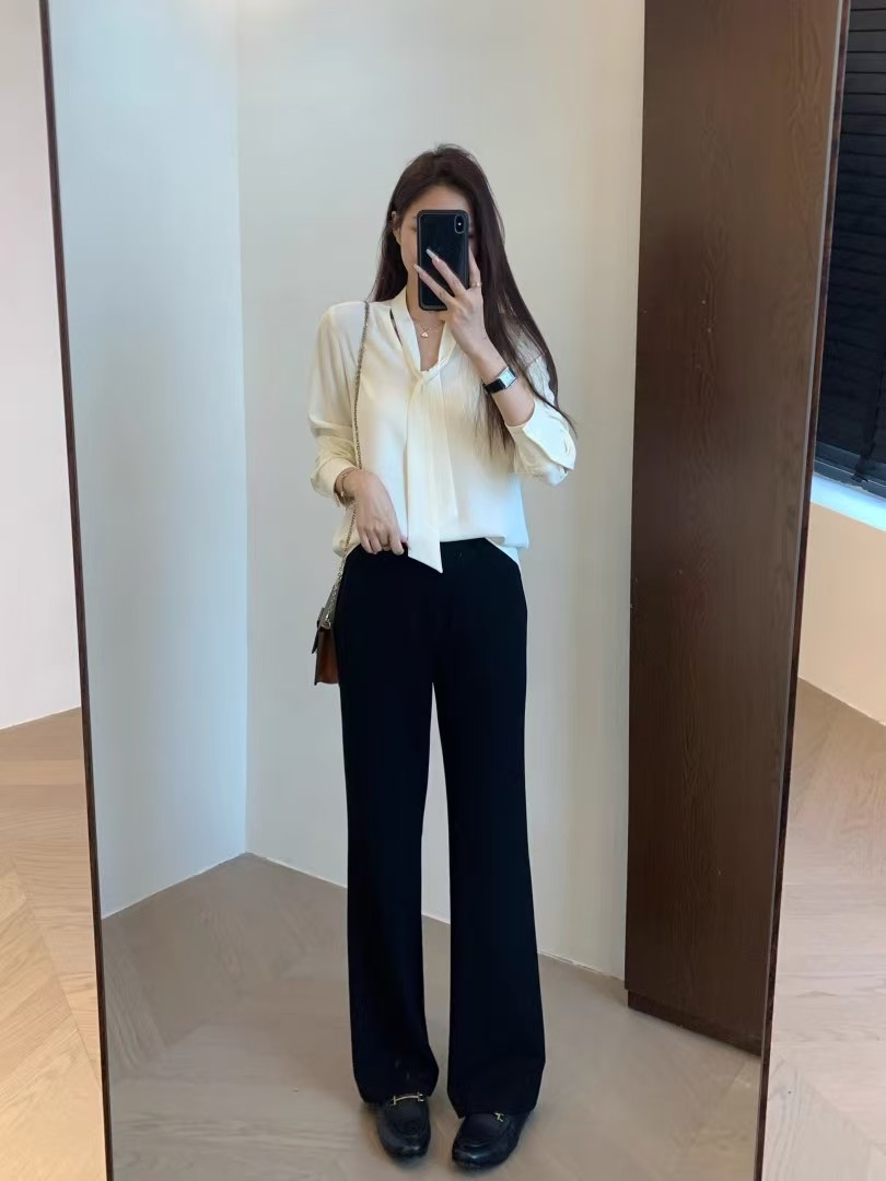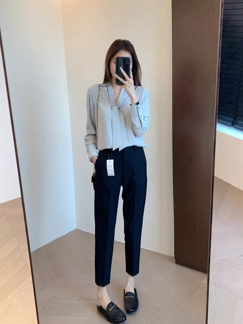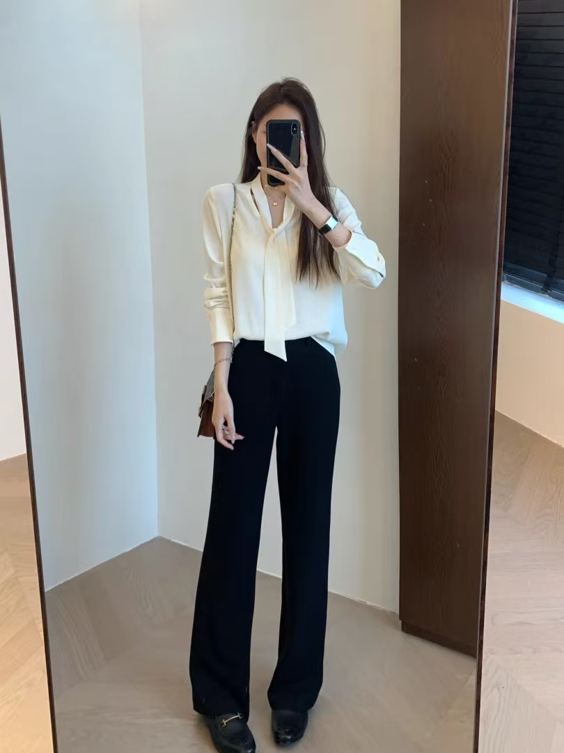 早春新品来一款简约气质法式V领套头温婉雅致飘带衬衫