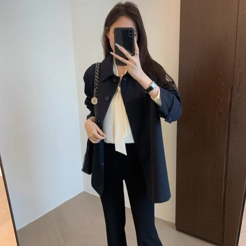 日常职场风,通勤休闲都好穿,搭配半裙足过裤,牛仔裤都没有问题,可做内搭,外穿西装,风衣,小香风,都很好看的!
