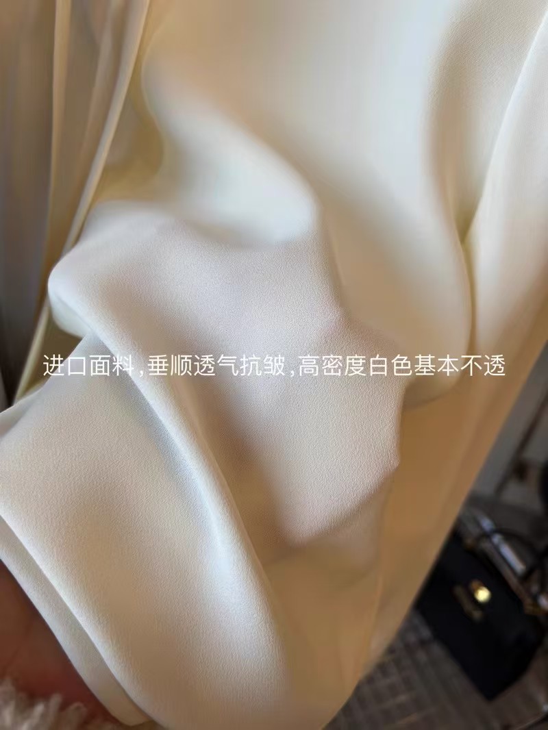 细腻柔软,挺括立体,舒适亲肤,加捻.垂感有挺度,不易钩纱,抗皱白色也不会透,