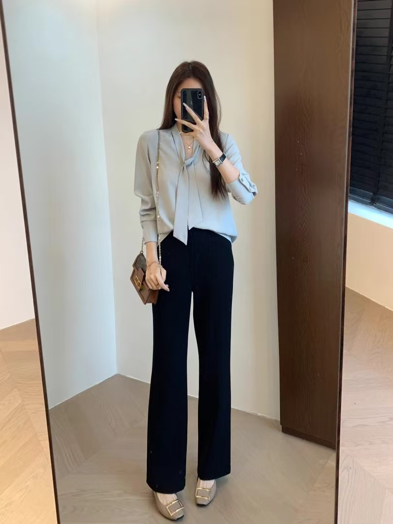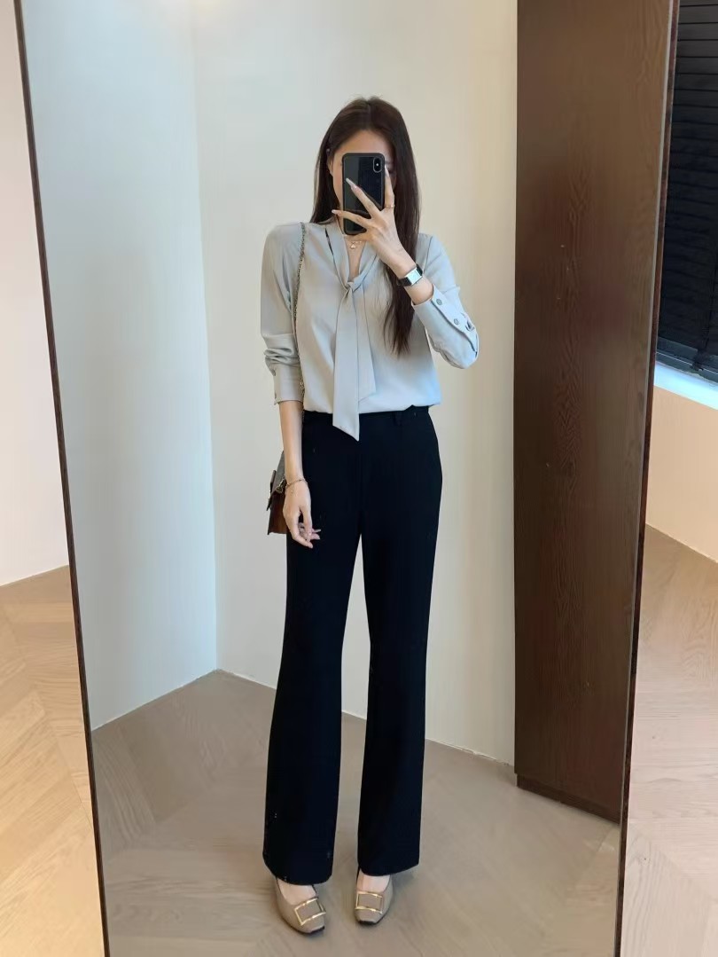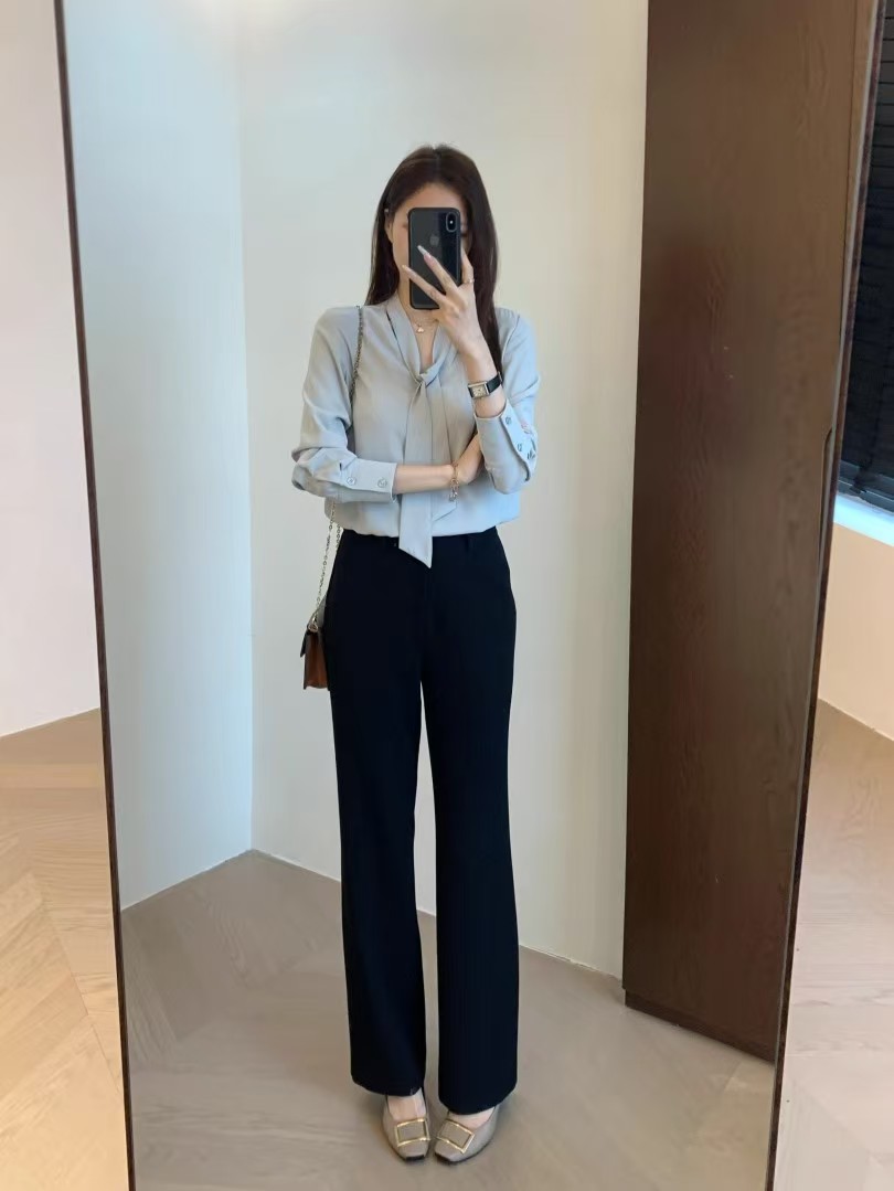 还能精准把握精致通勤的轻松气质美,干练利索,不失涵养的女人味,轻熟洒脱,气质飘带领凸显柔美灵动,