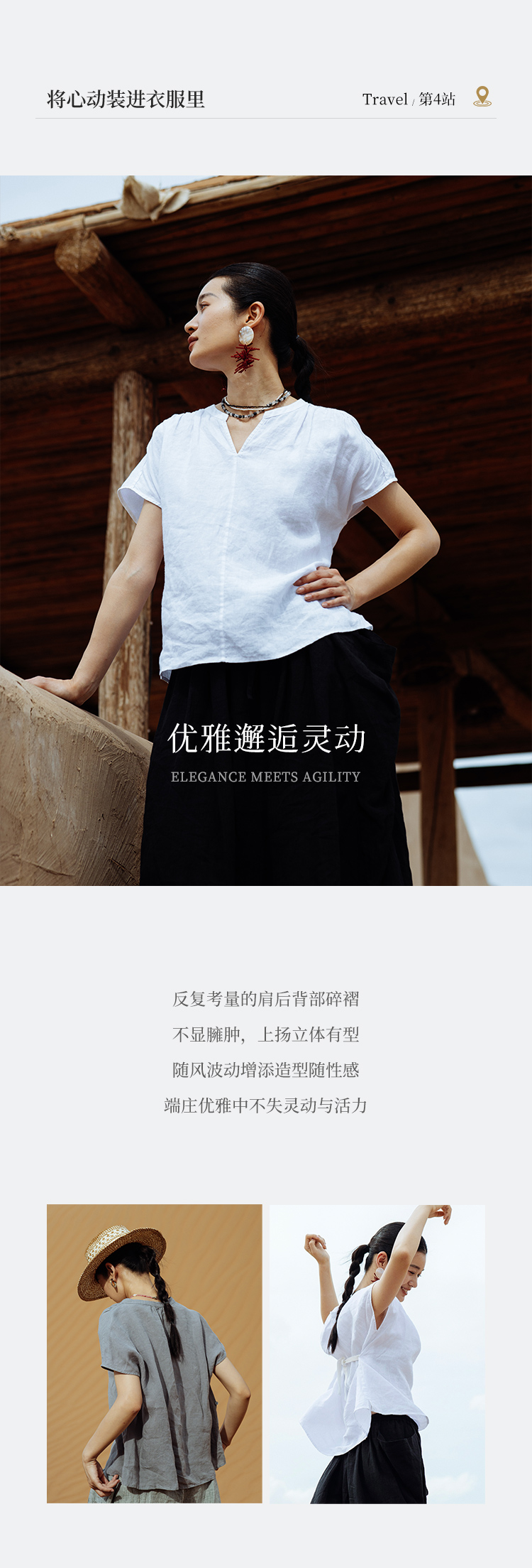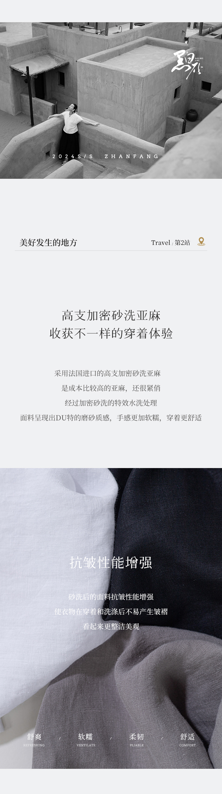以天然亚麻为载体,融合热烈色彩与自在剪裁为身在城市、心怀远方的女性提供兼具美学与舒适的旅行着装