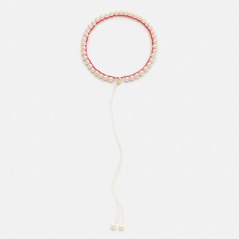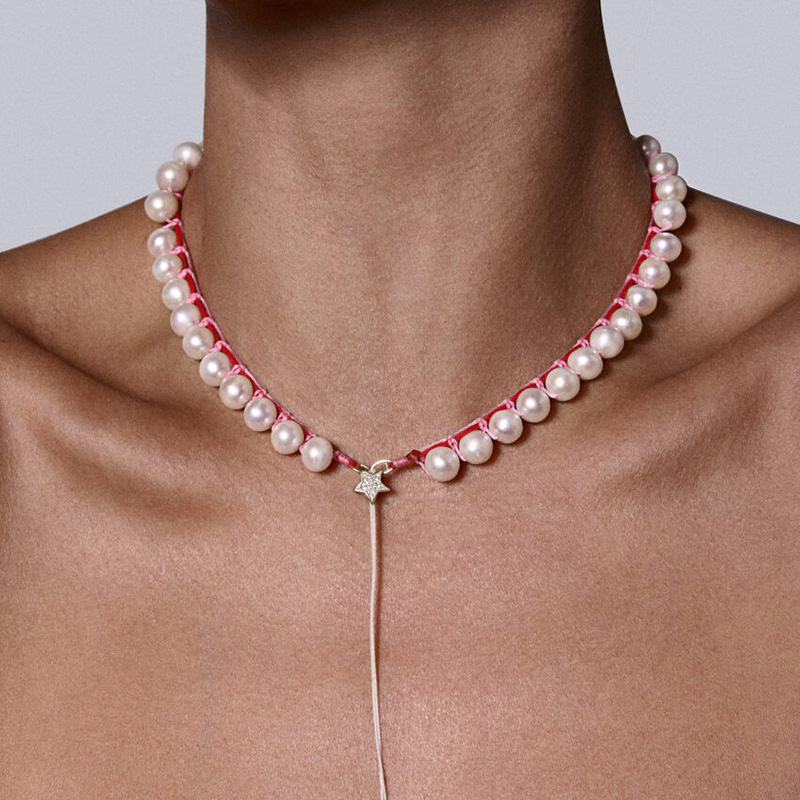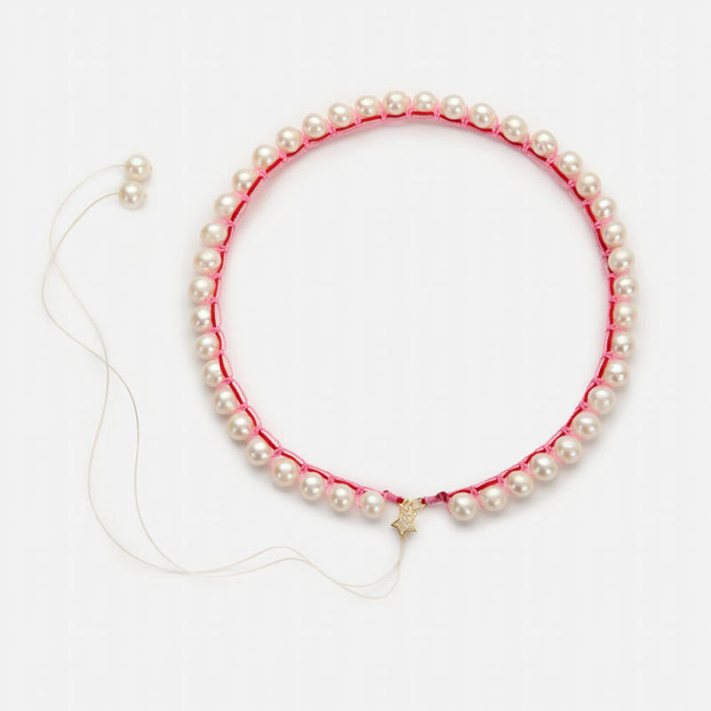 订购10周到|CHRISTIANA KAFA-pulse-粉线 锆石 星星 白色淡水珍珠 项链[希腊设计师]