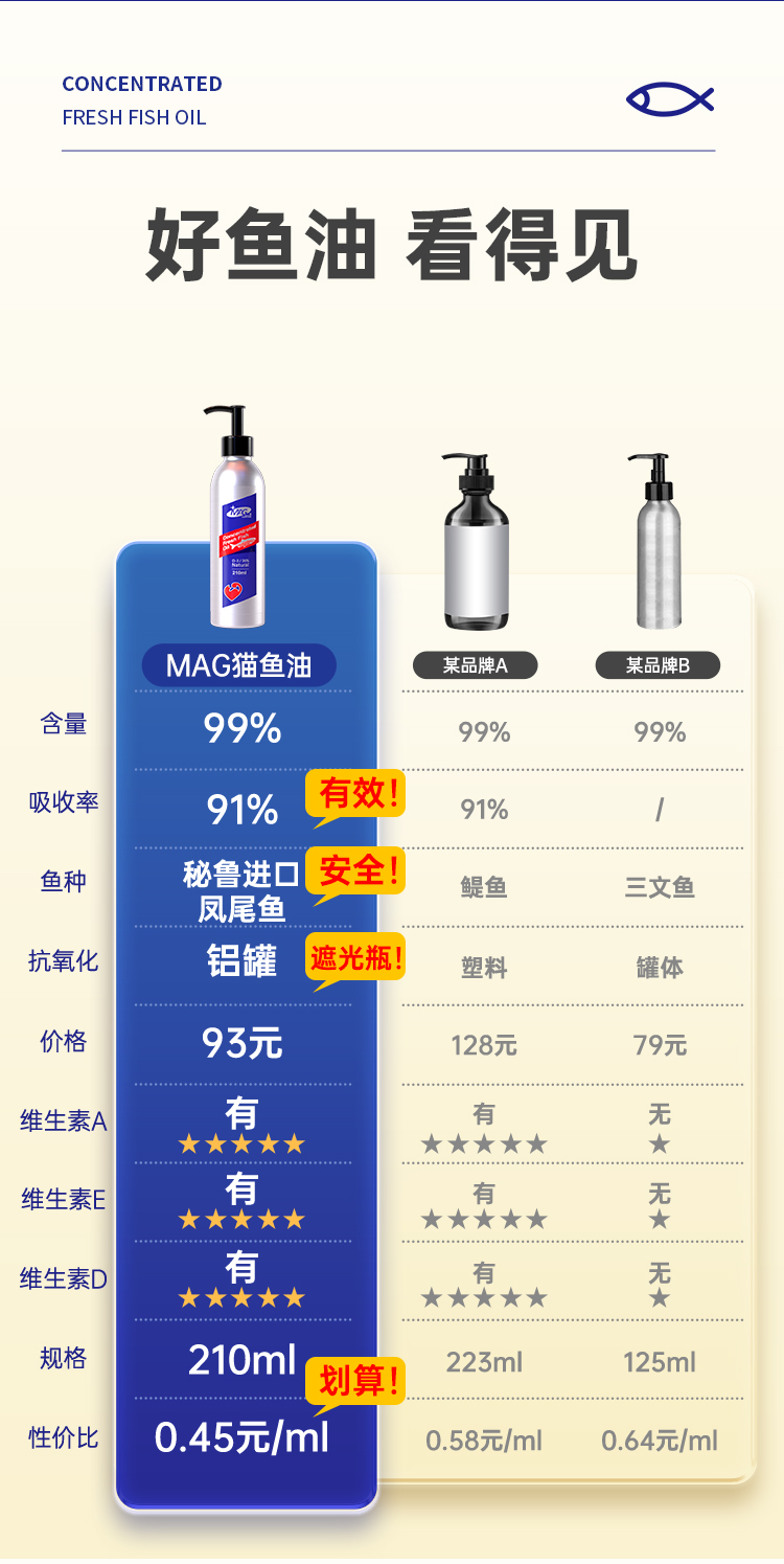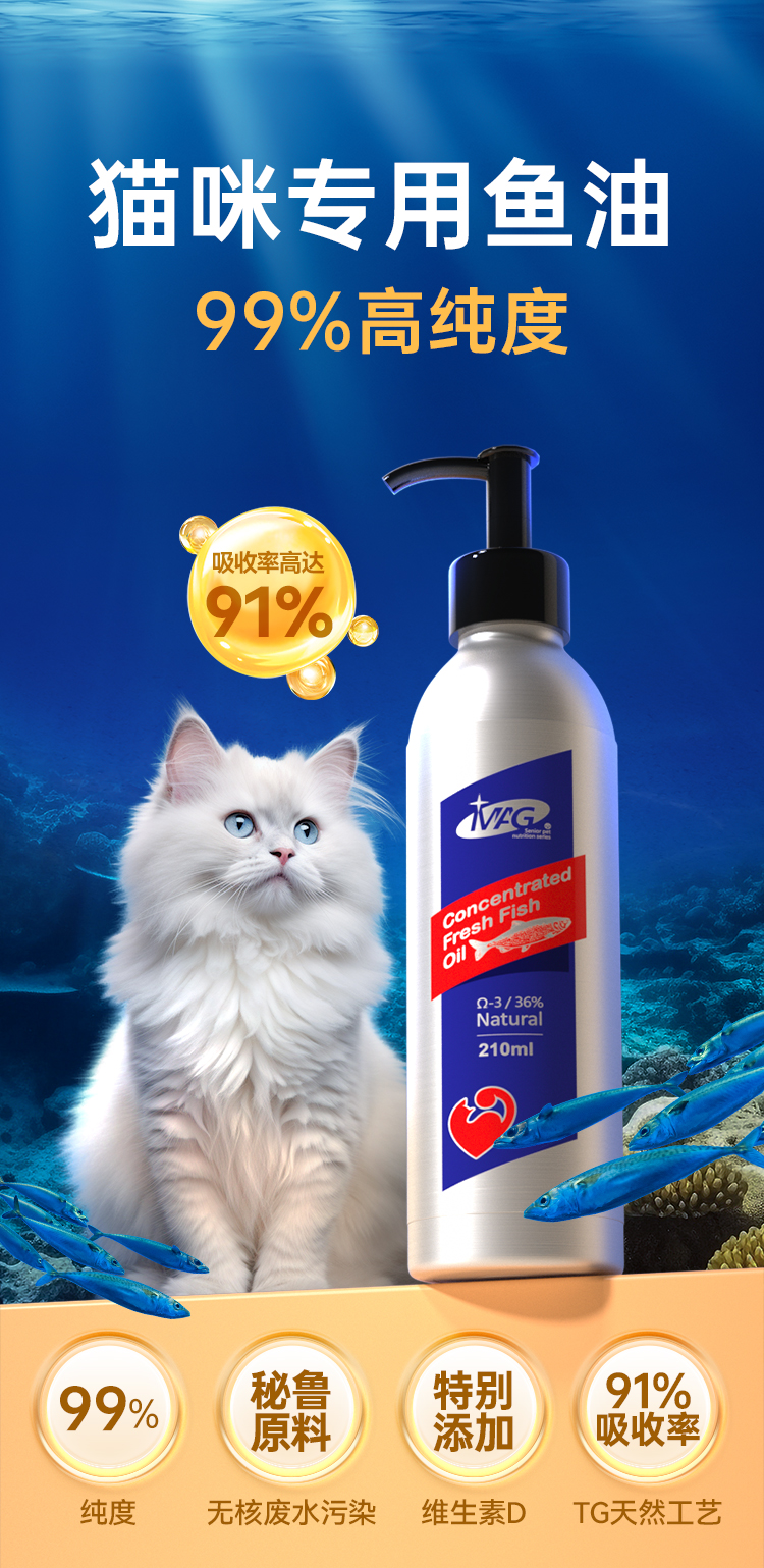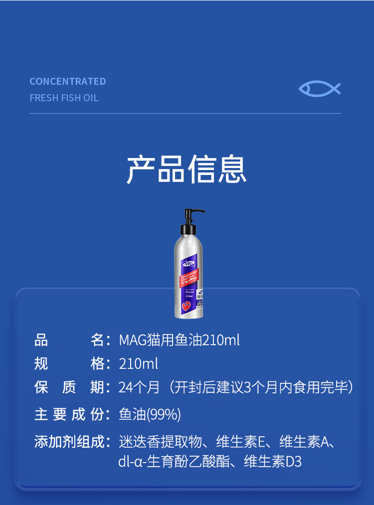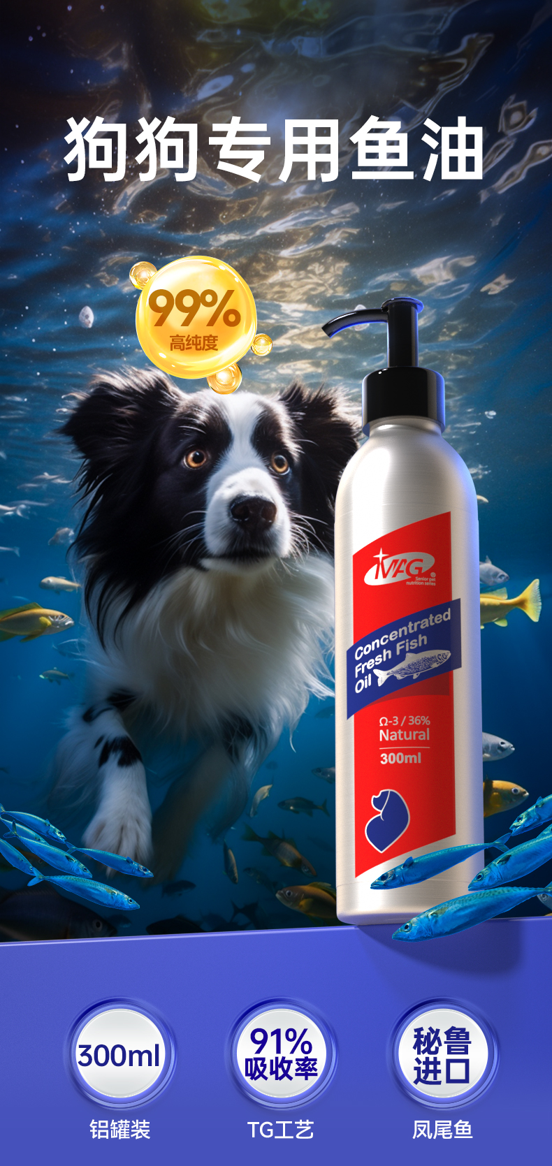 【MAG天然宠物鱼油】宠物狗狗猫咪鱼油美毛护肤减少脱毛泰迪金毛布偶缅因营养品明目护脑有助于减轻关节炎症