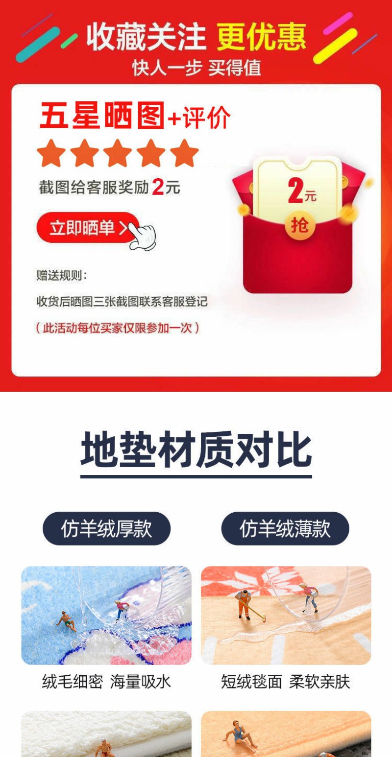 仿兔绒卫生间厕所吸水地垫脚垫卫浴室防滑垫门口入户门垫卧室地毯
