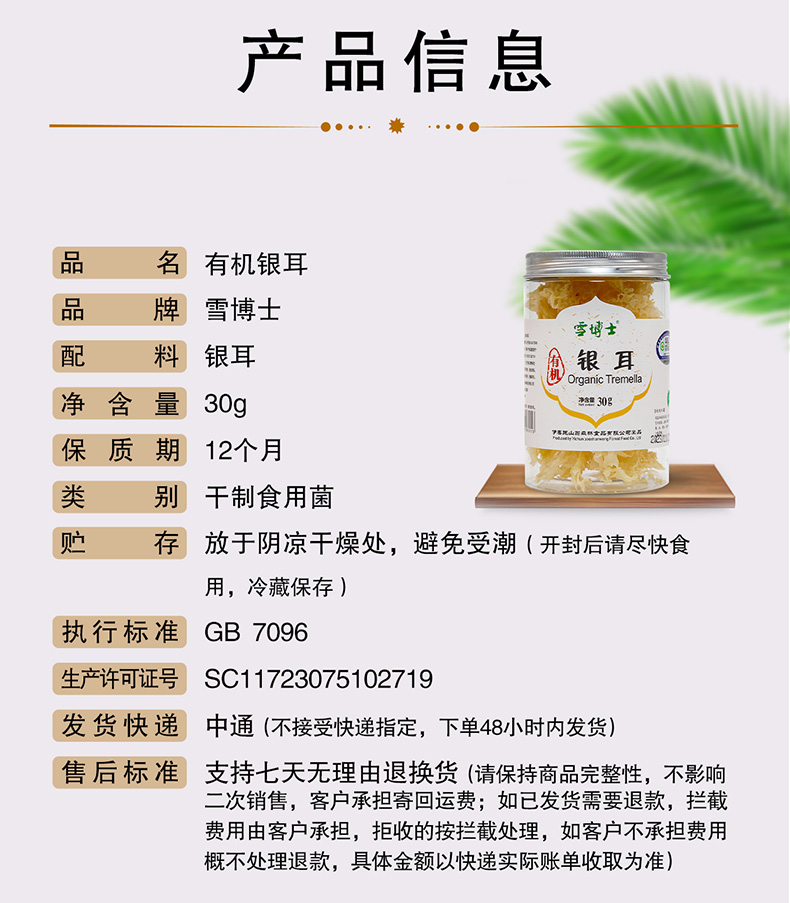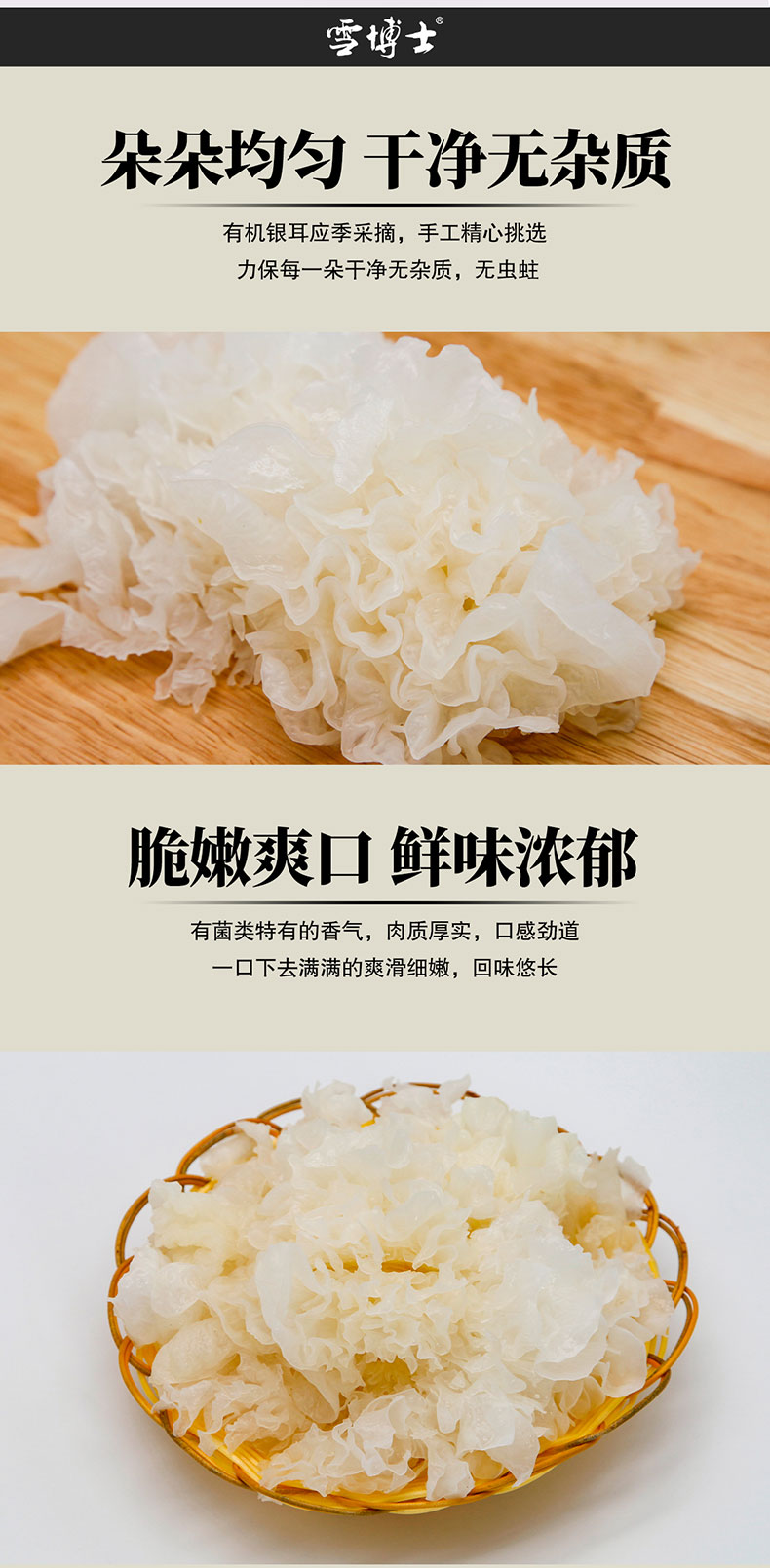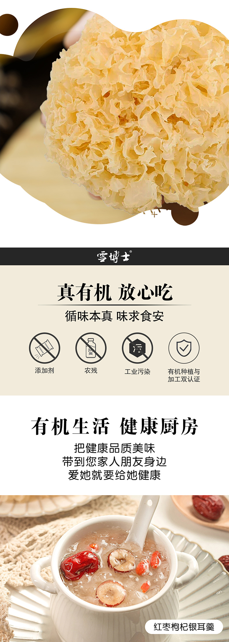 【厂商直发】有机银耳干货无熏硫无添加细腻软糯煲汤红枣汤食材代餐煮粥包邮
