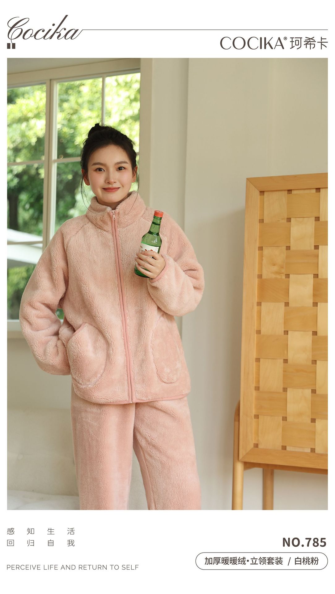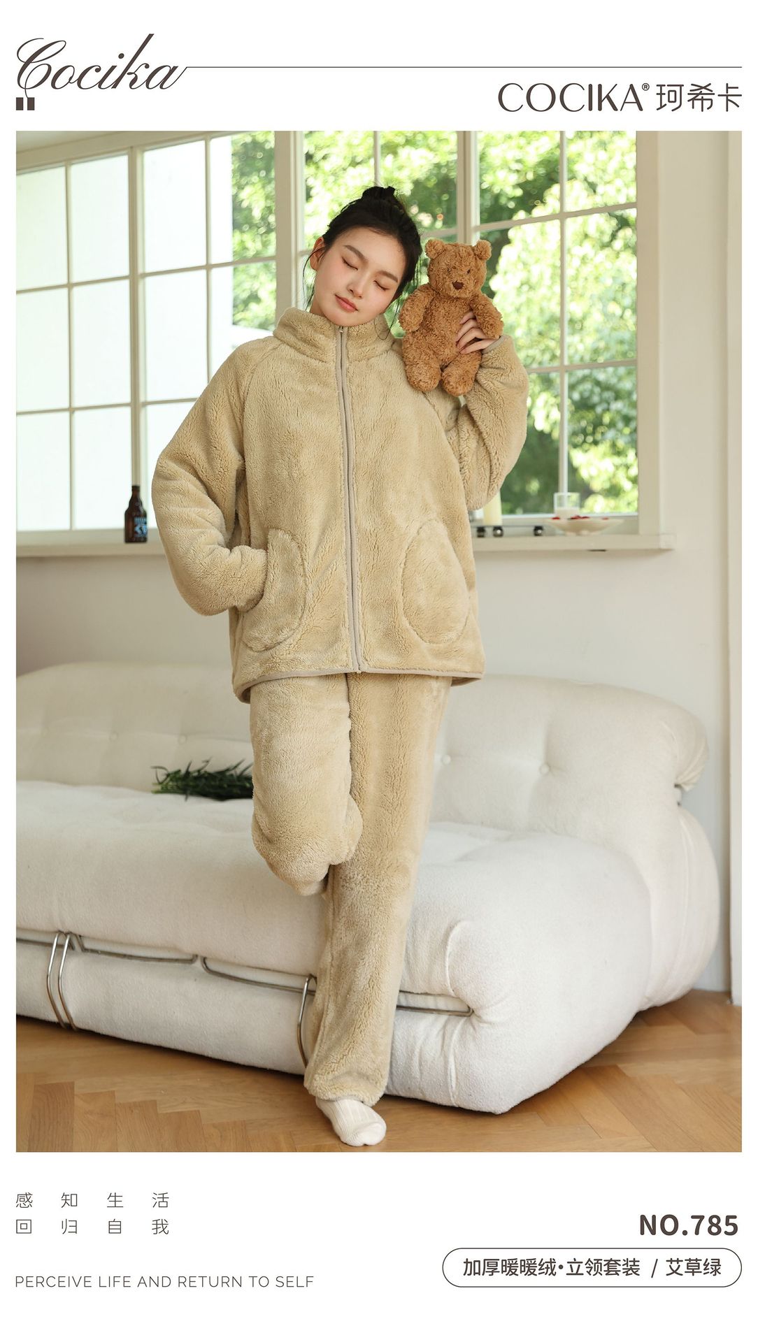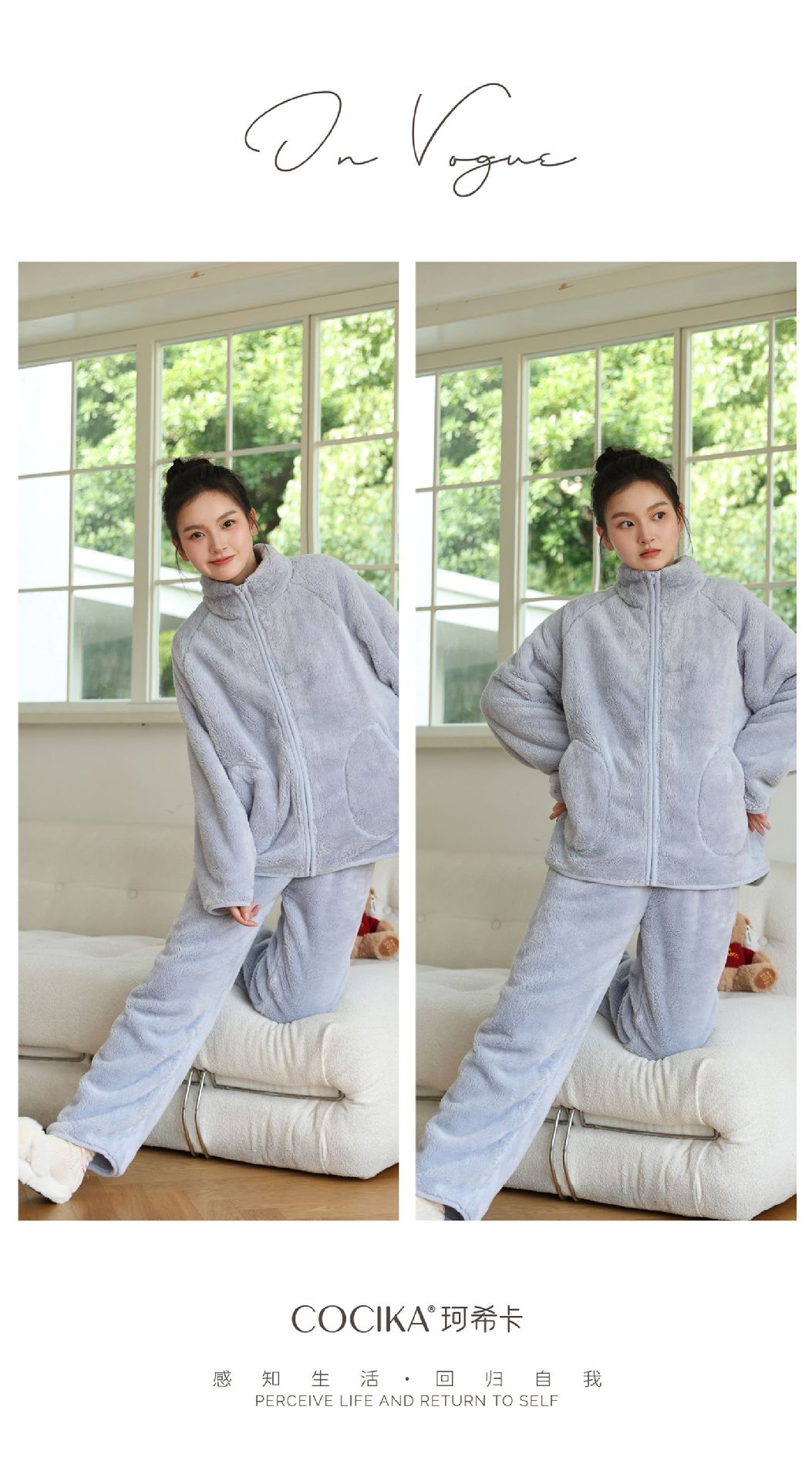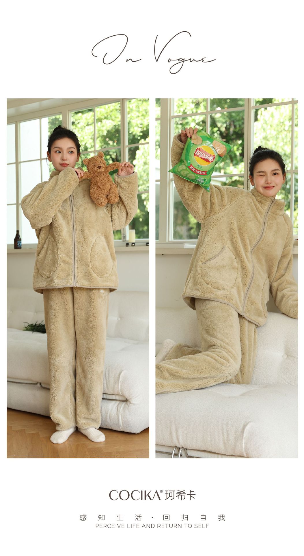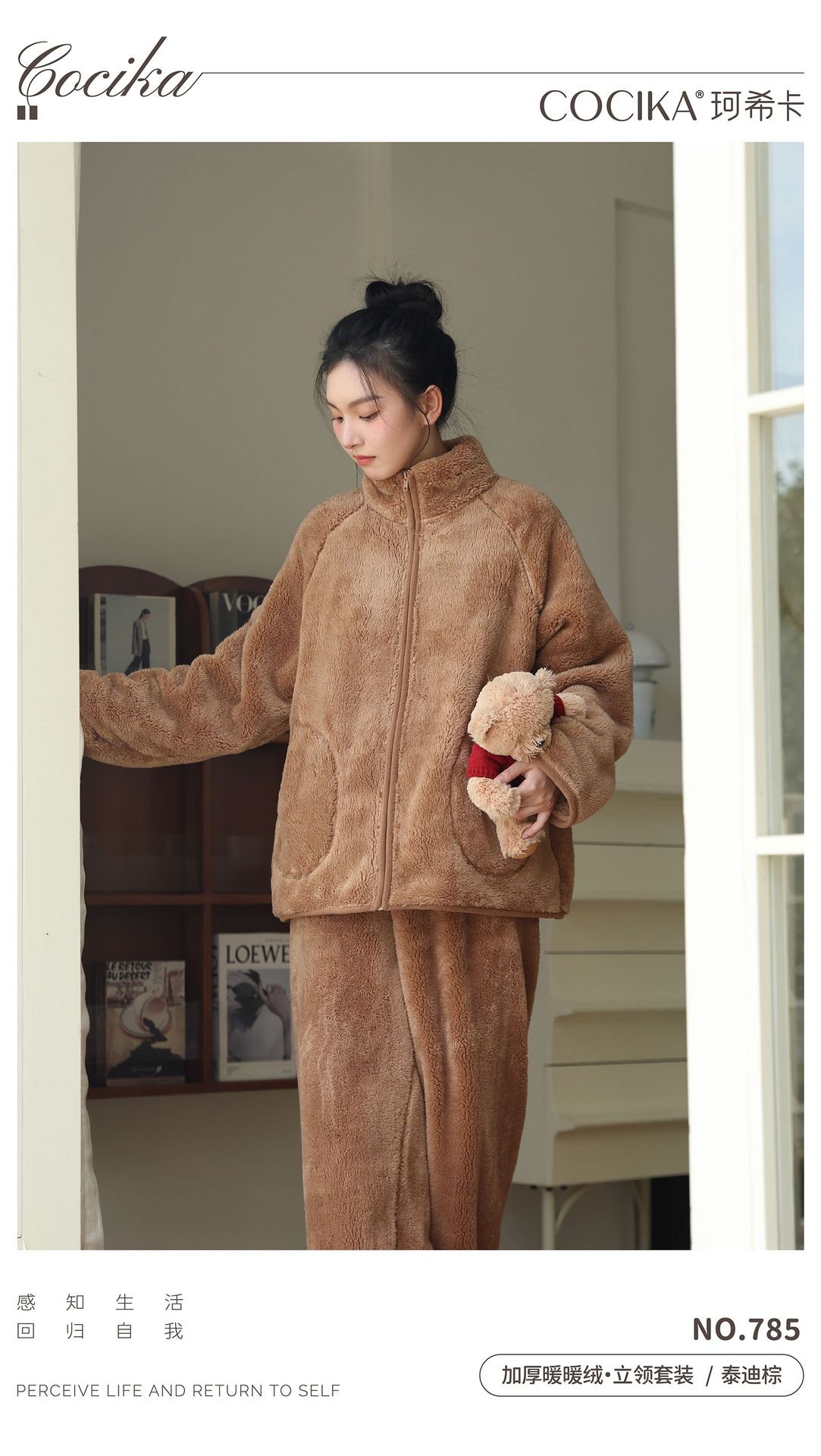 暖绒绒睡衣 可外穿 双面绒 保暖套装 厚毛绒家居服