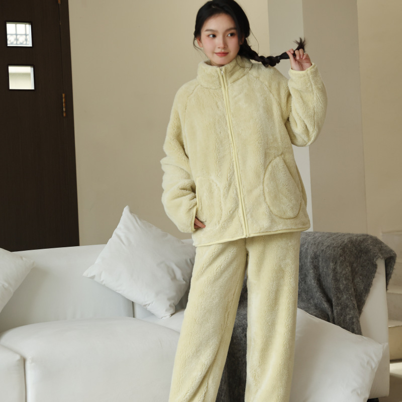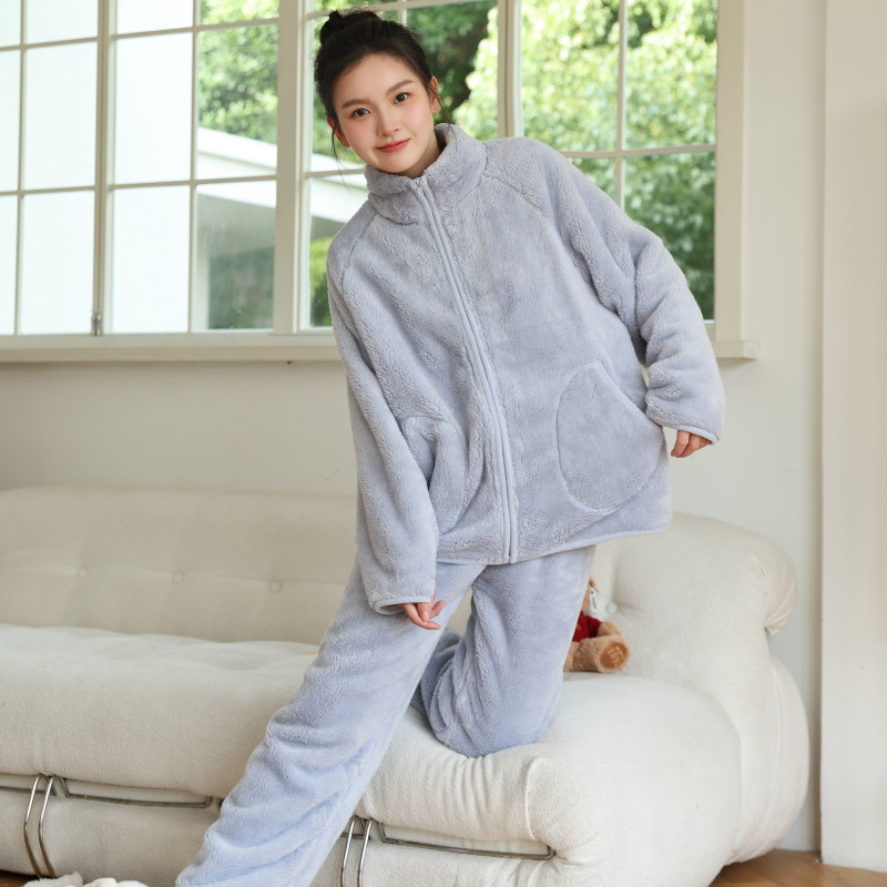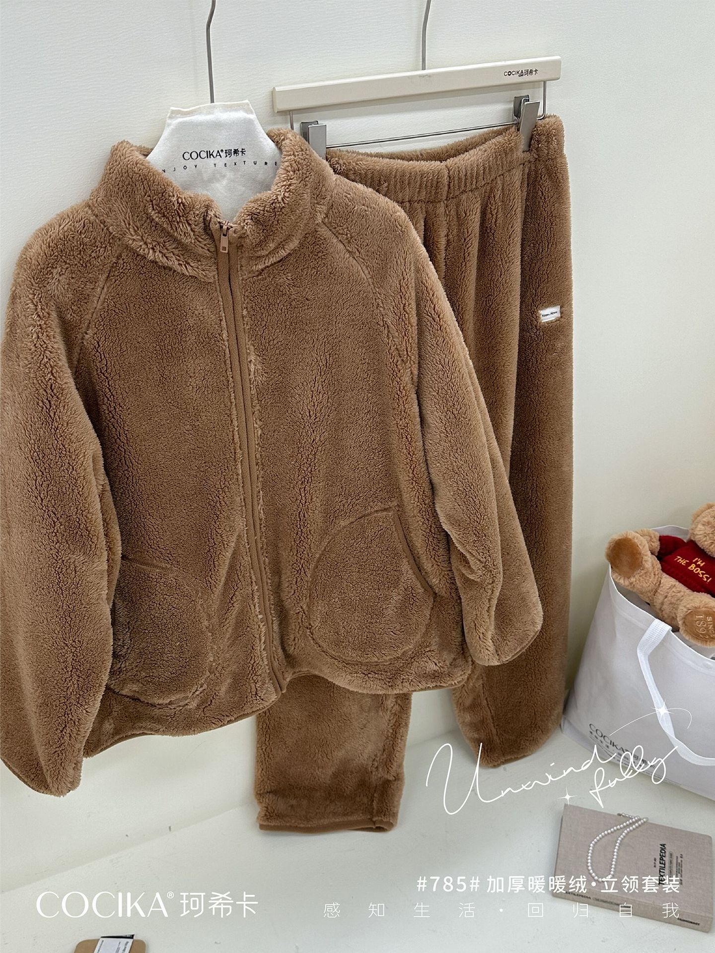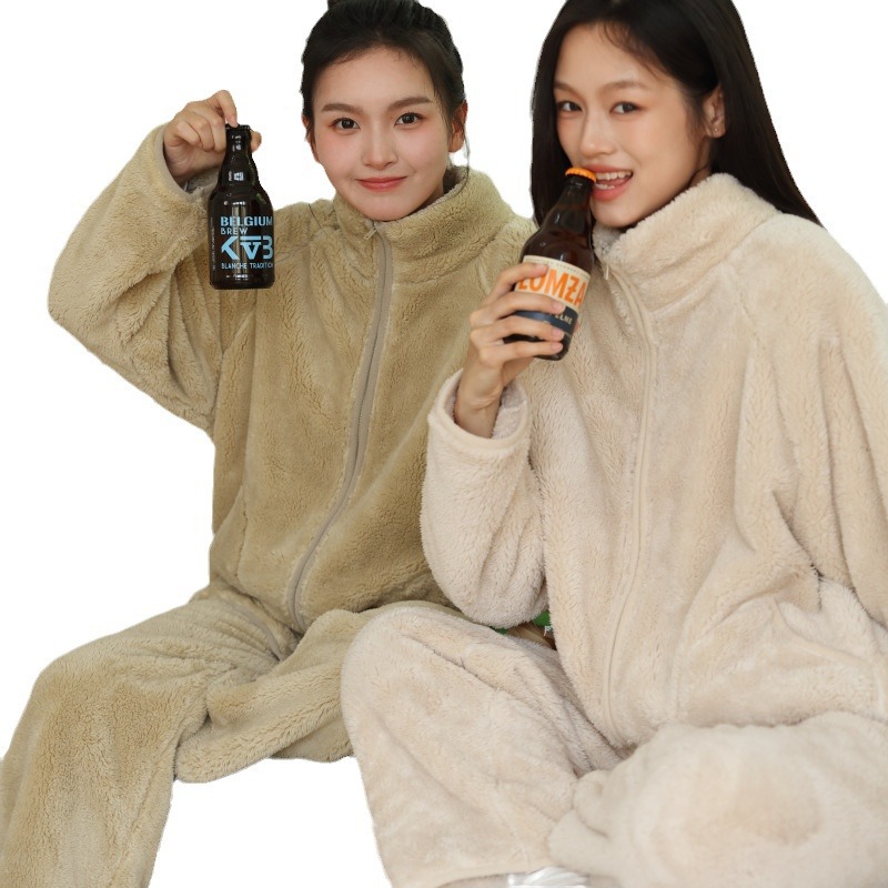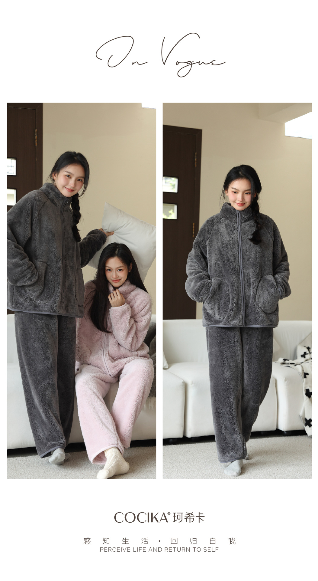 暖绒绒睡衣 可外穿 双面绒 保暖套装 厚毛绒家居服