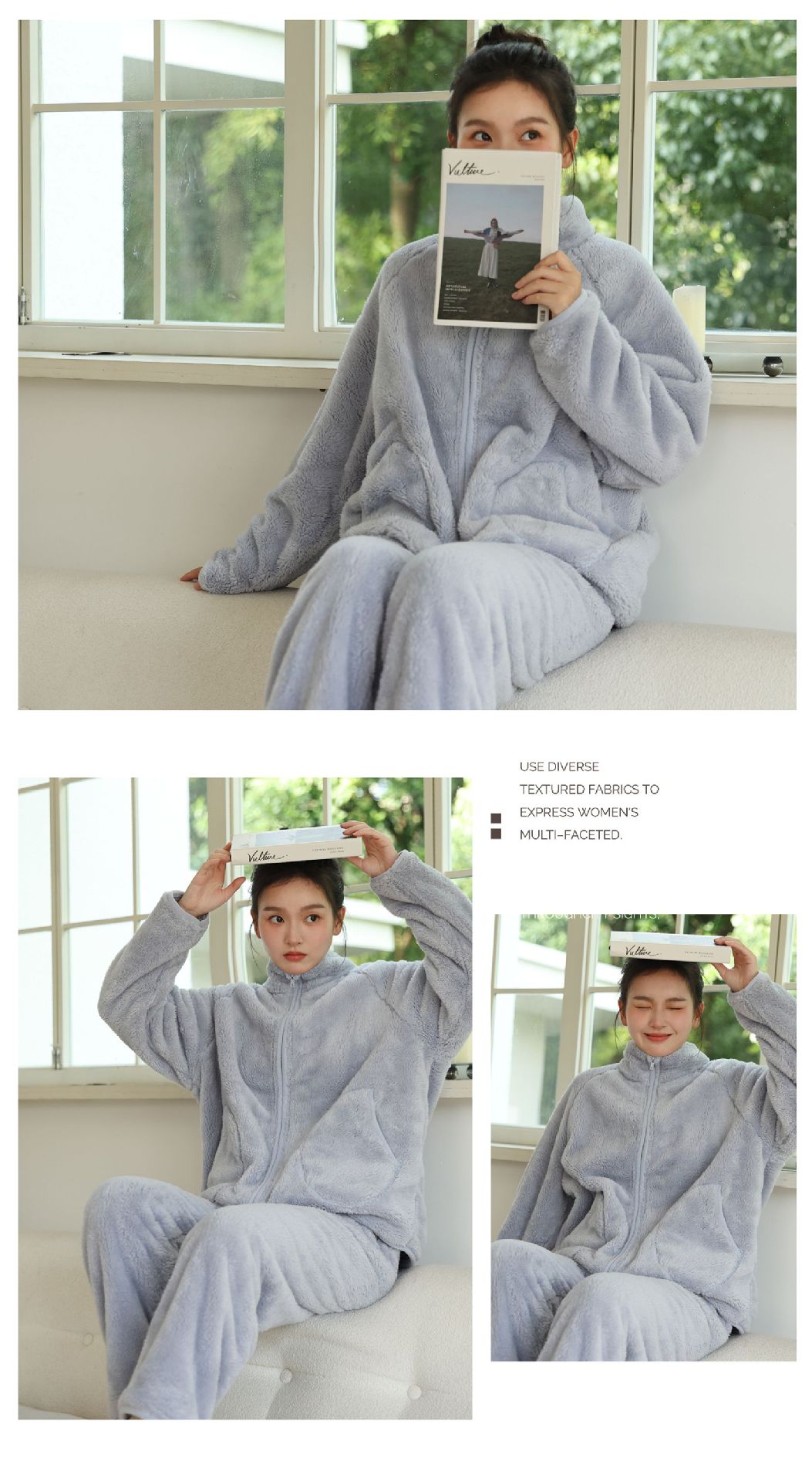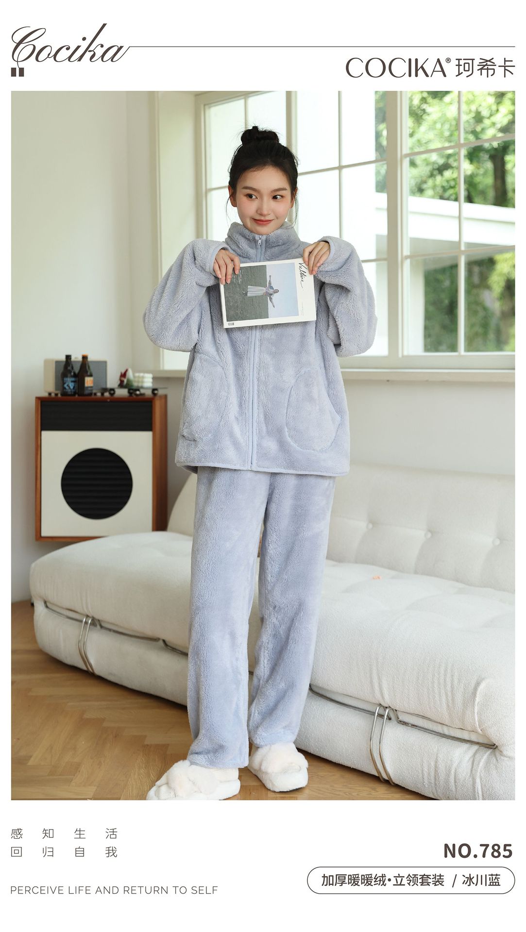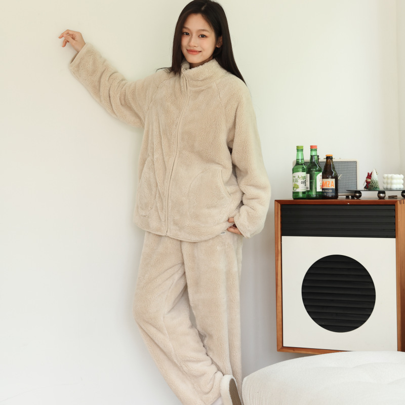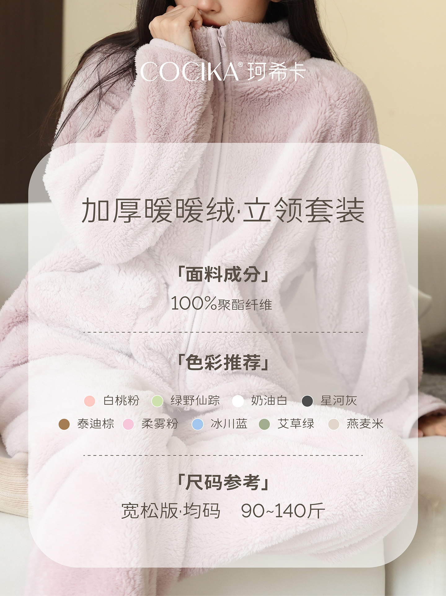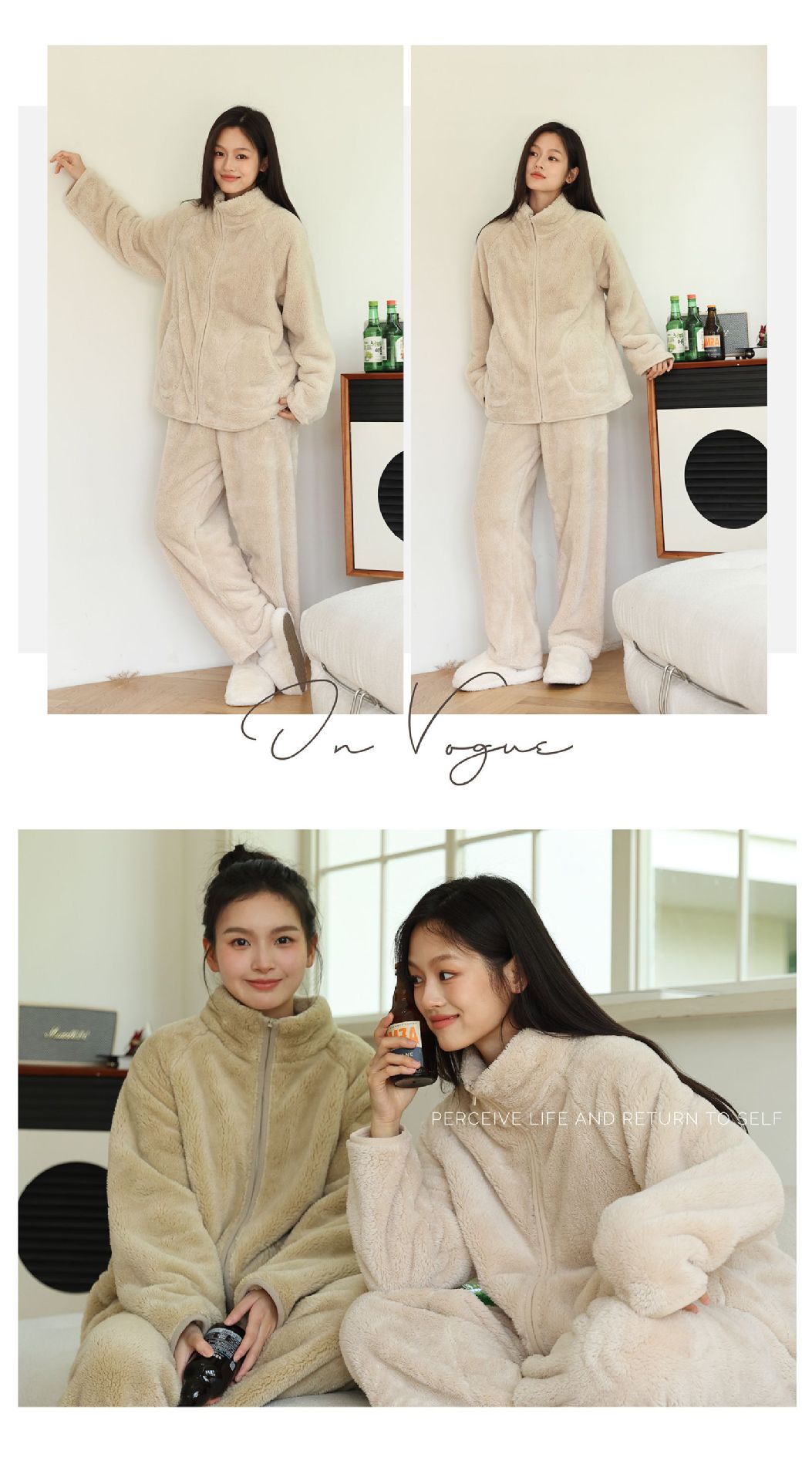 暖绒绒睡衣 可外穿 双面绒 保暖套装 厚毛绒家居服