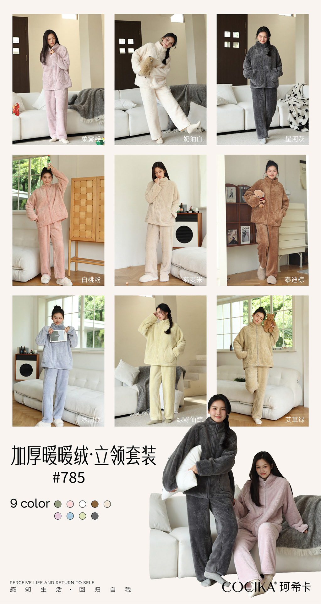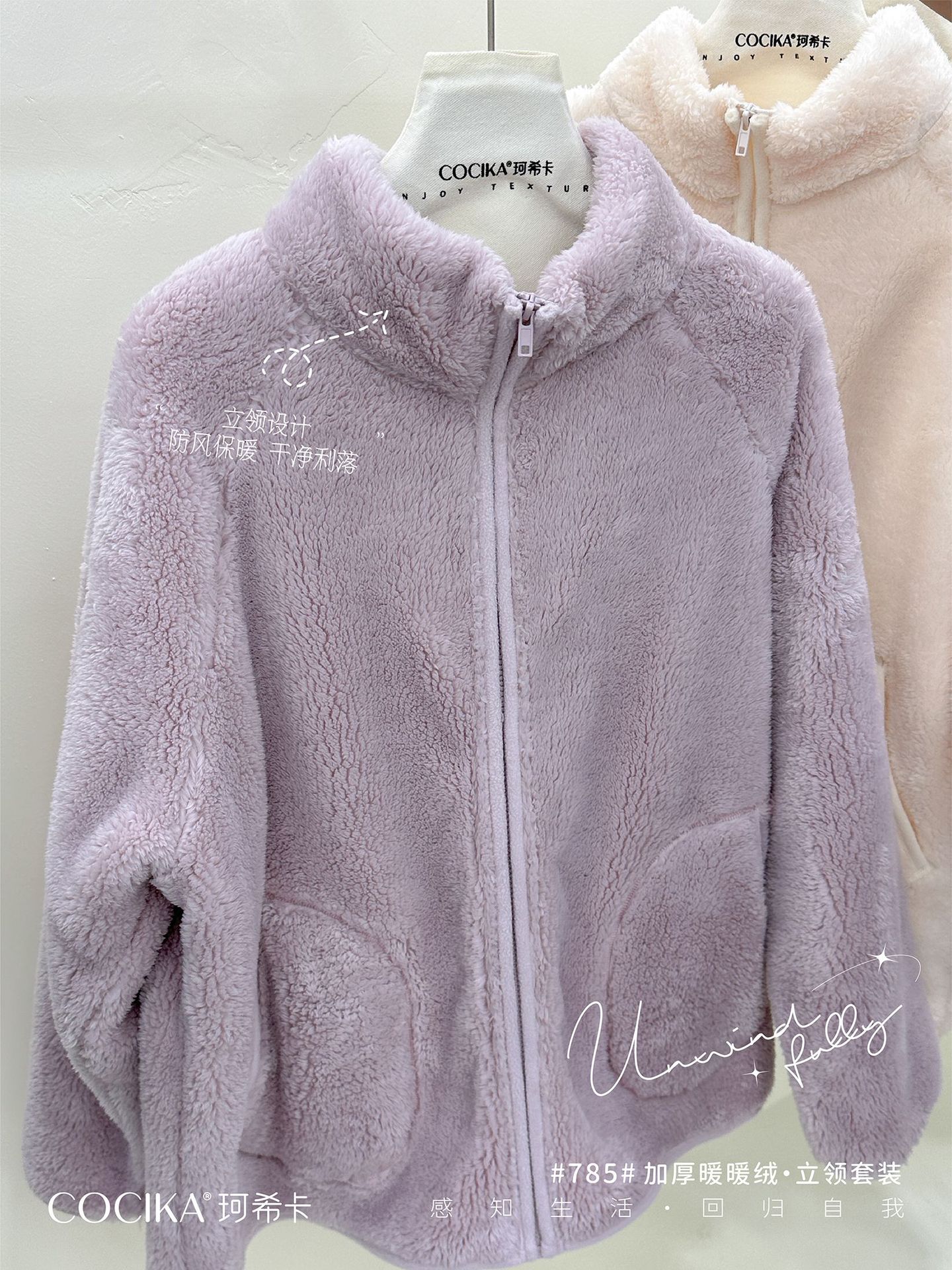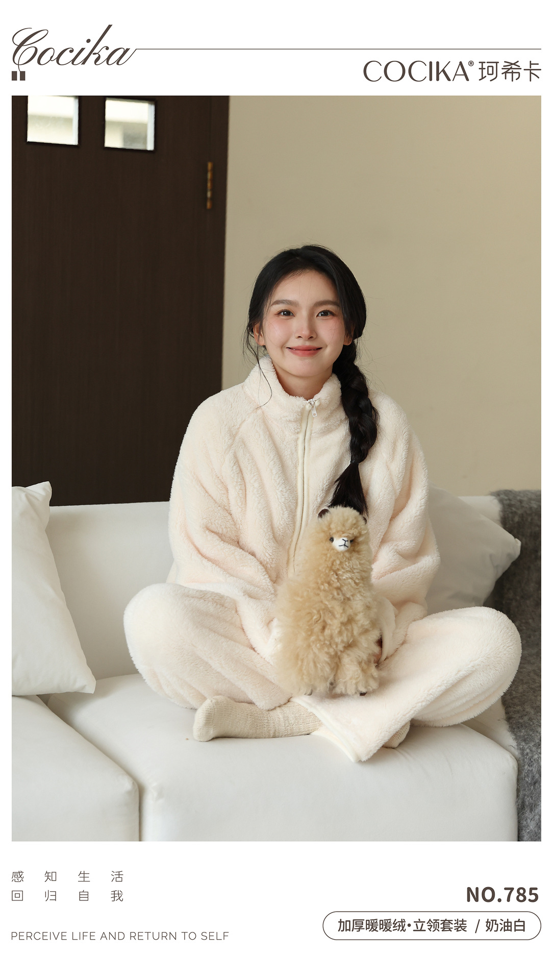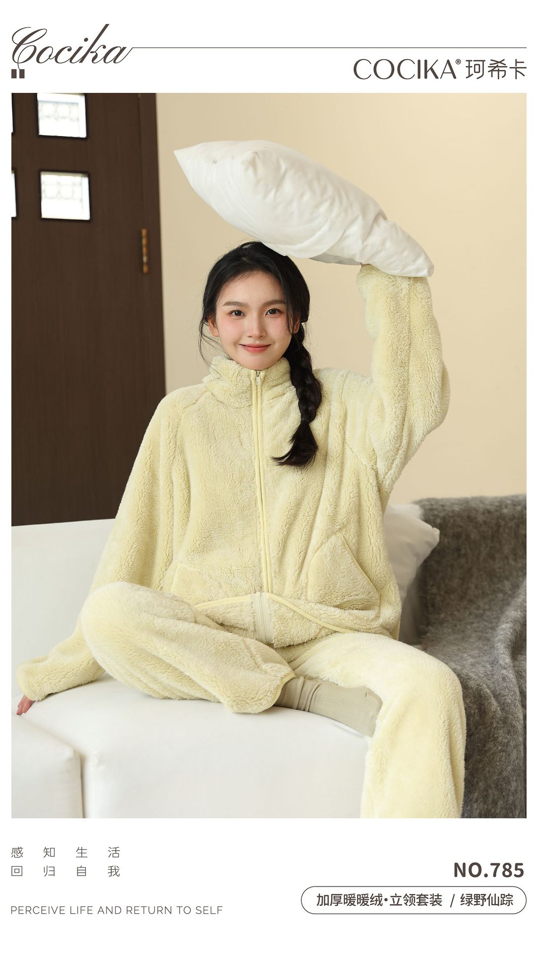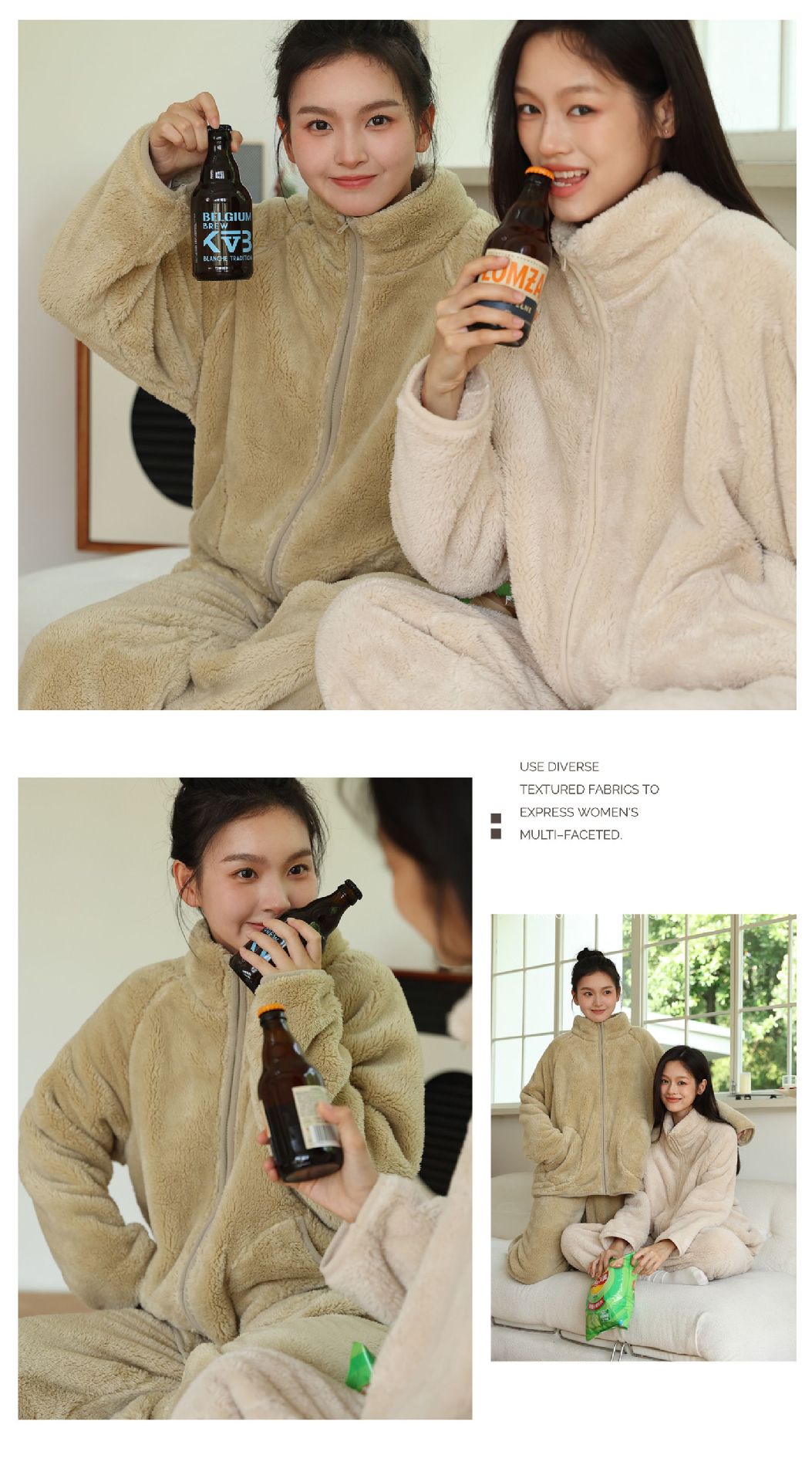 暖绒绒睡衣 可外穿 双面绒 保暖套装 厚毛绒家居服