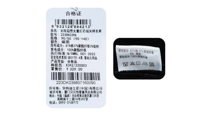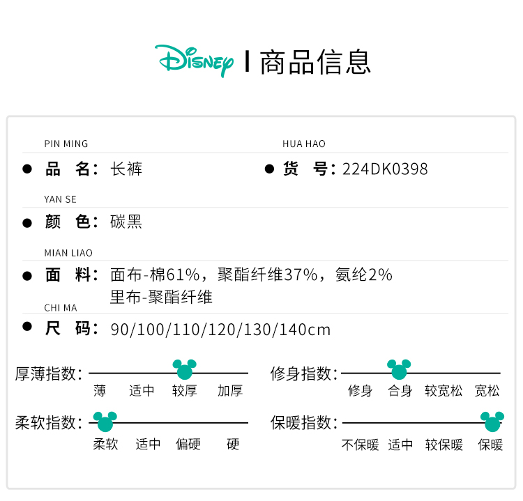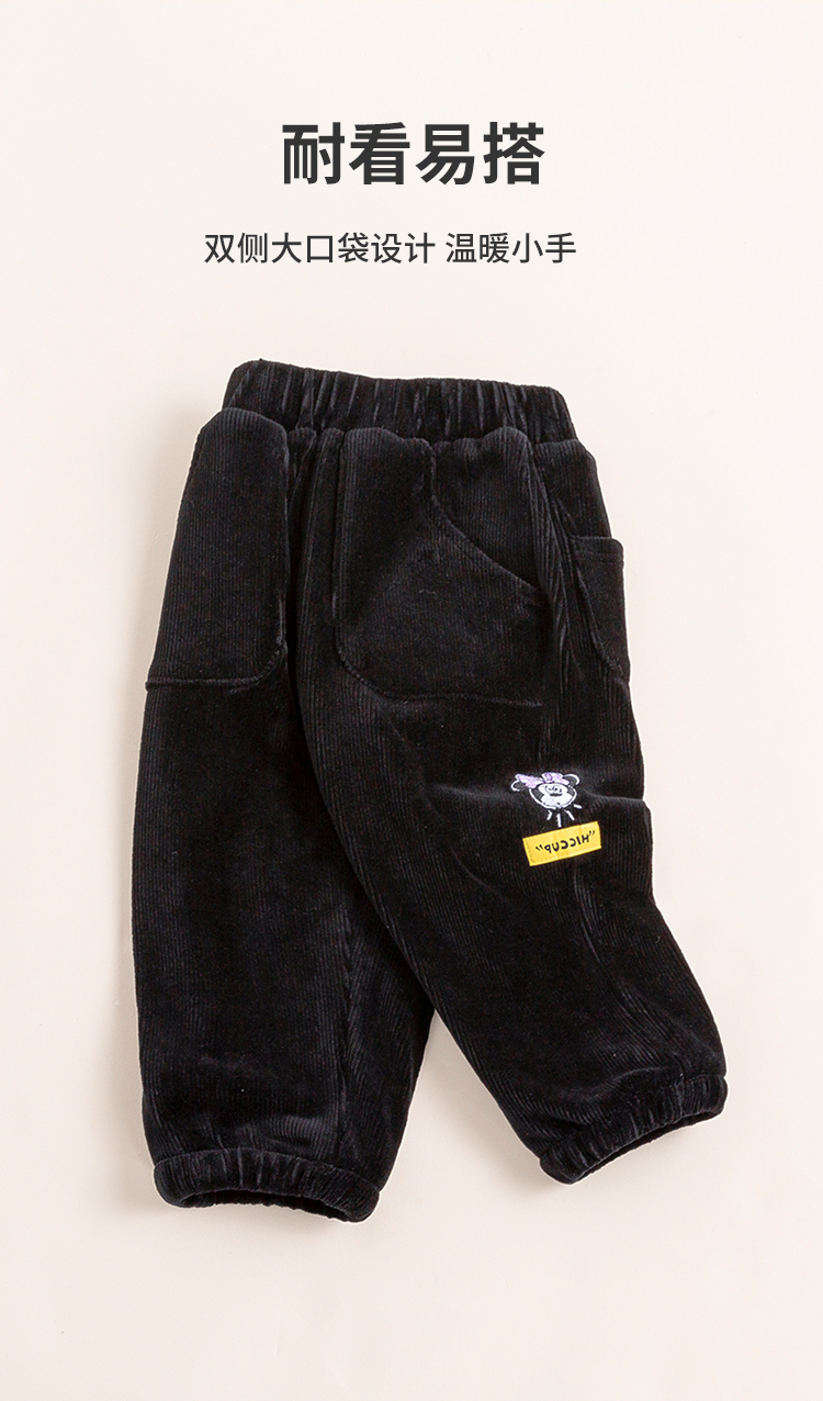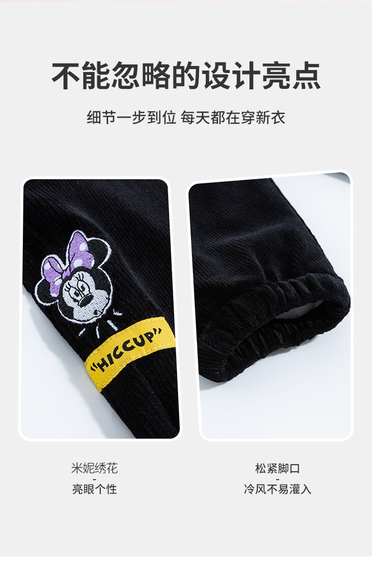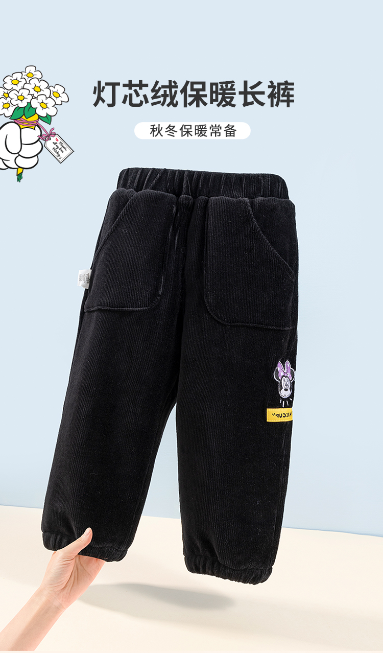 迪士尼童装秋冬新款女童加绒长裤洋气女宝宝灯芯绒保暖时尚休闲裤223DK0398