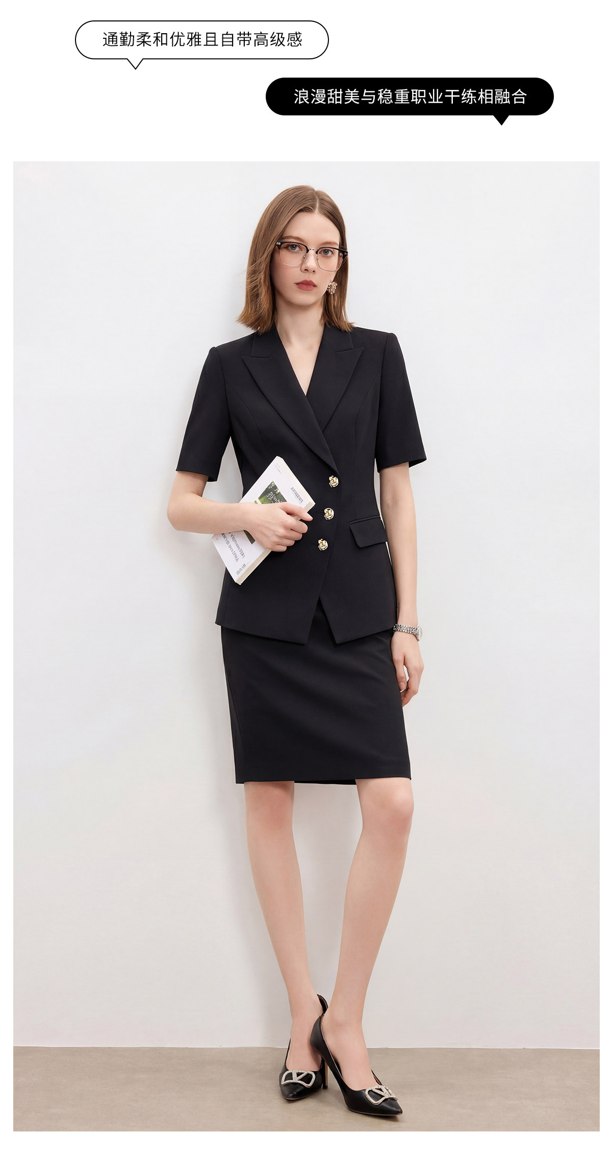 AD正式场合短袖西装套装女夏季2026新款高级感高知得体职业装半裙