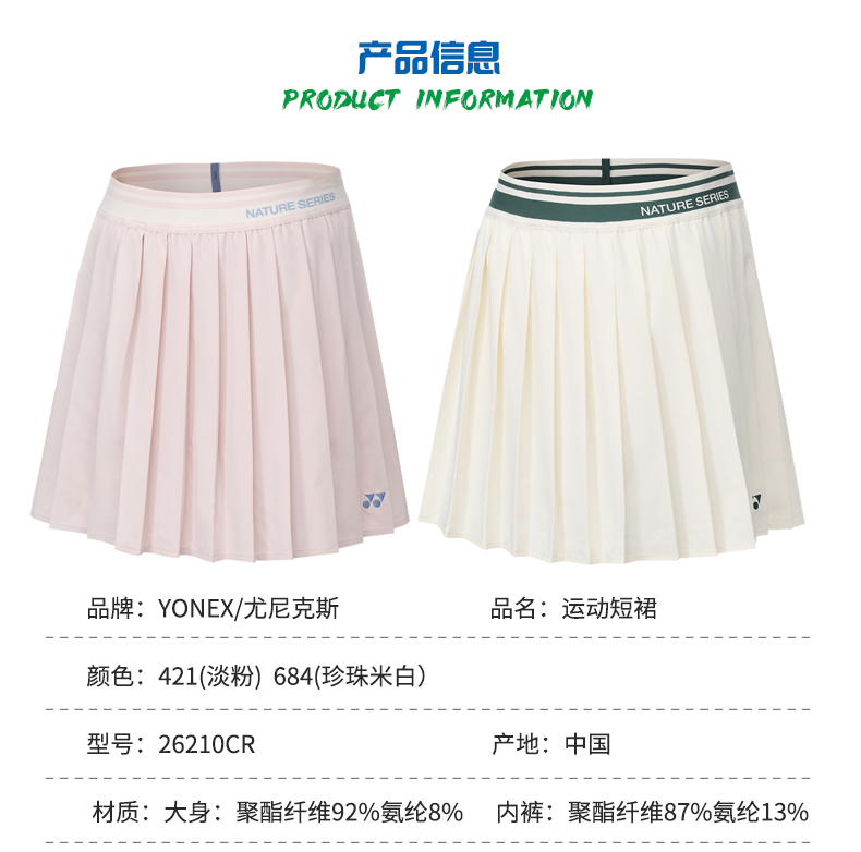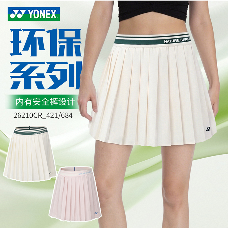 YONEX尤尼克斯羽毛球服女士训练比赛服运动短裙百褶裙26210CR