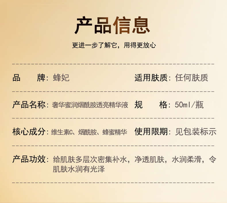 蜂妃奢华蜜润烟酰胺透亮精华液50ml 净透肌肤 水润柔滑 强韧屏障 令肌肤水光亮泽