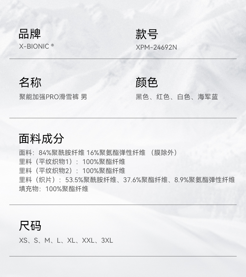 X-BIONIC 聚能加强PRO滑雪服滑雪裤 男 秋冬保暖防水金标P棉控温 XJM-24691N