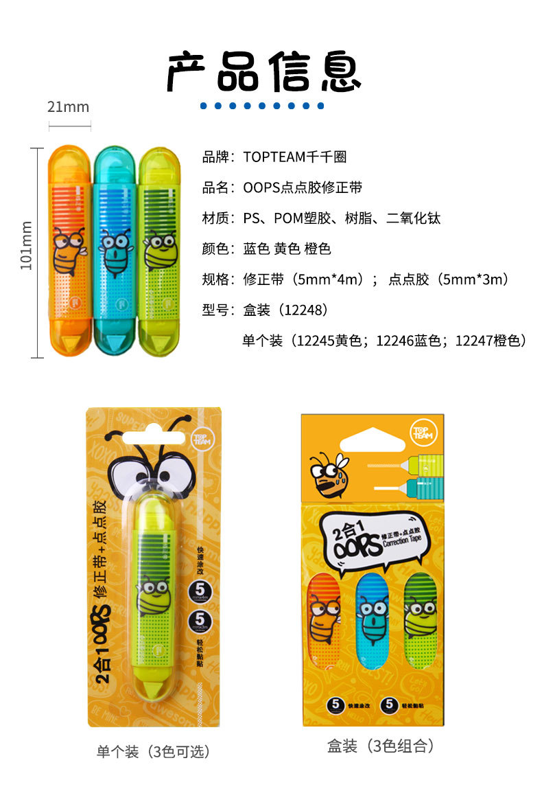 千千圈 创意涂改液学生用品卡通修正带点点胶透明大容量纠错文具