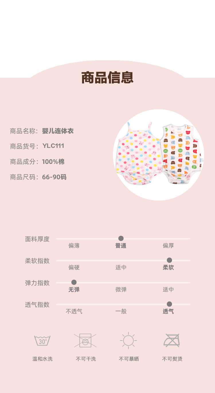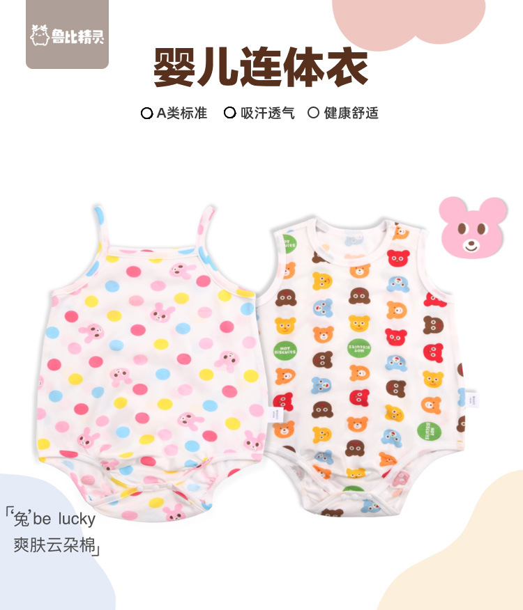 【爽肤云朵棉 亲肤舒适】婴儿可爱超萌吊带哈衣夏季薄款女宝宝甜美满印背心连体衣外出爬服