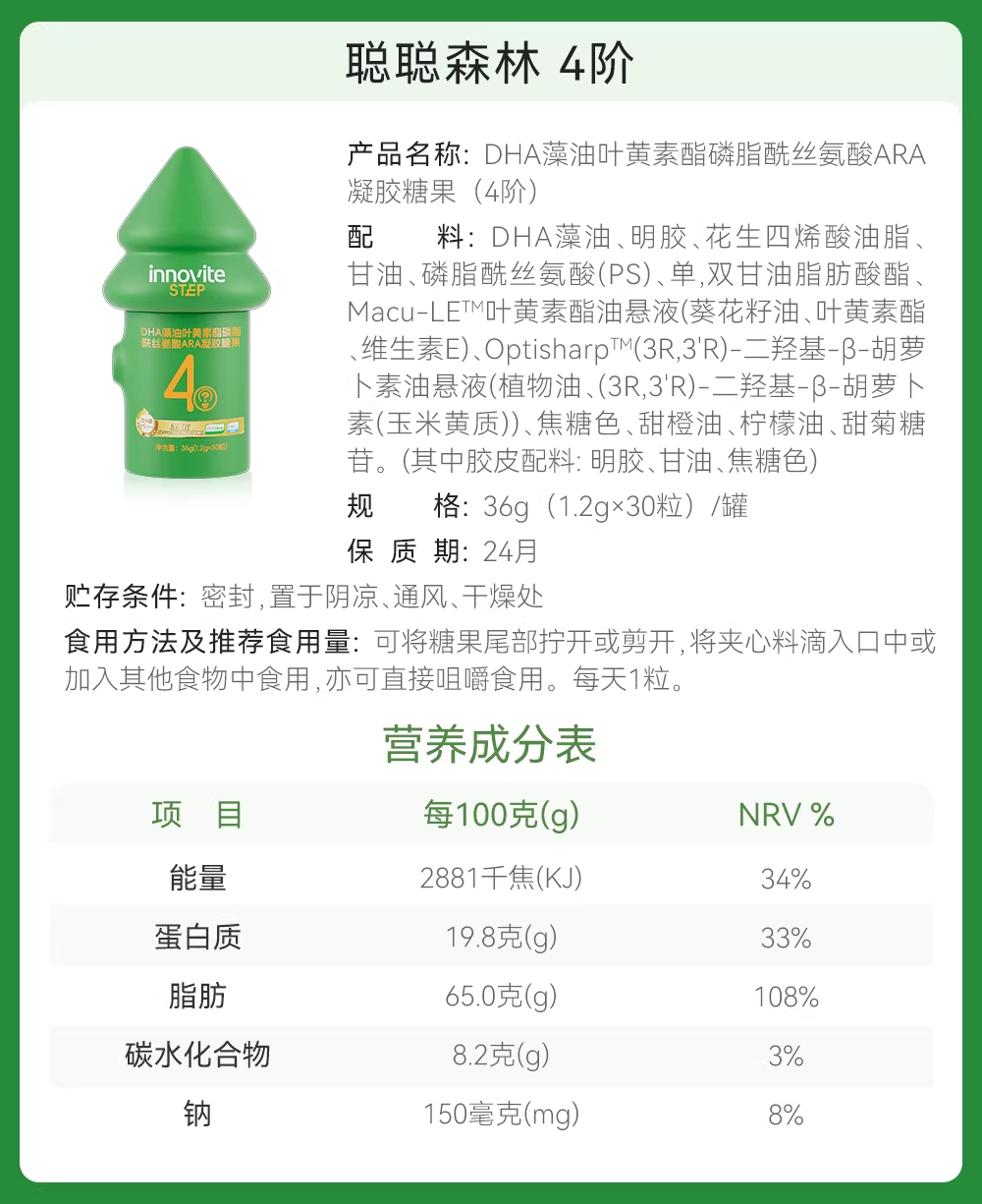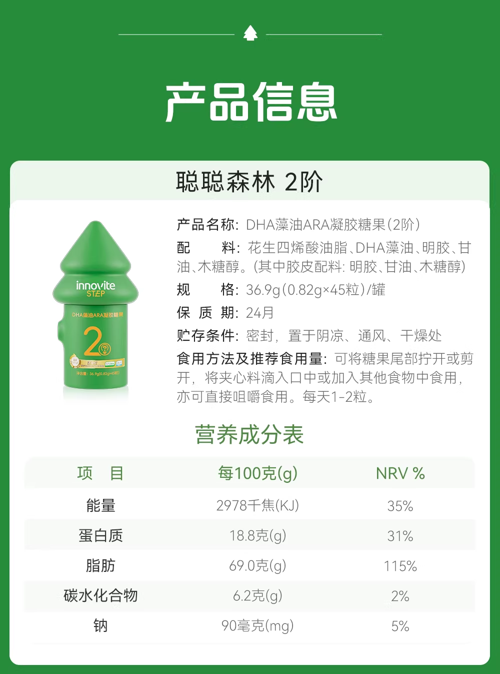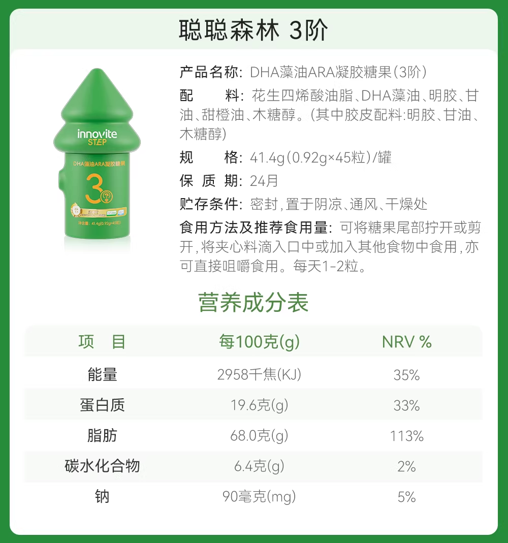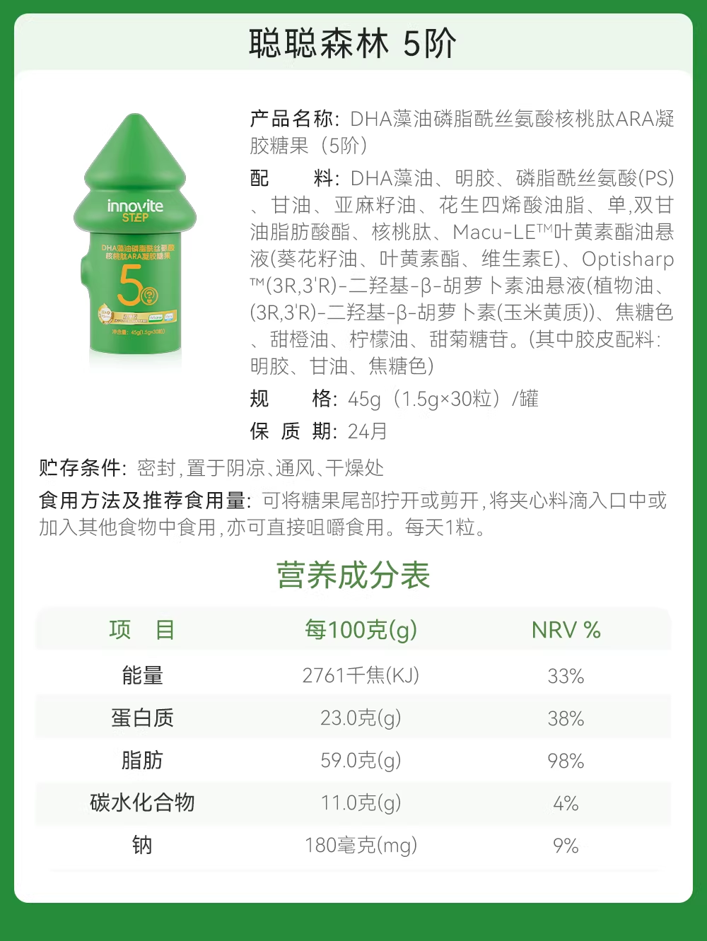 【源码】英珞维聪聪森林分阶1-5阶DHA儿童海藻胶囊