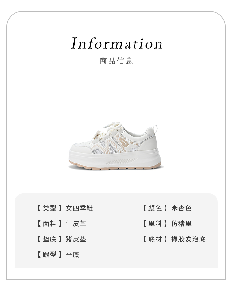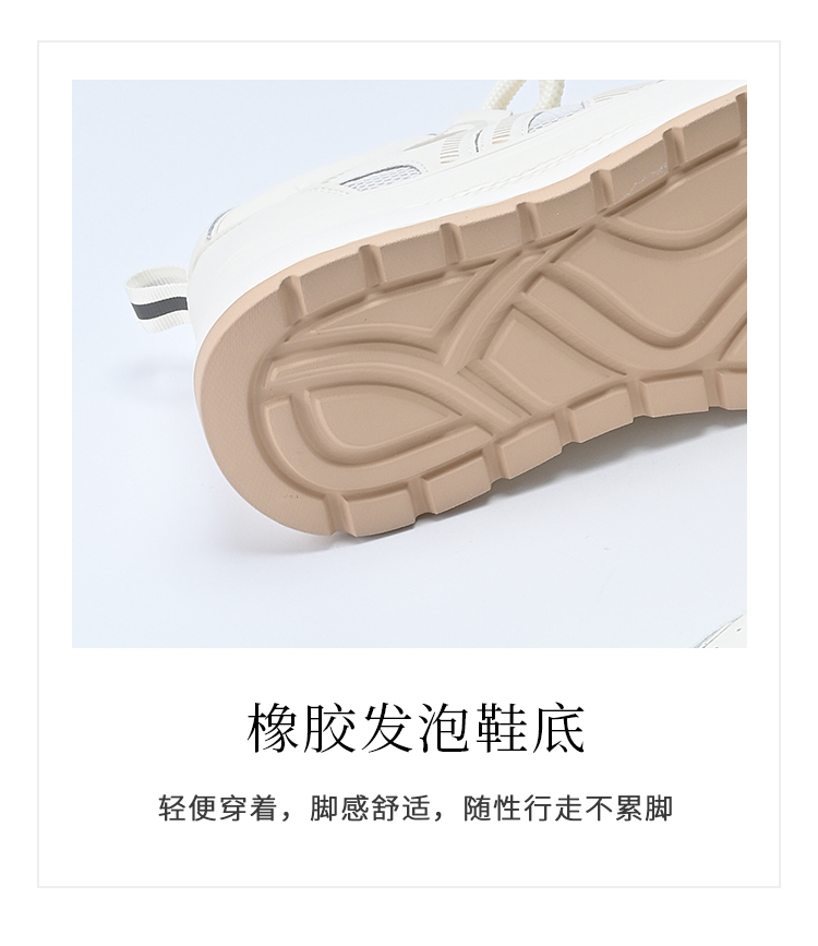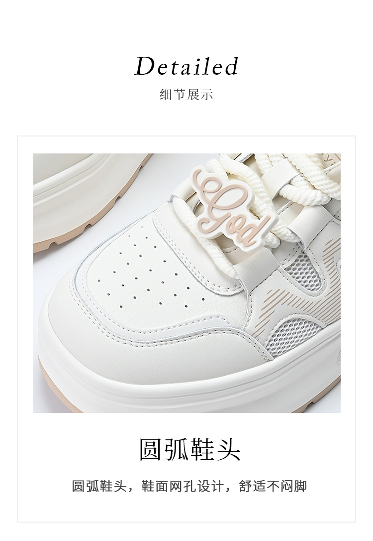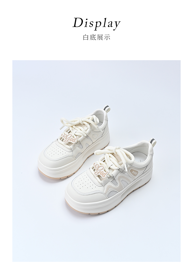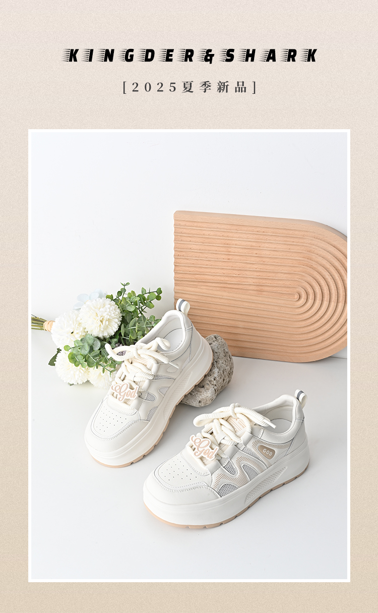 经典鲨2025夏季款韩版牛皮革时尚网状透气厚底显高休闲小白鞋女KW326-529031