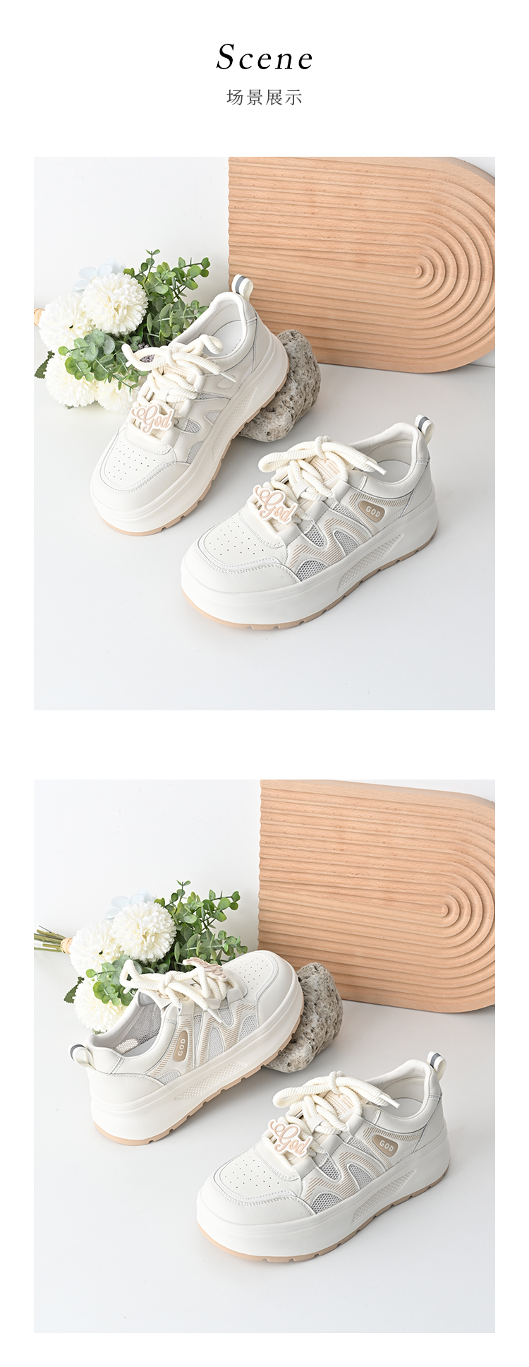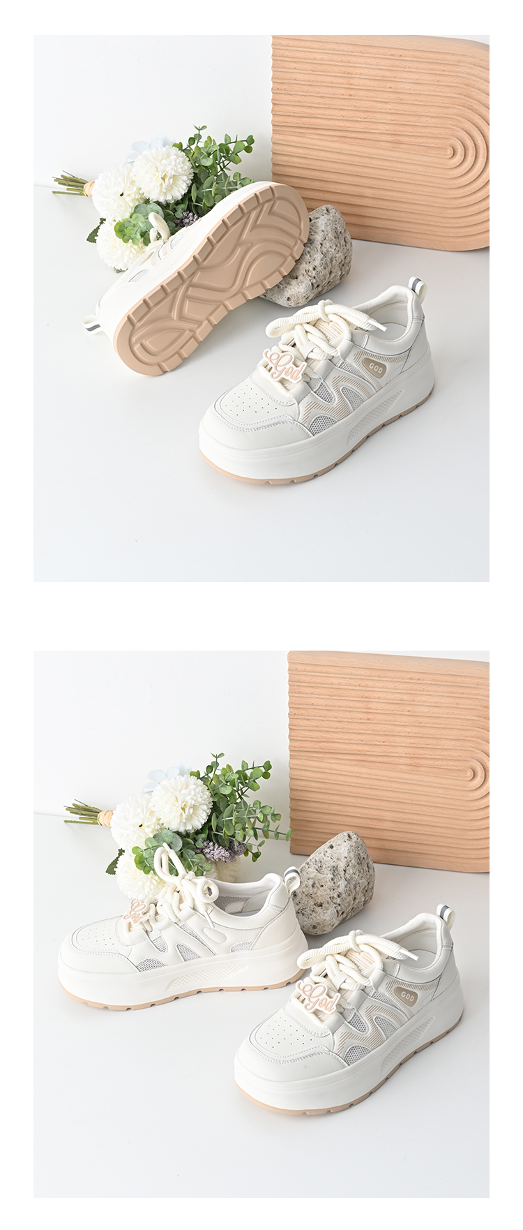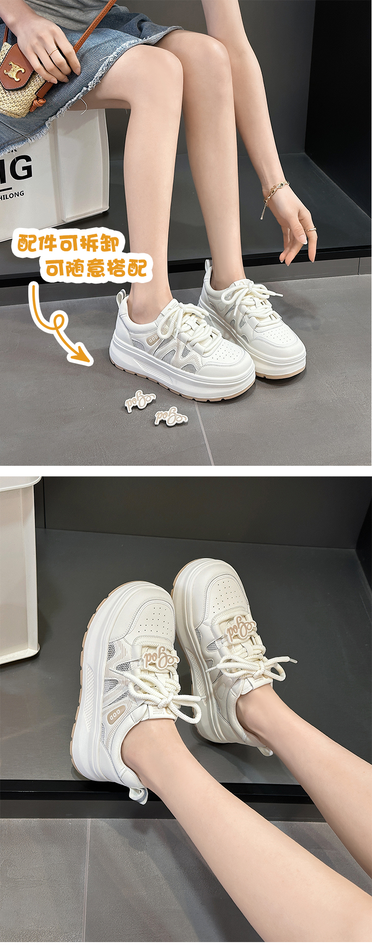 经典鲨2025夏季款韩版牛皮革时尚网状透气厚底显高休闲小白鞋女KW326-529031