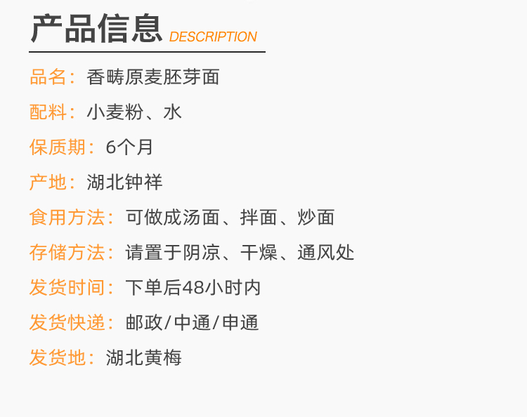 谦益农业 原麦胚芽挂面面条 500g/袋